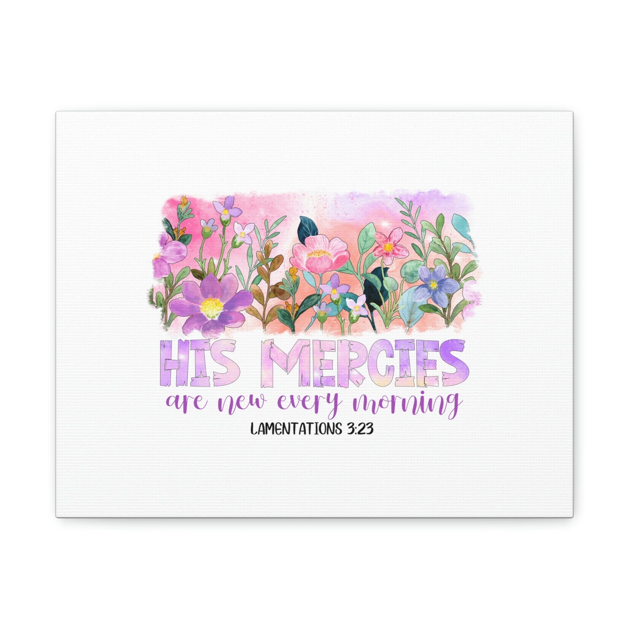Scripture Walls His Mercies Lamentations 3:23 Pink Flowers Christian Wall Art Bible Verse Print Ready to Hang Unframed