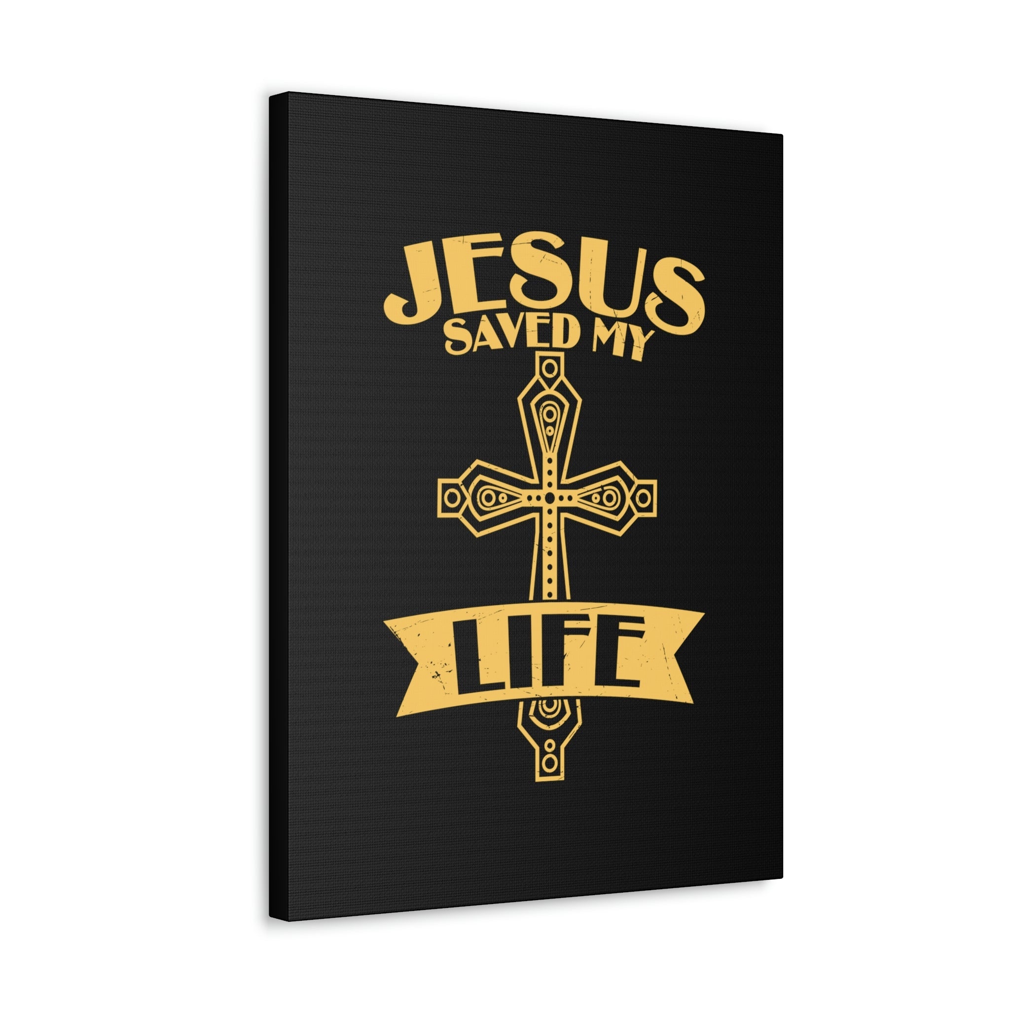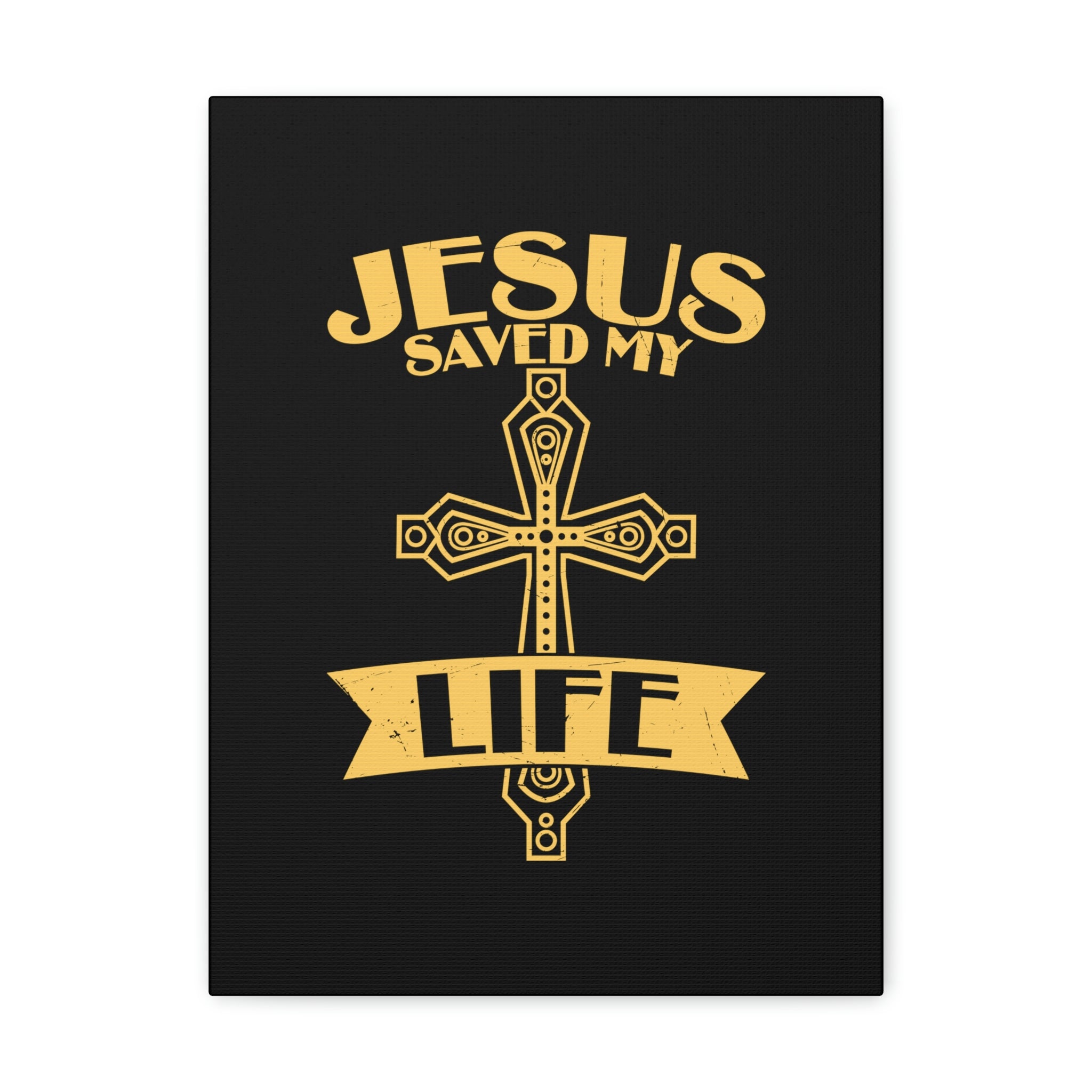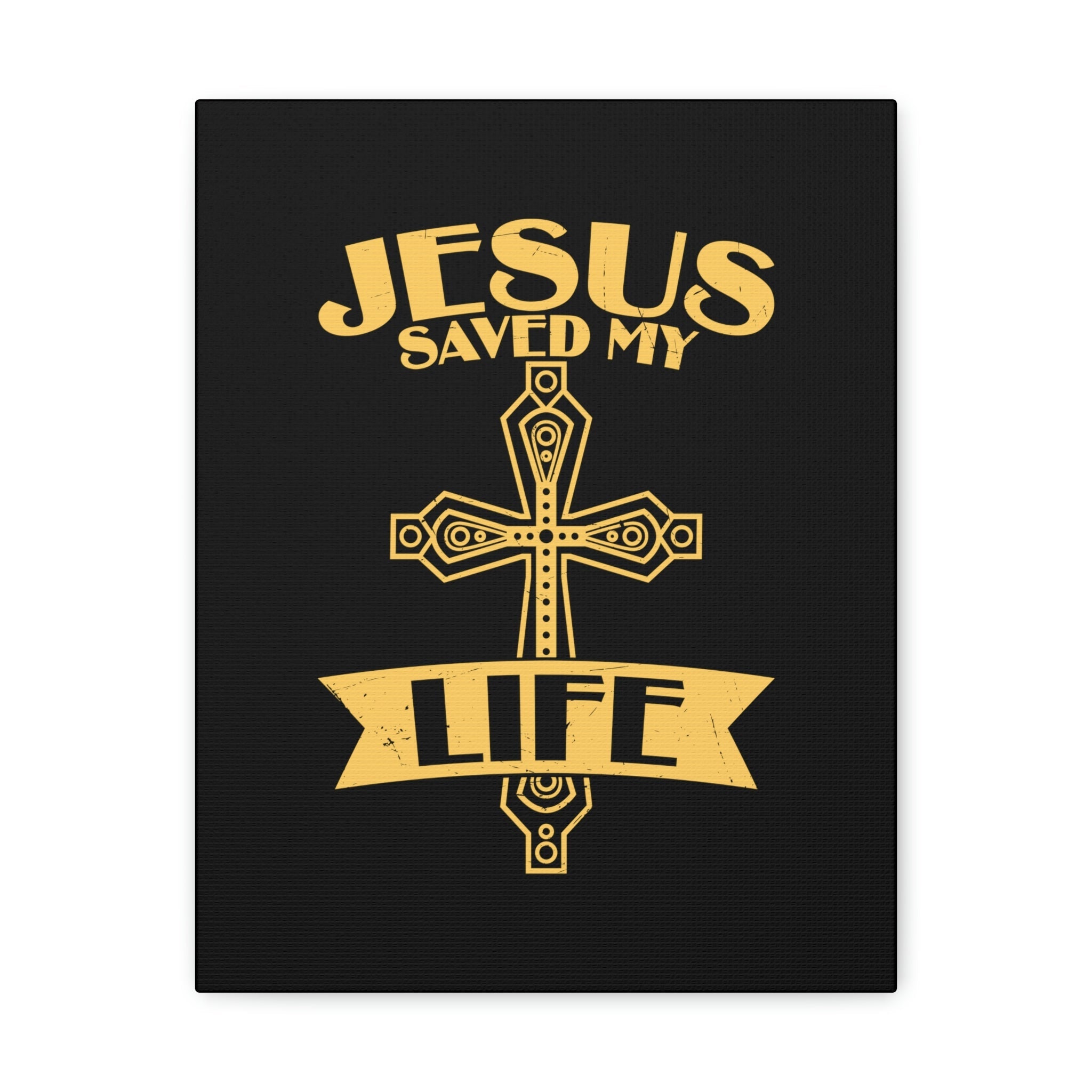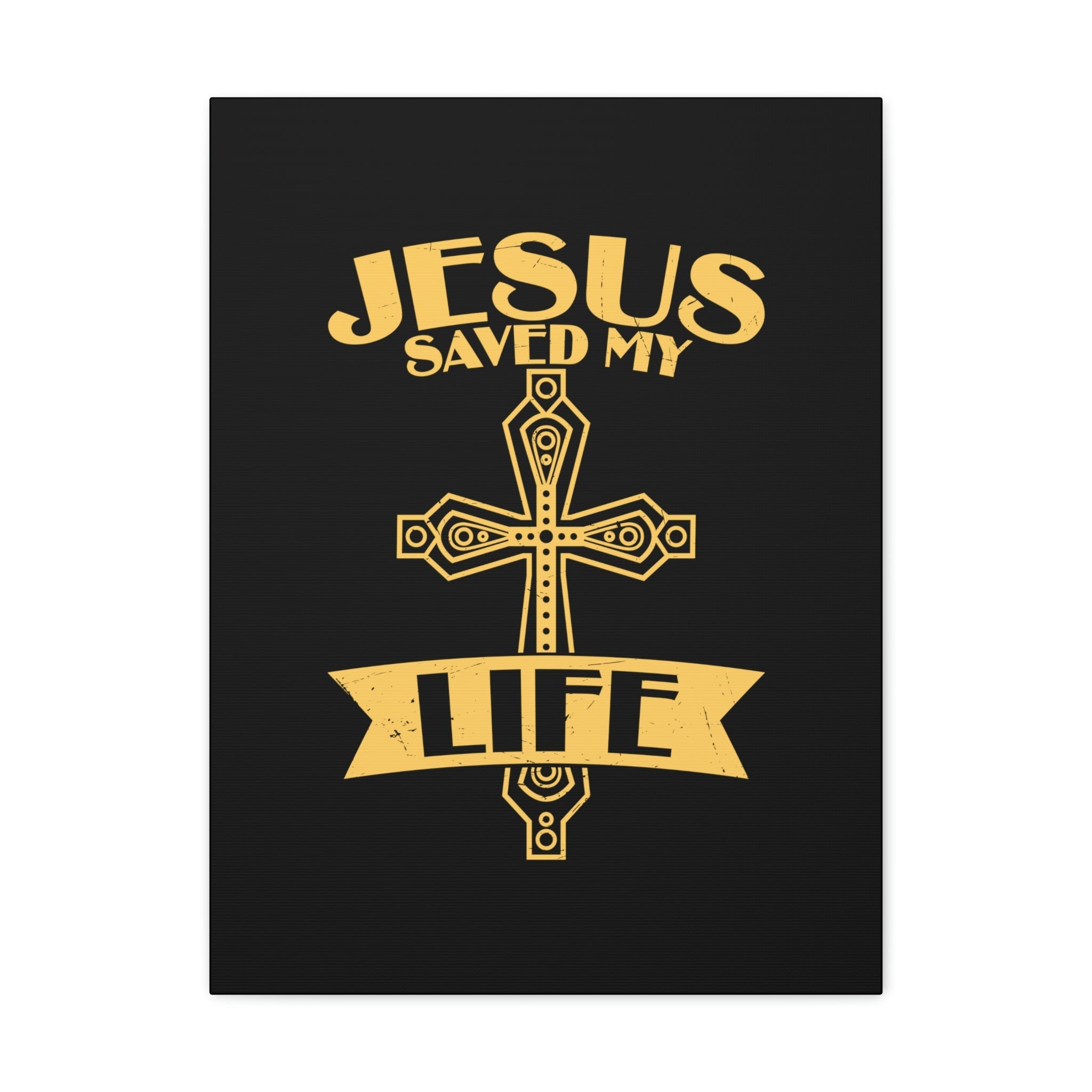 Scripture Walls Jesus Saved My Life Acts 16:31 Golden Cross Christian Wall Art Bible Verse Print Ready to Hang Unframed