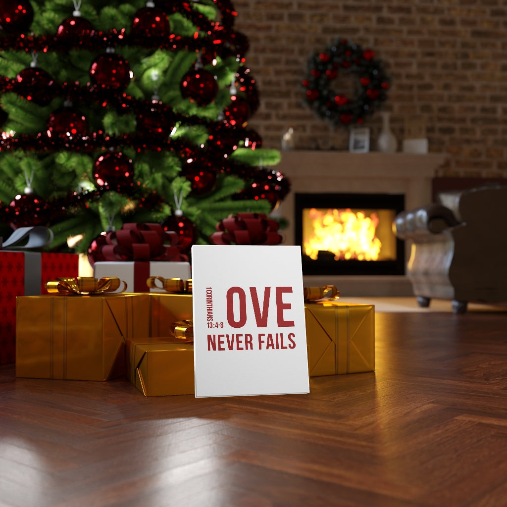Love Never Fails is inspired by the bible verse 1 Corinthians 13:4-8