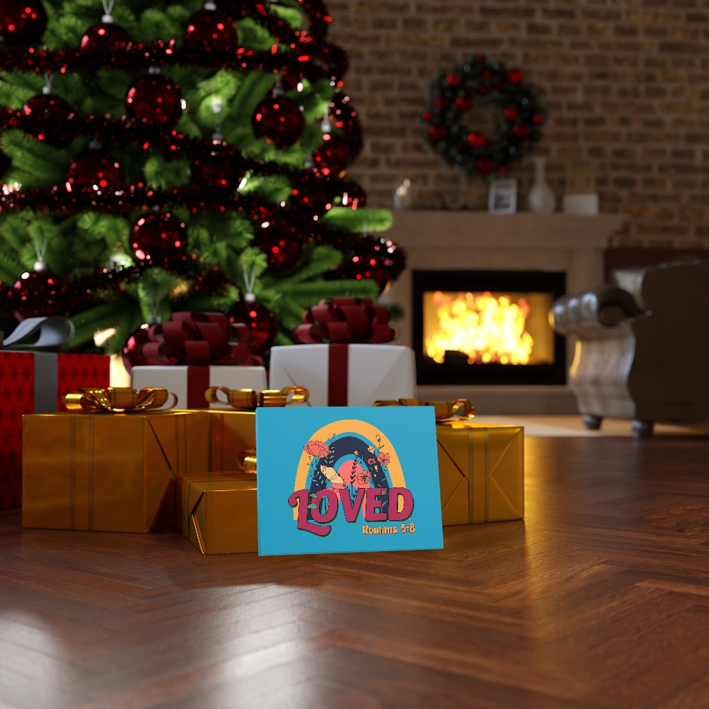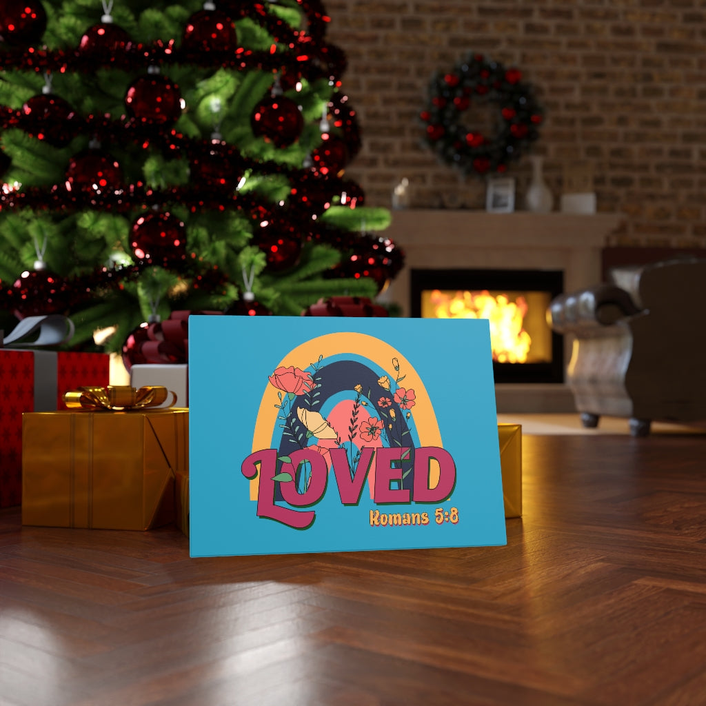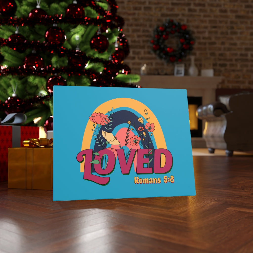Scripture Walls Loved Romans 5:8 Red Turquoise Bible Verse Canvas Christian Wall Art Ready to Hang Unframed