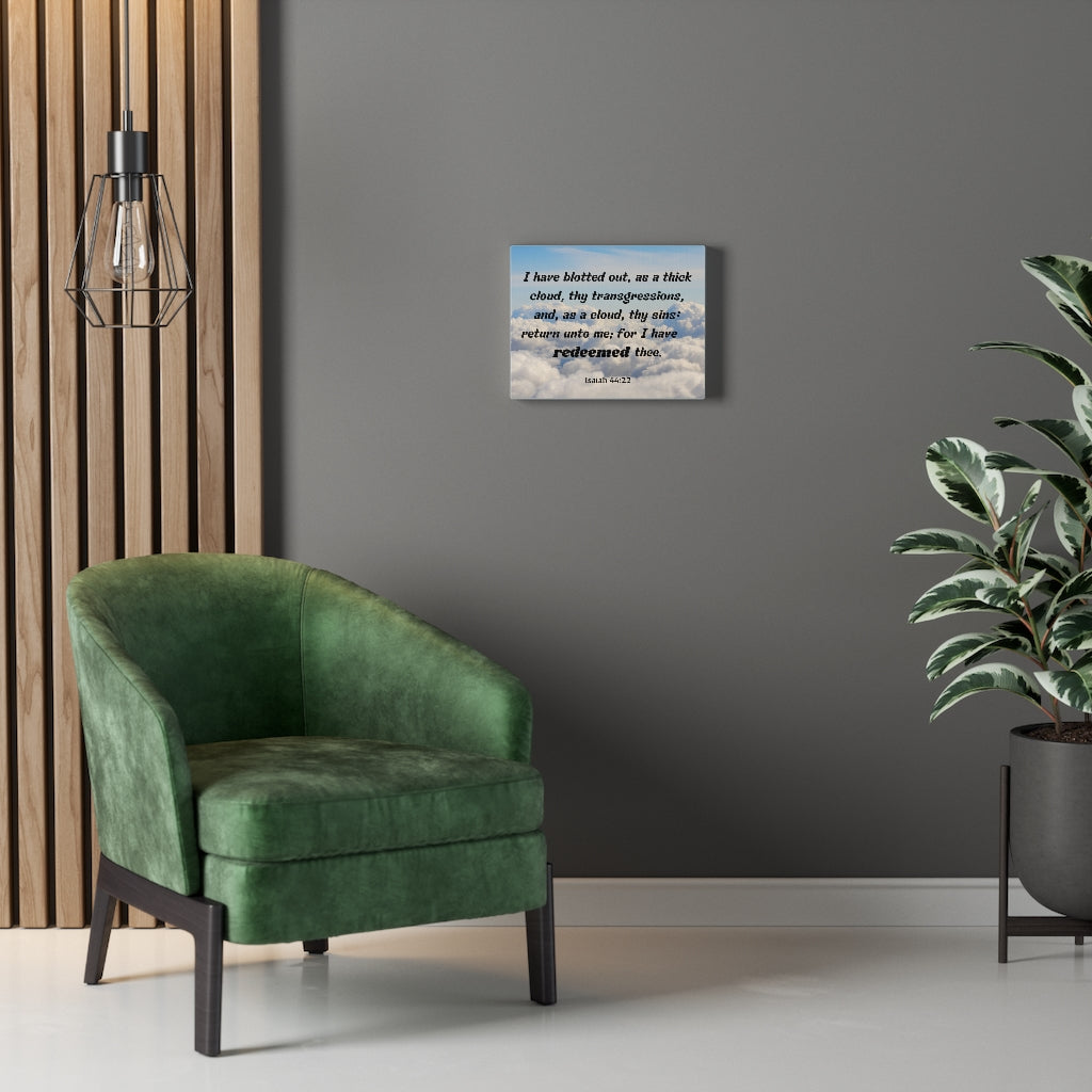 Scripture Walls Isaiah 44:22 Redeemed Bible Verse Canvas Christian Wall Art Ready to Hang Unframed