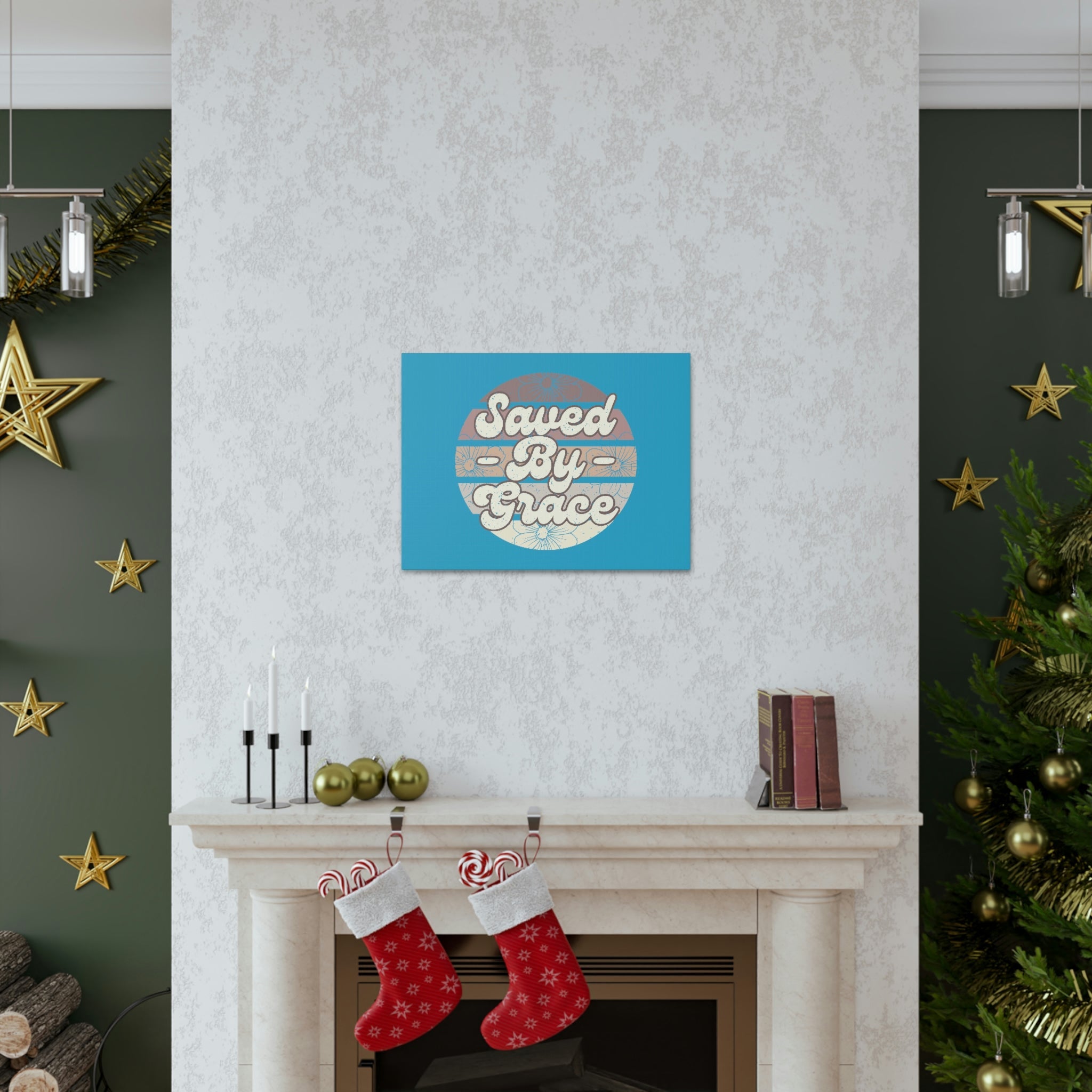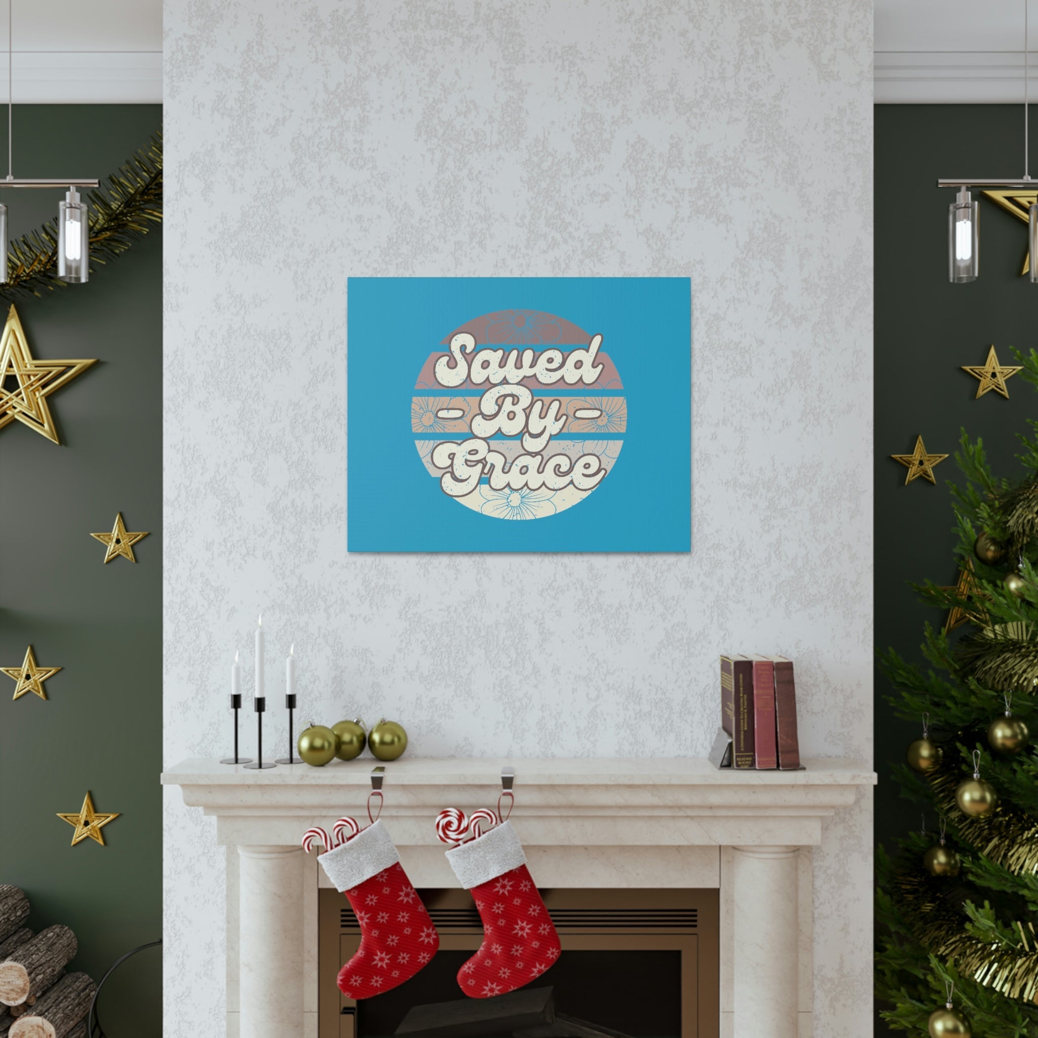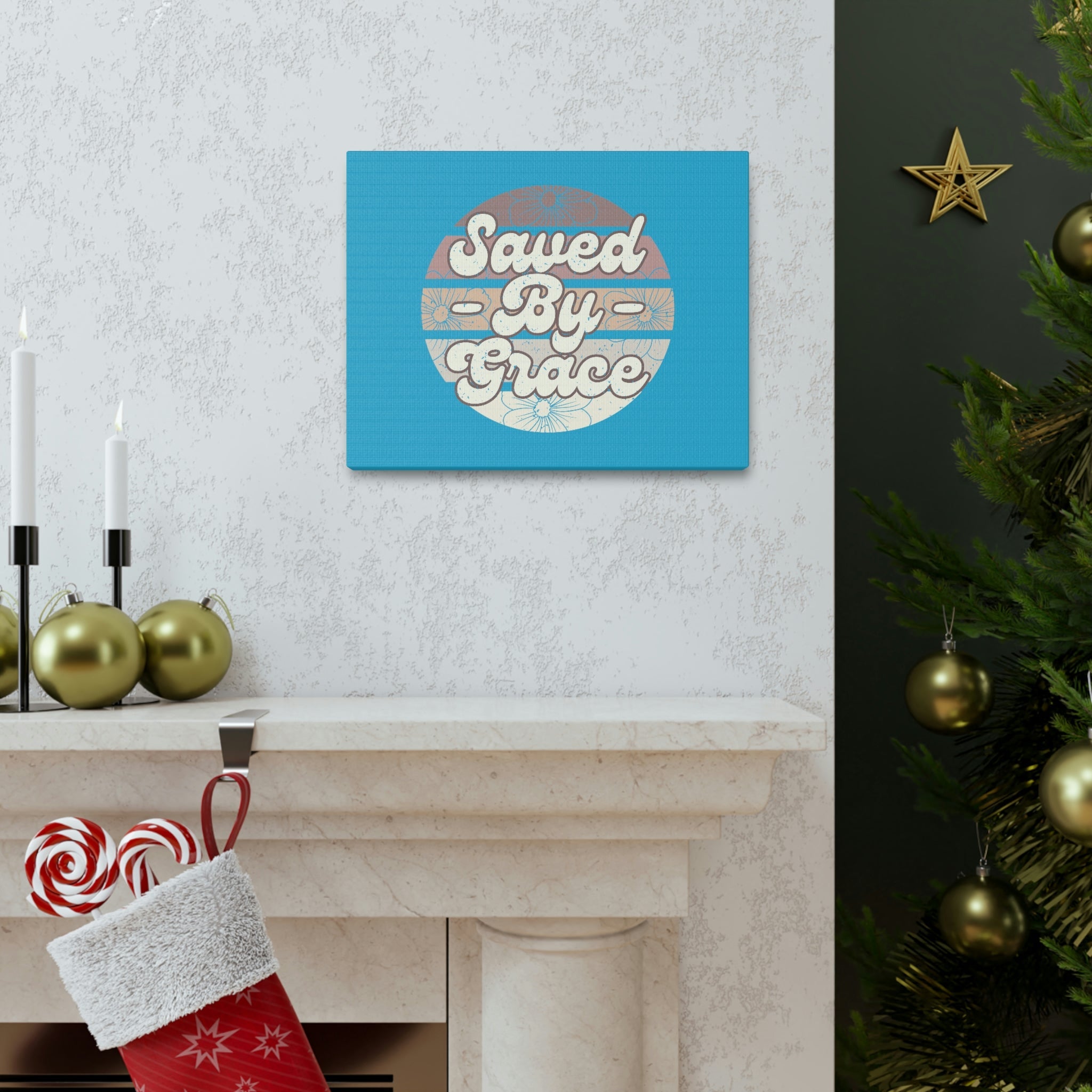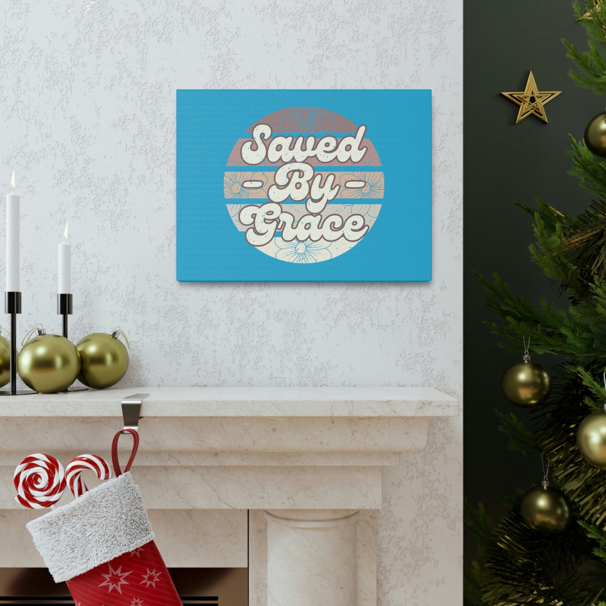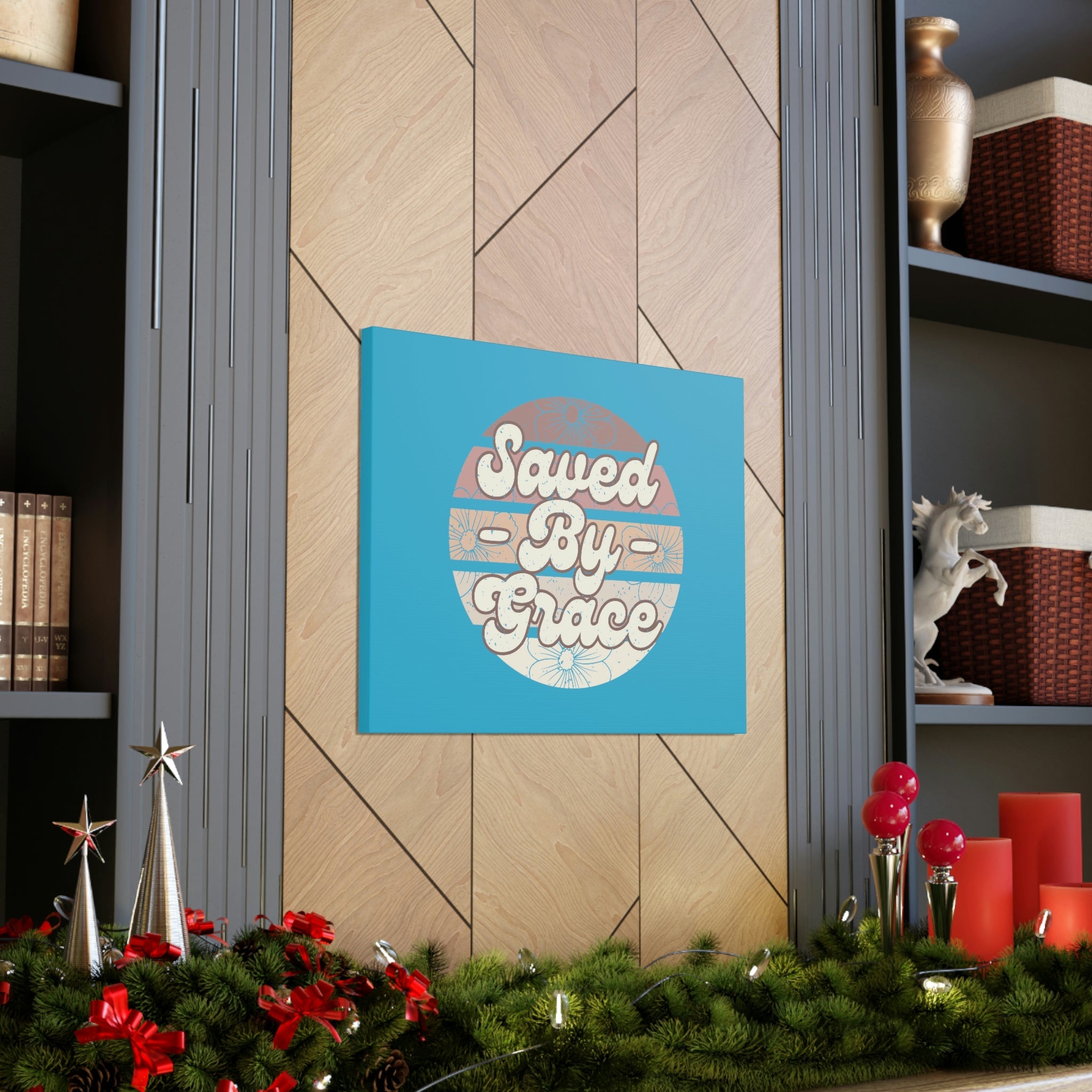 Scripture Walls Saved By Grace Ephesians 2:8 Circle Blue Christian Wall Art Bible Verse Print Ready to Hang Unframed