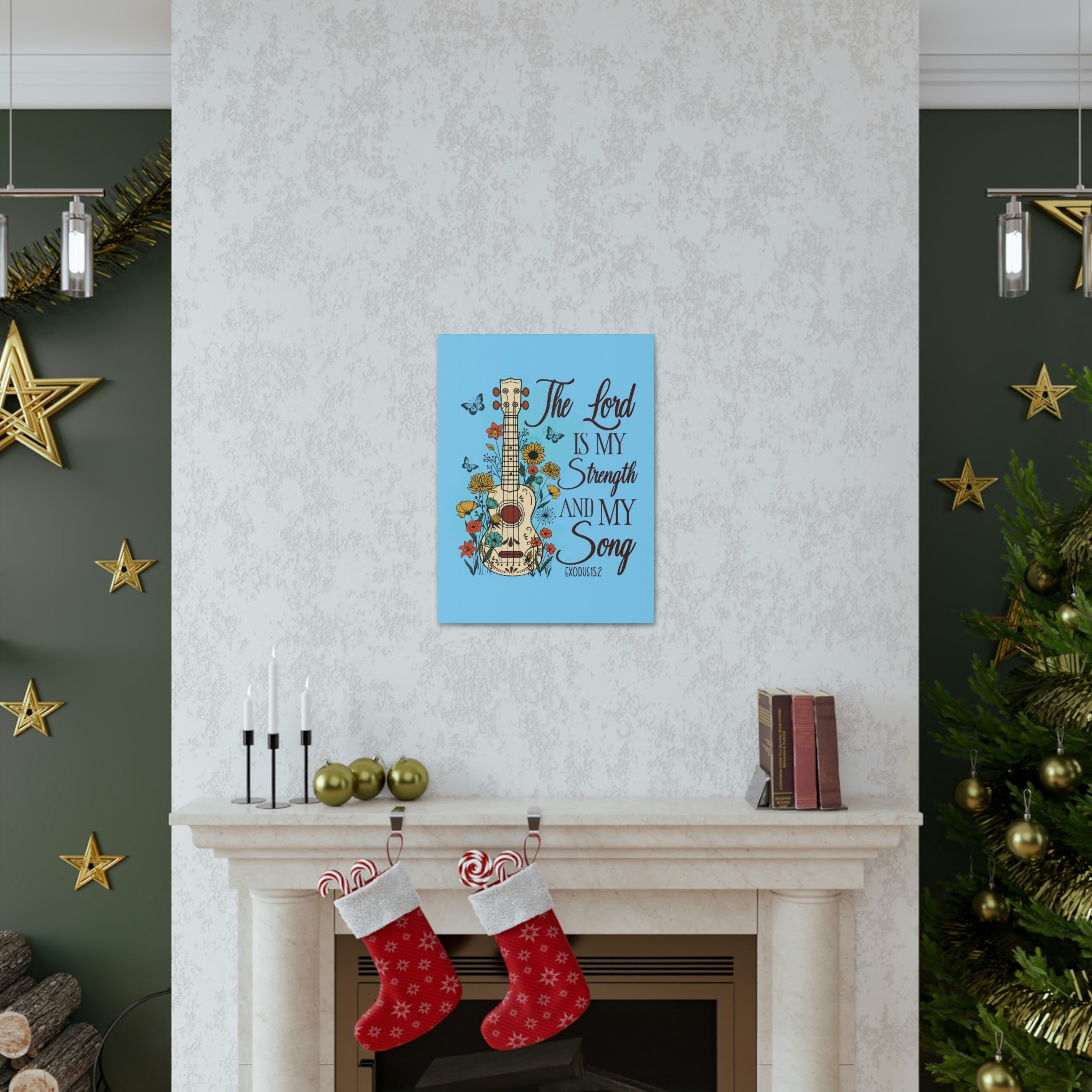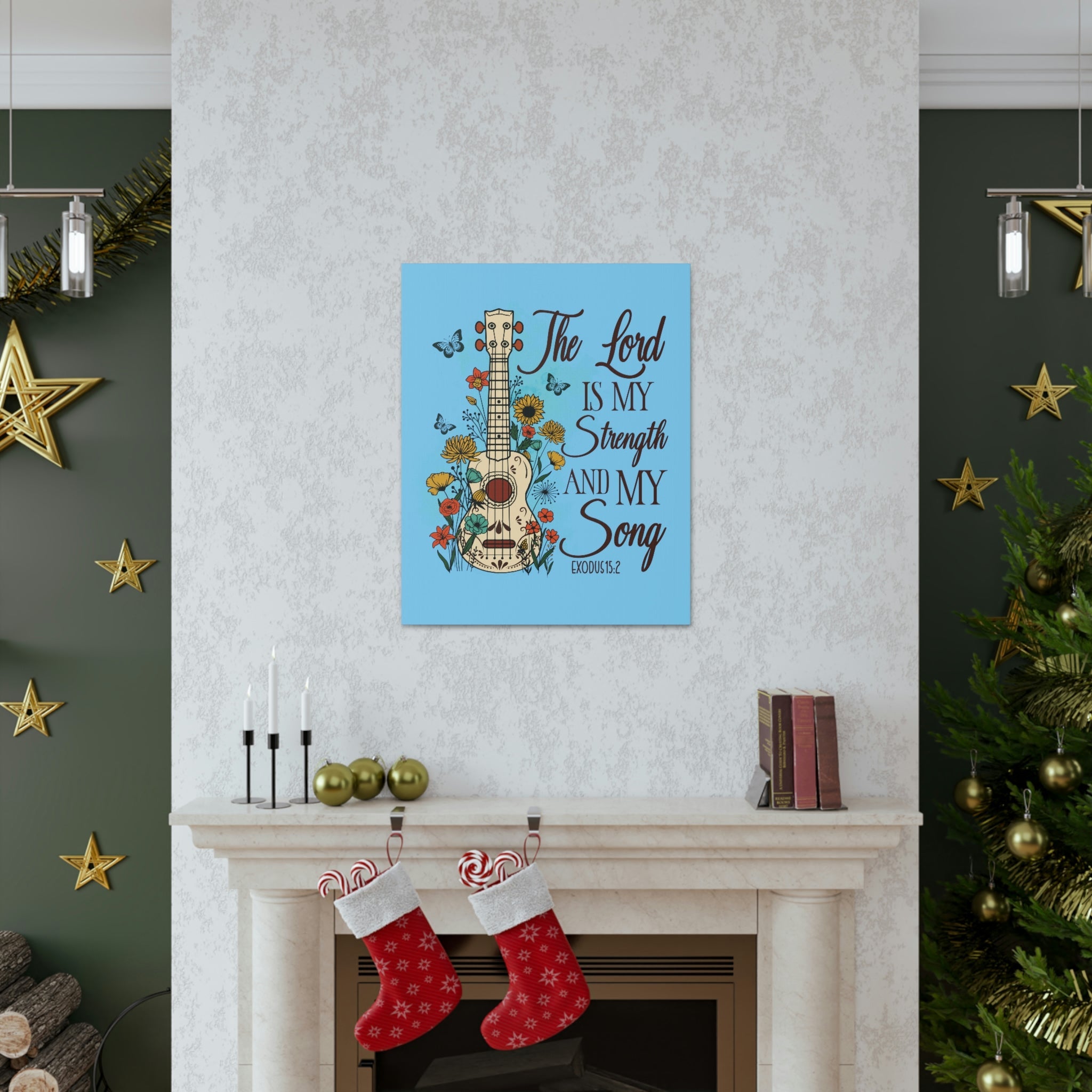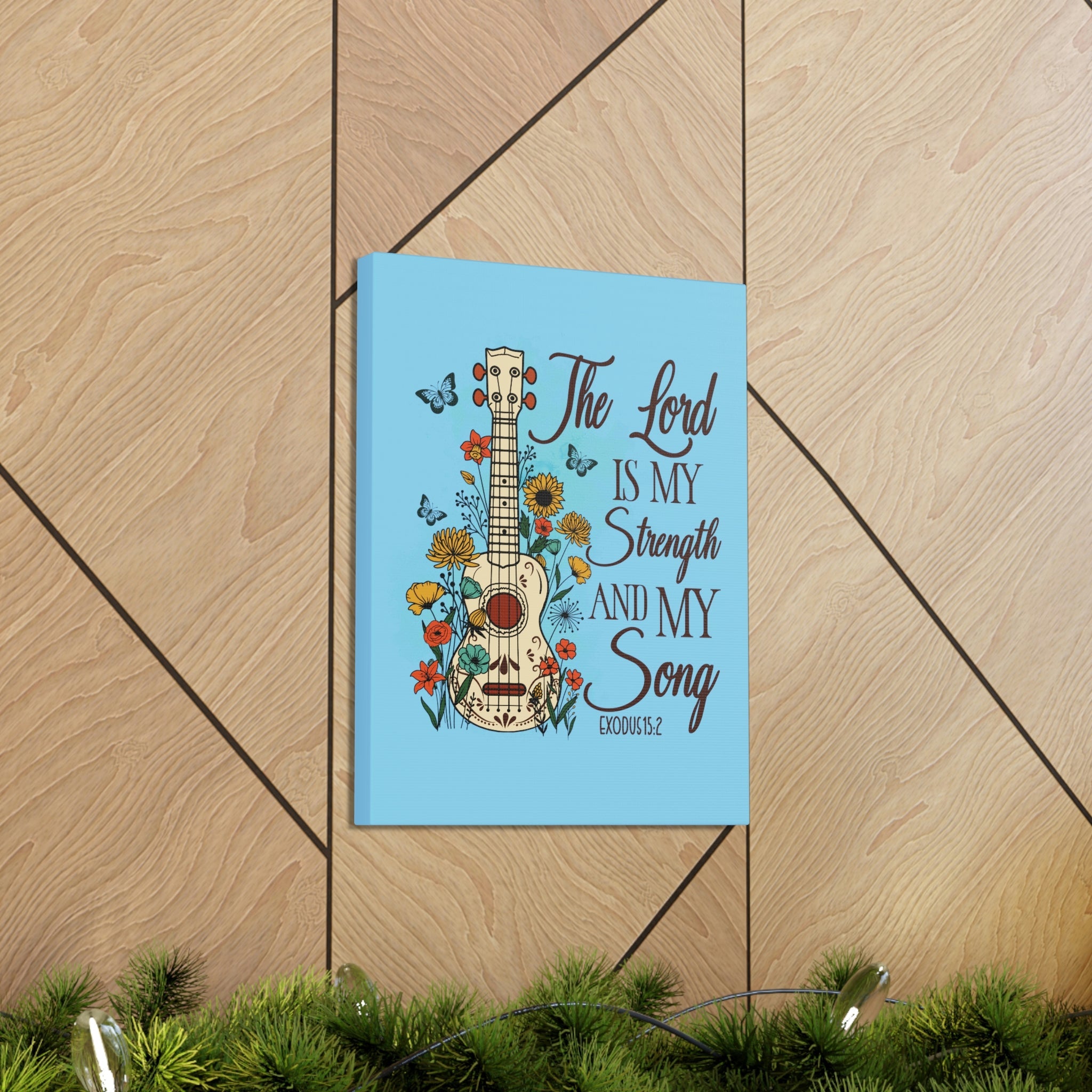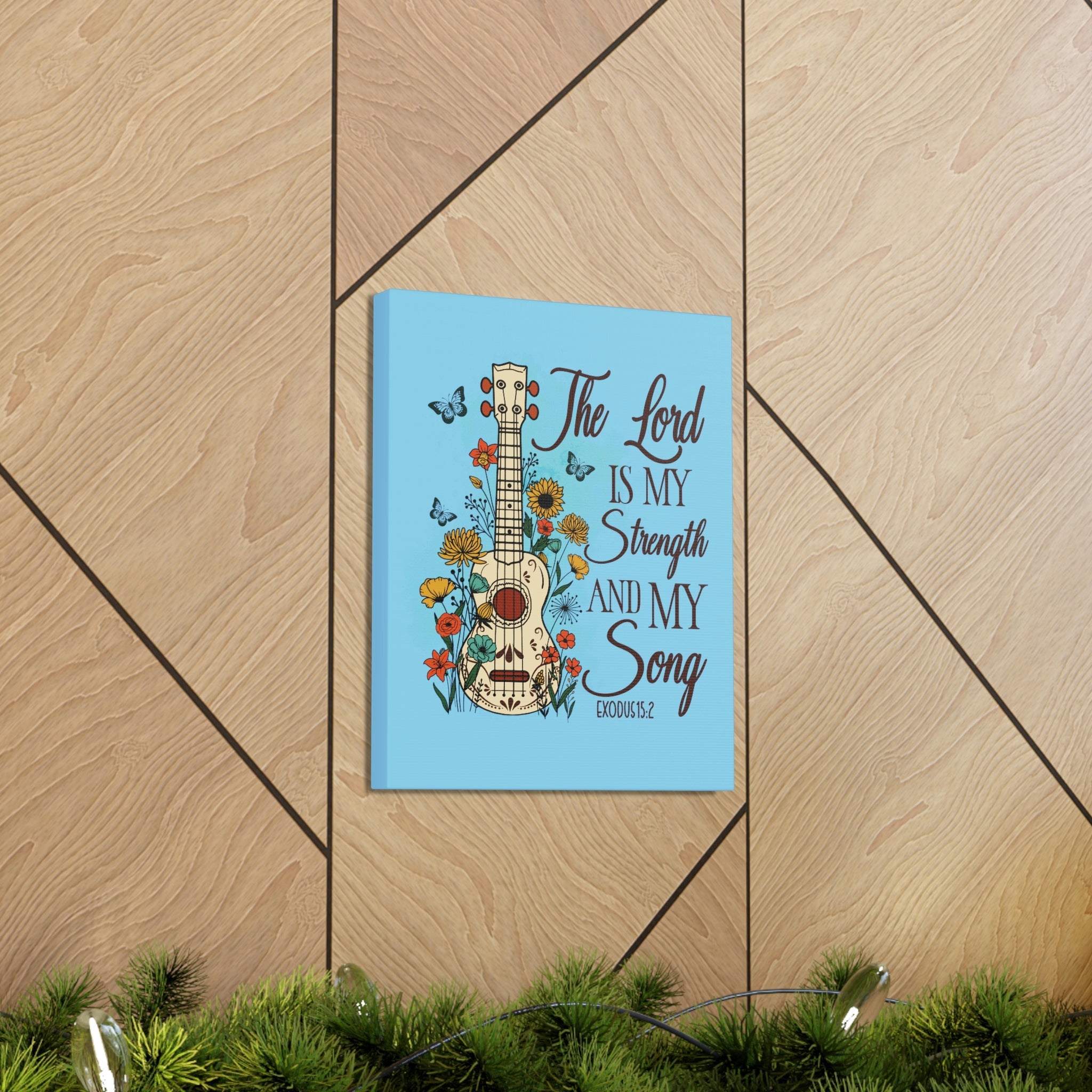 Scripture Walls The Lord Exodus 15:2 Guitar Flower Christian Wall Art Bible Verse Print Ready to Hang Unframed