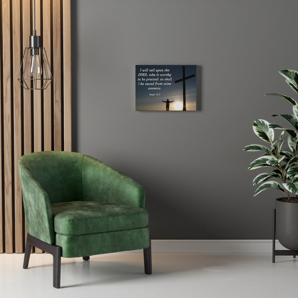 Scripture Walls Psalm 18:3 Worthy Bible Verse Canvas Christian Wall Art Ready to Hang Unframed
