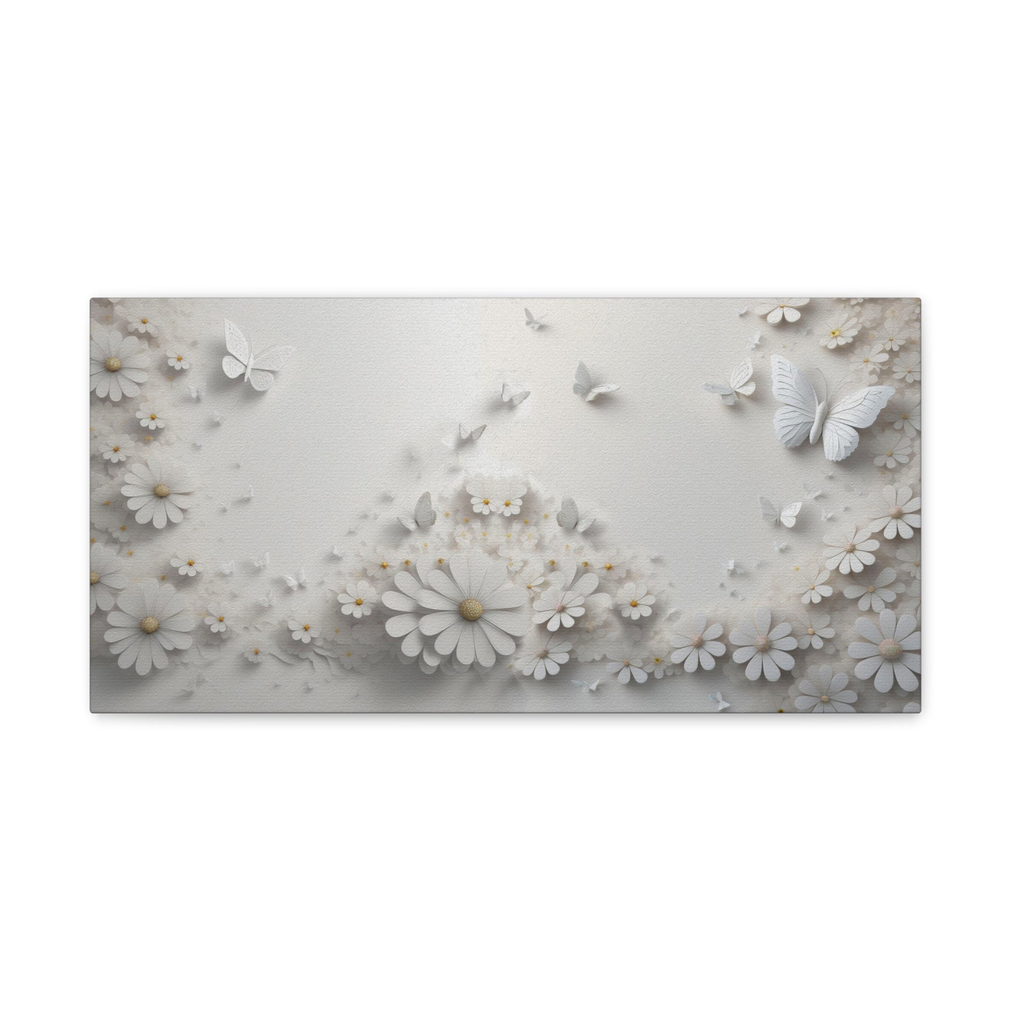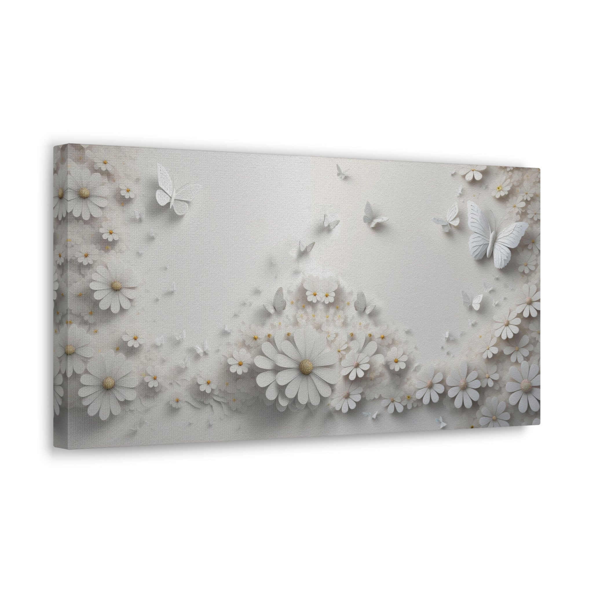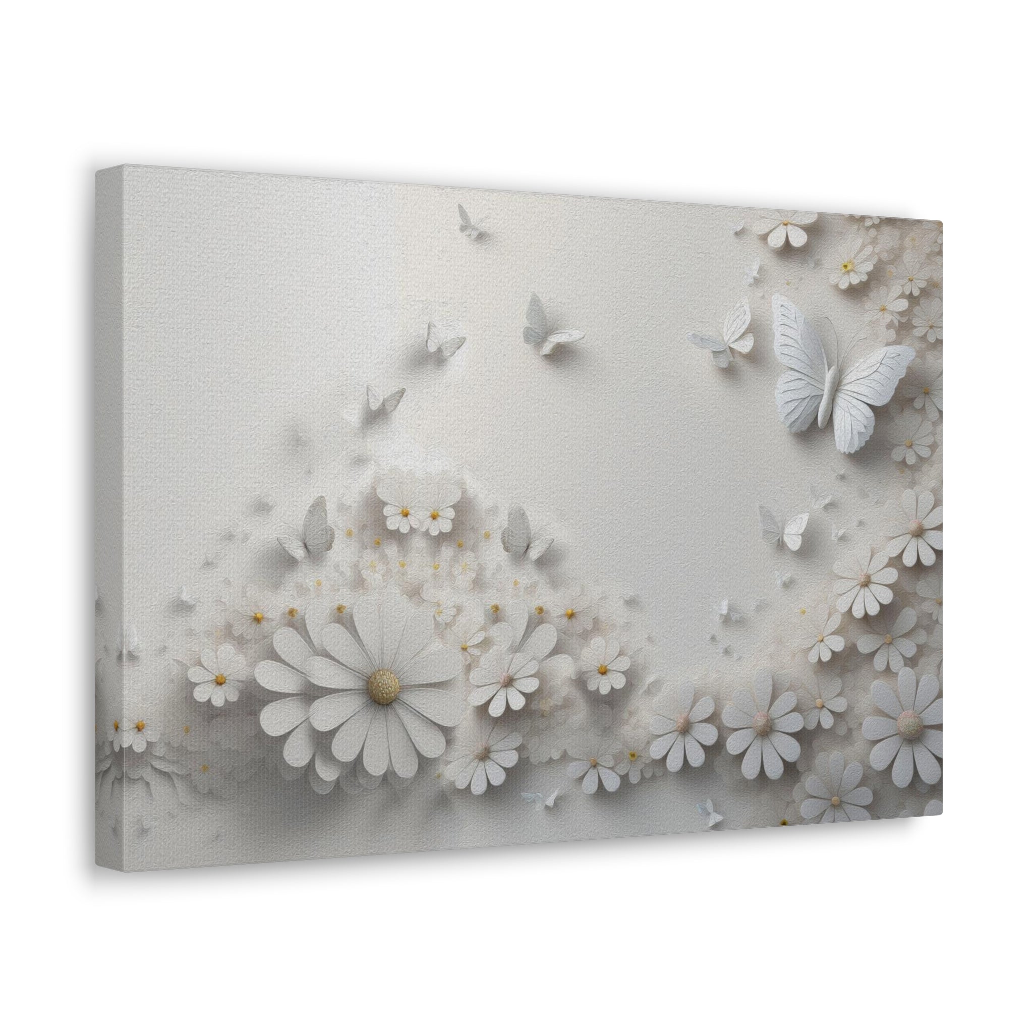 Abstract 3D White Background With Small And Large Flowers And Butterflies Oil Painting Canvas Wall Art for Home Decor Ready-to-Hang