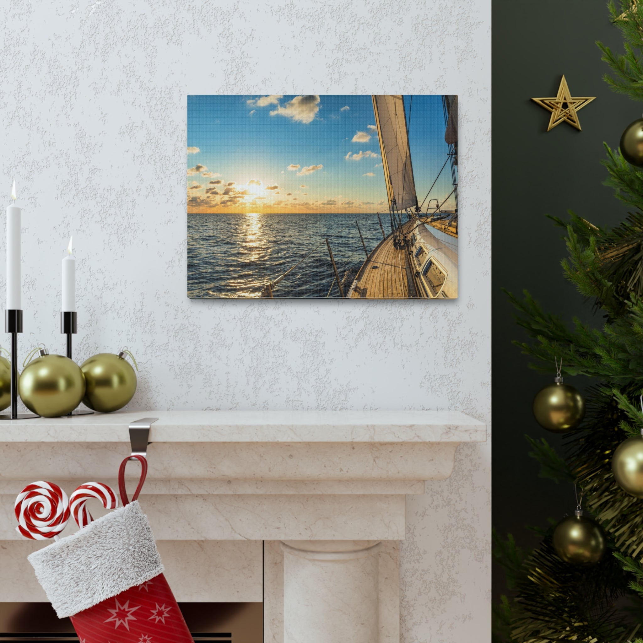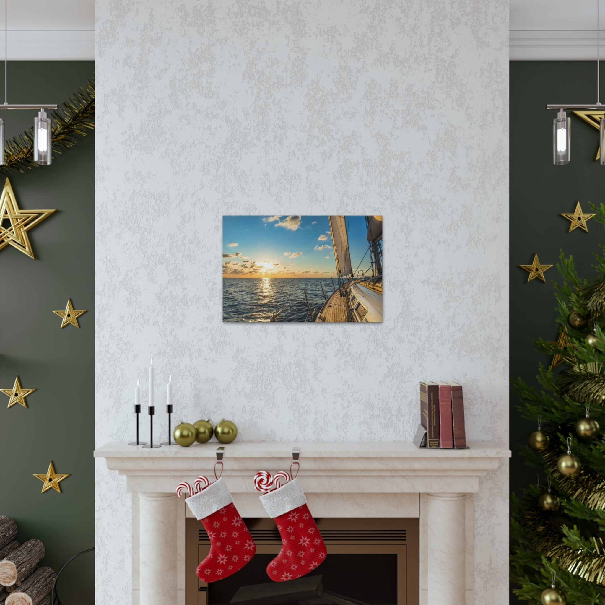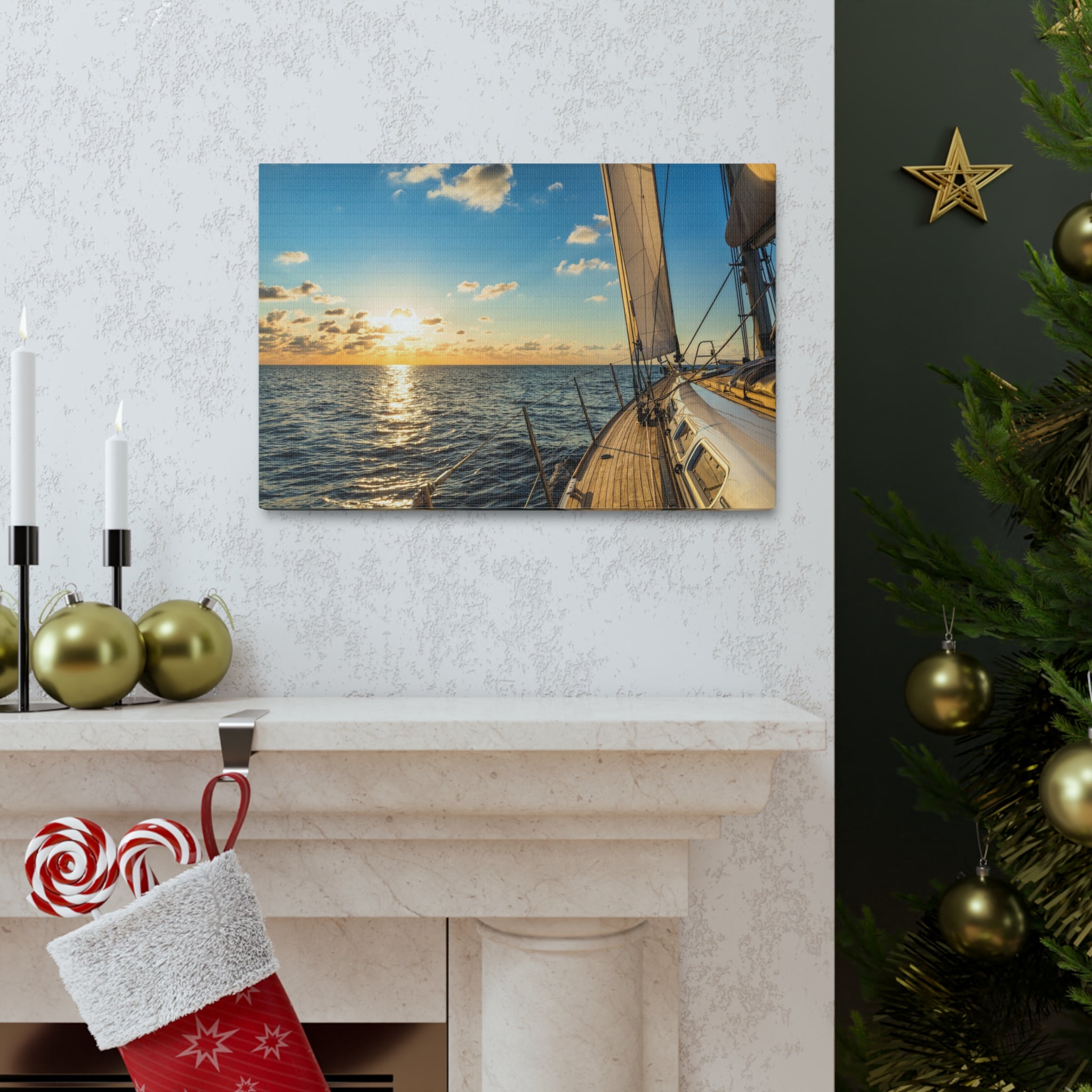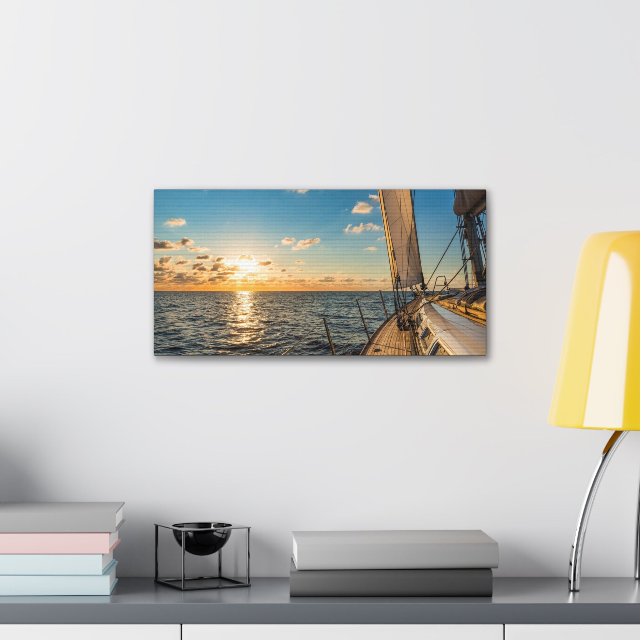 Cruising Sailboat Sailing In The Sea At Sunset Ocean Canvas Wall Art for Home Decor Ready-to-Hang