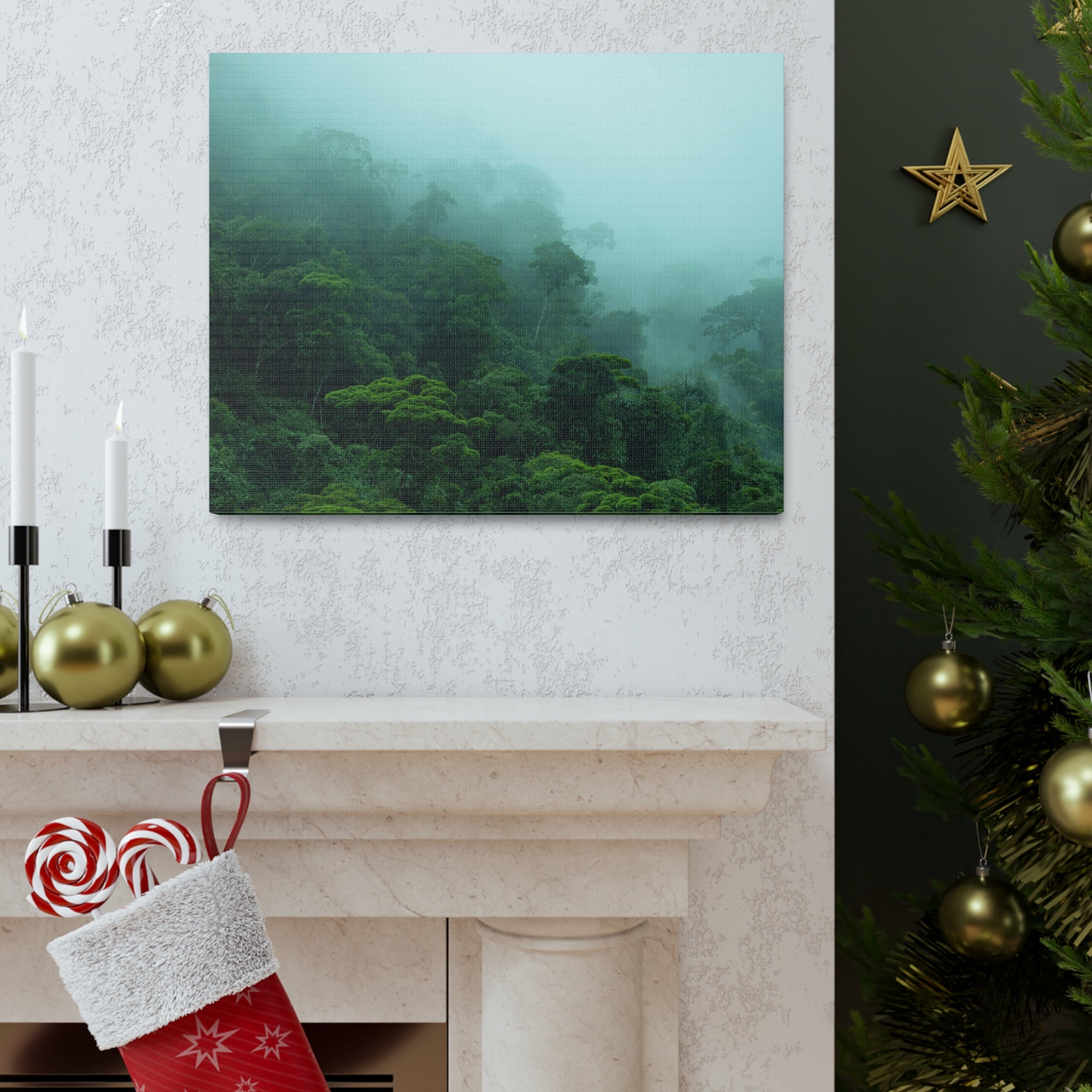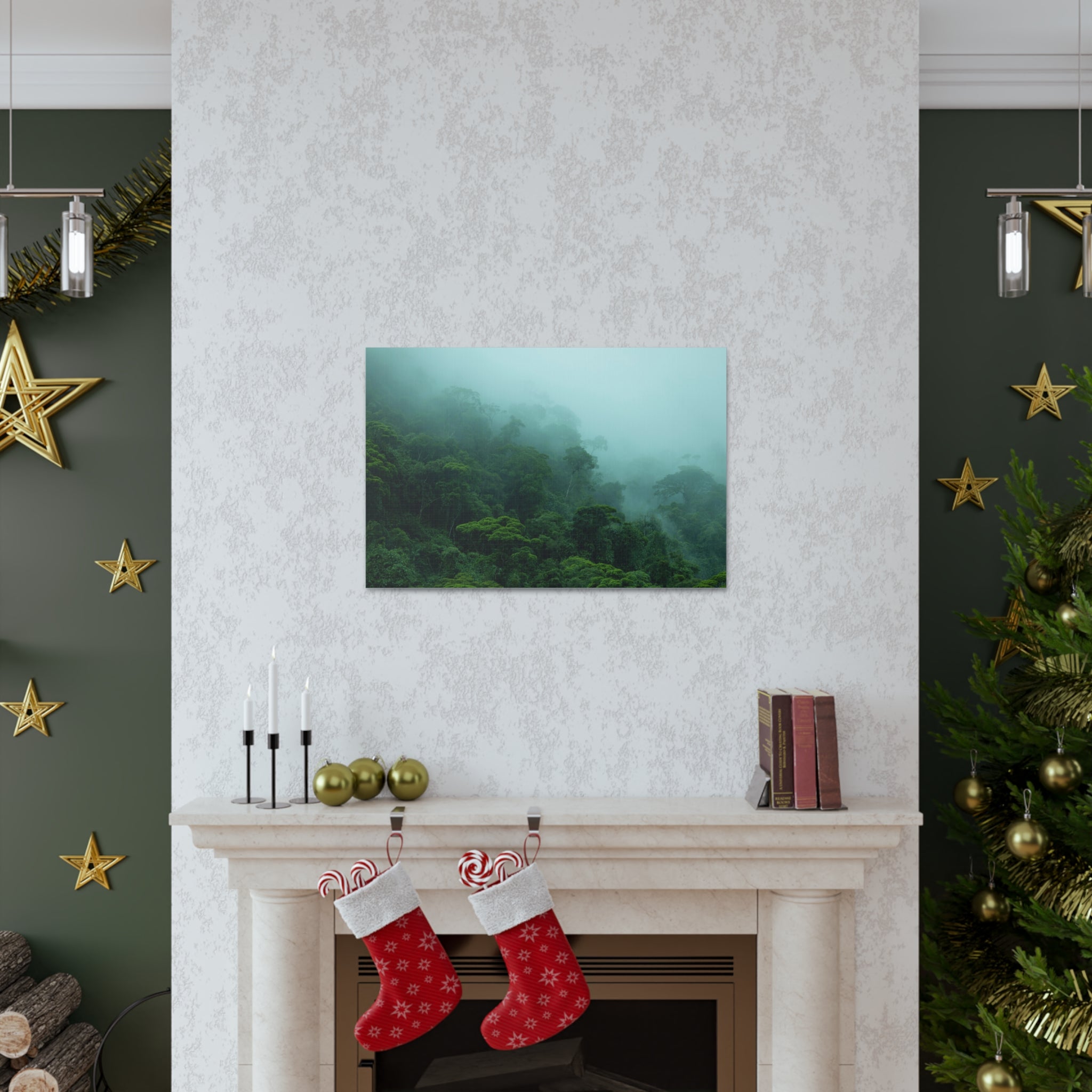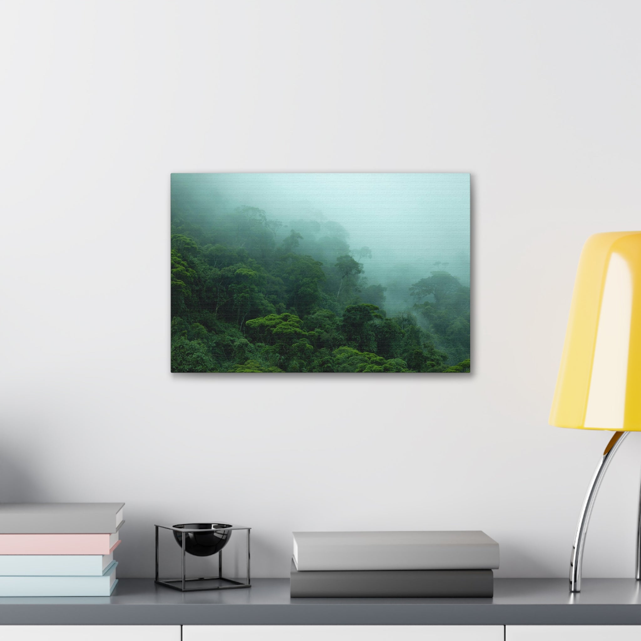 Dark Misty Forest Nature Wilderness Photography Canvas Wall Art for Home Decor Ready-to-Hang