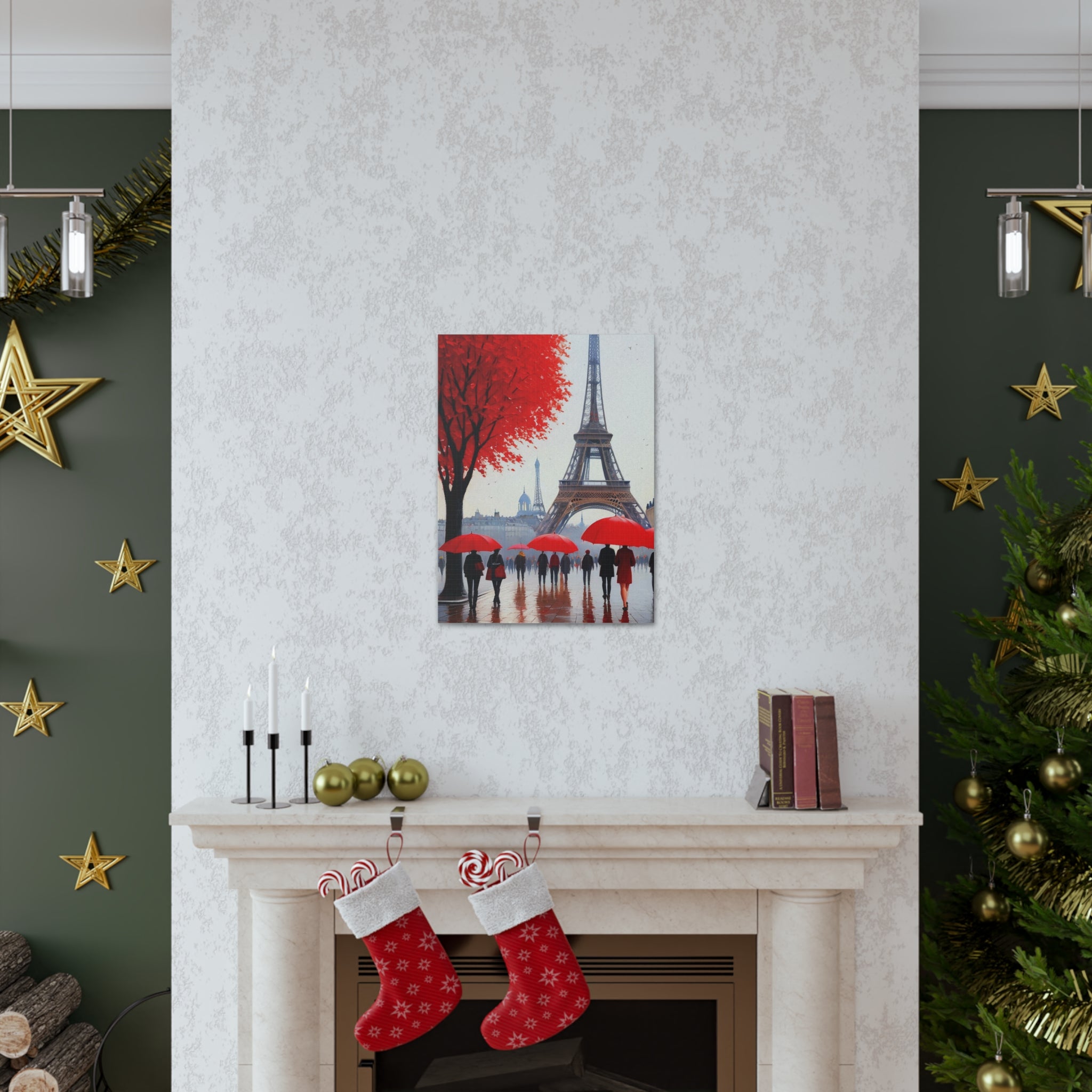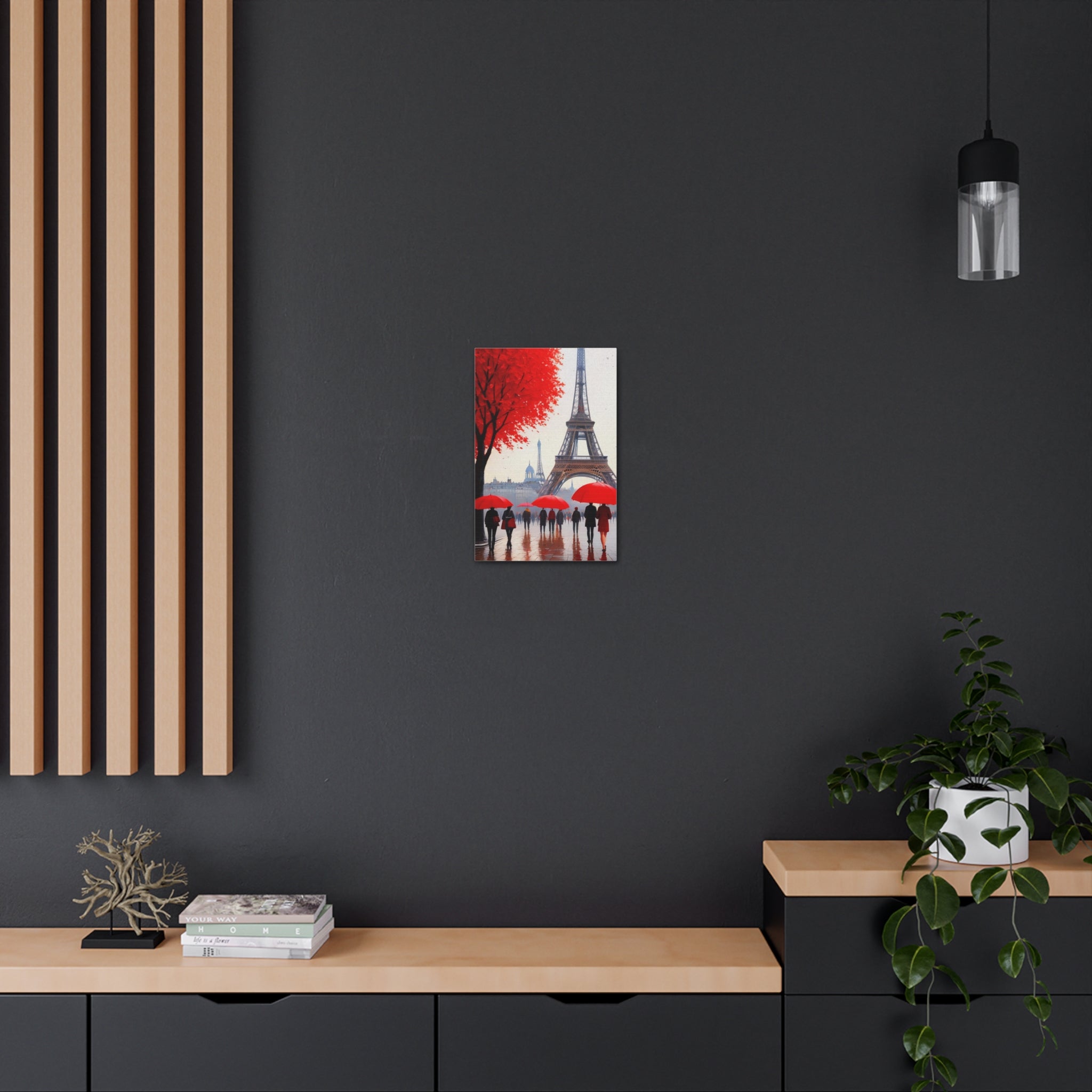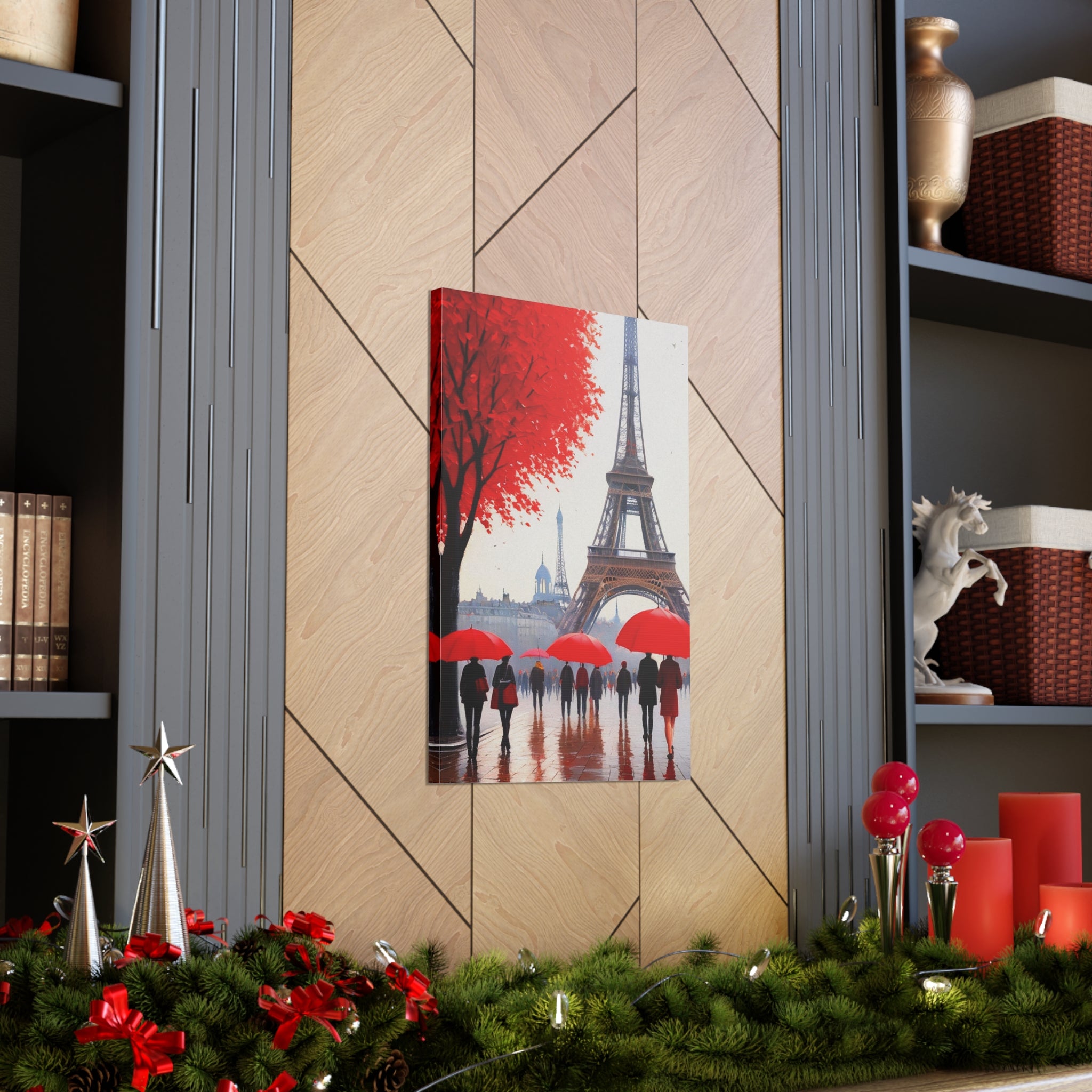Paris Eiffel Tower Crowd With Red Umbrella France Canvas Artwork Breathtaking French City for Home Decor Ready to Hang