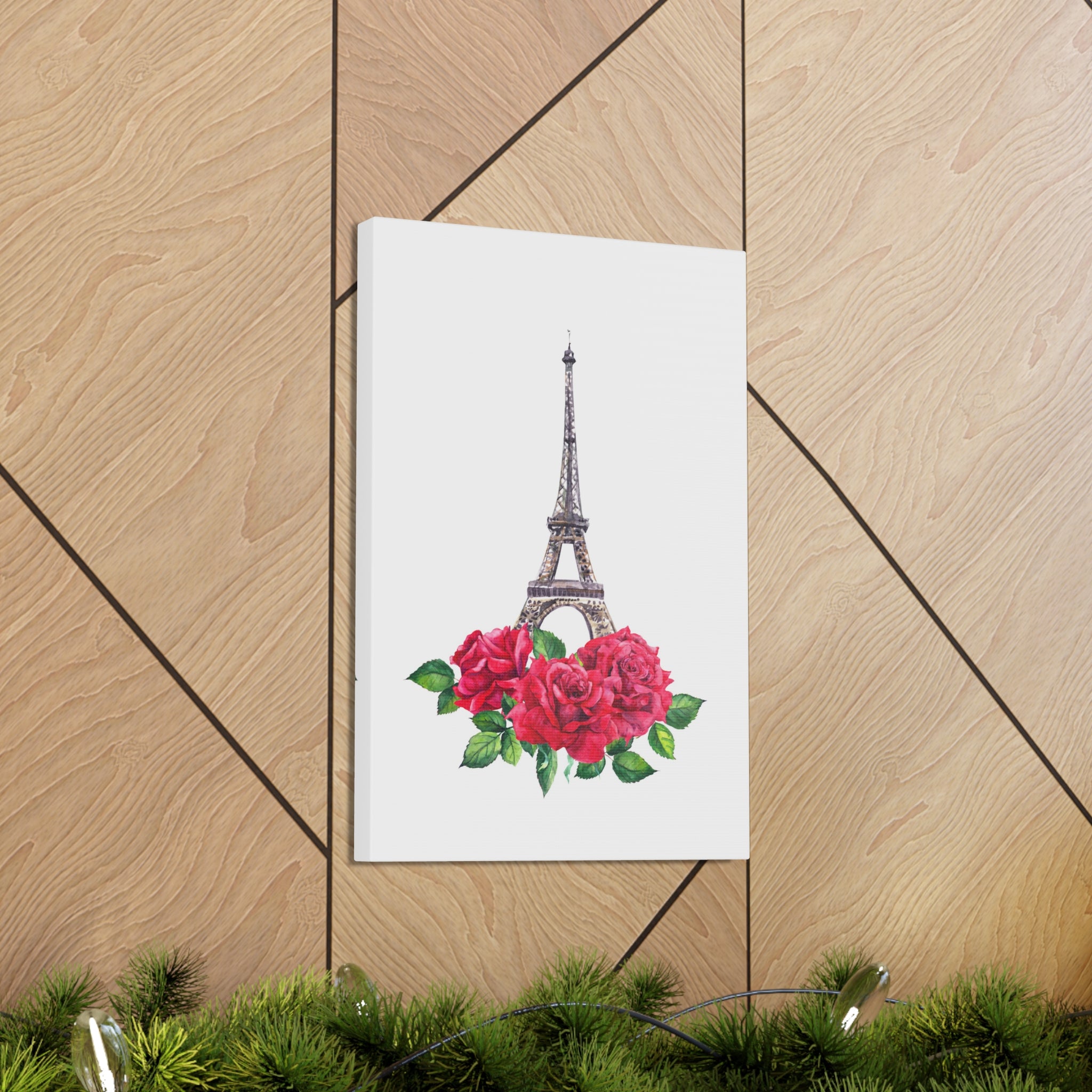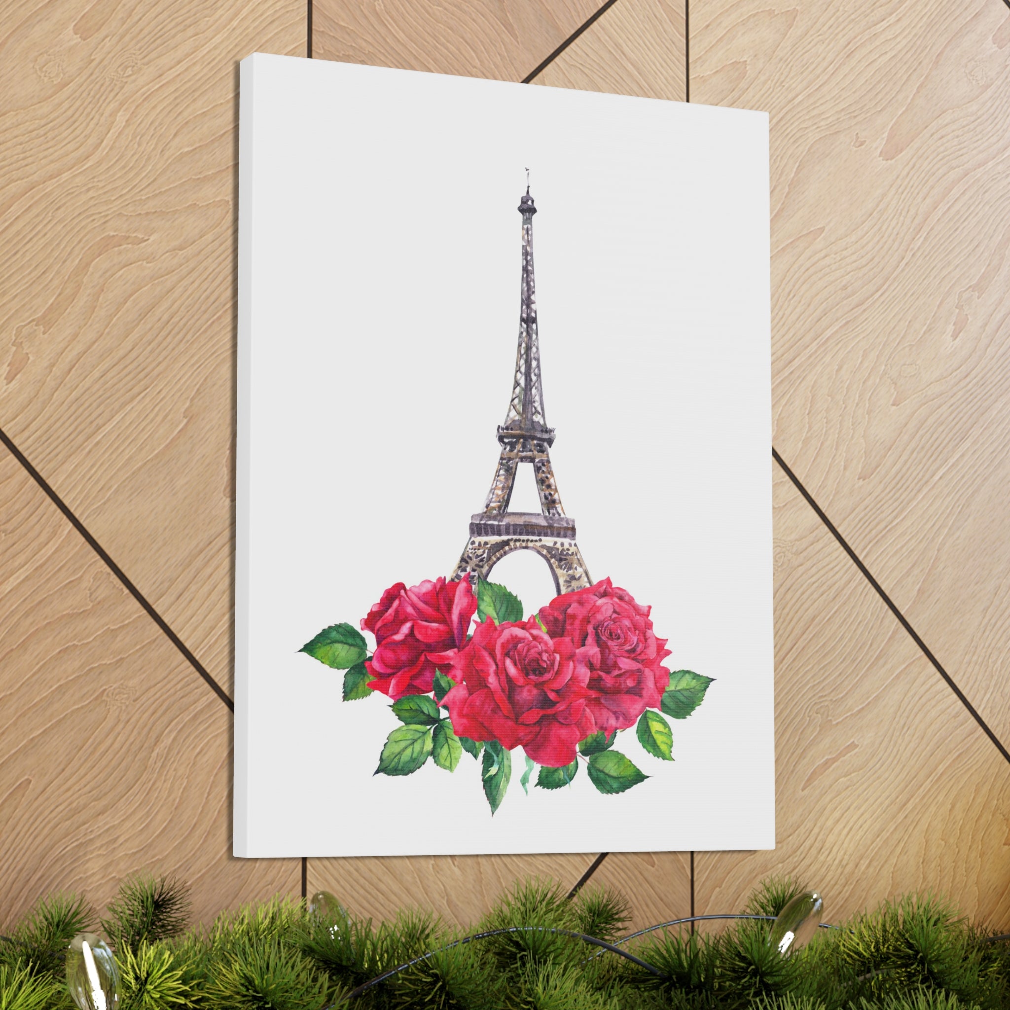 Eiffel Tower Red Rose Paris Illustration France Canvas Artwork Breathtaking French City for Home Decor Ready to Hang