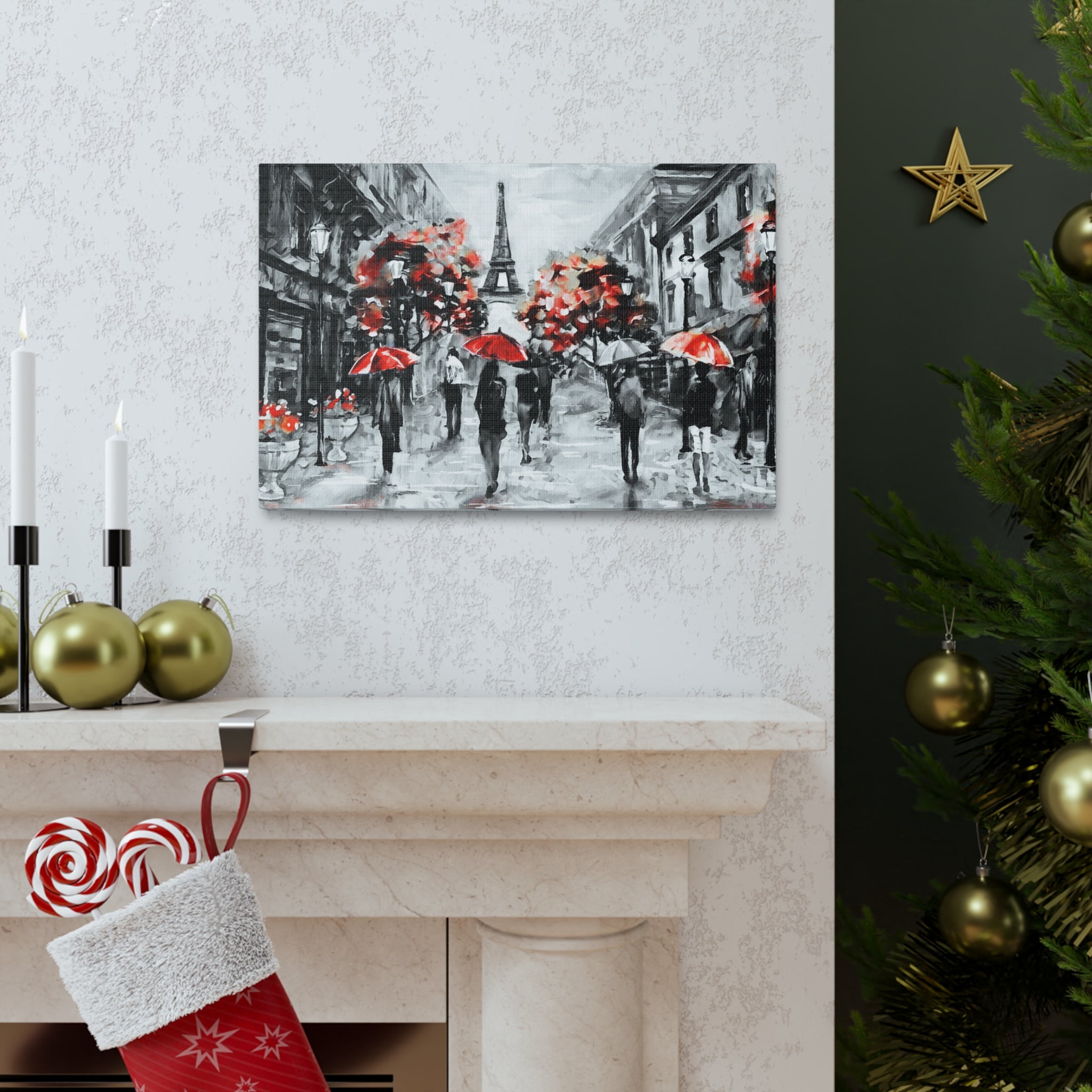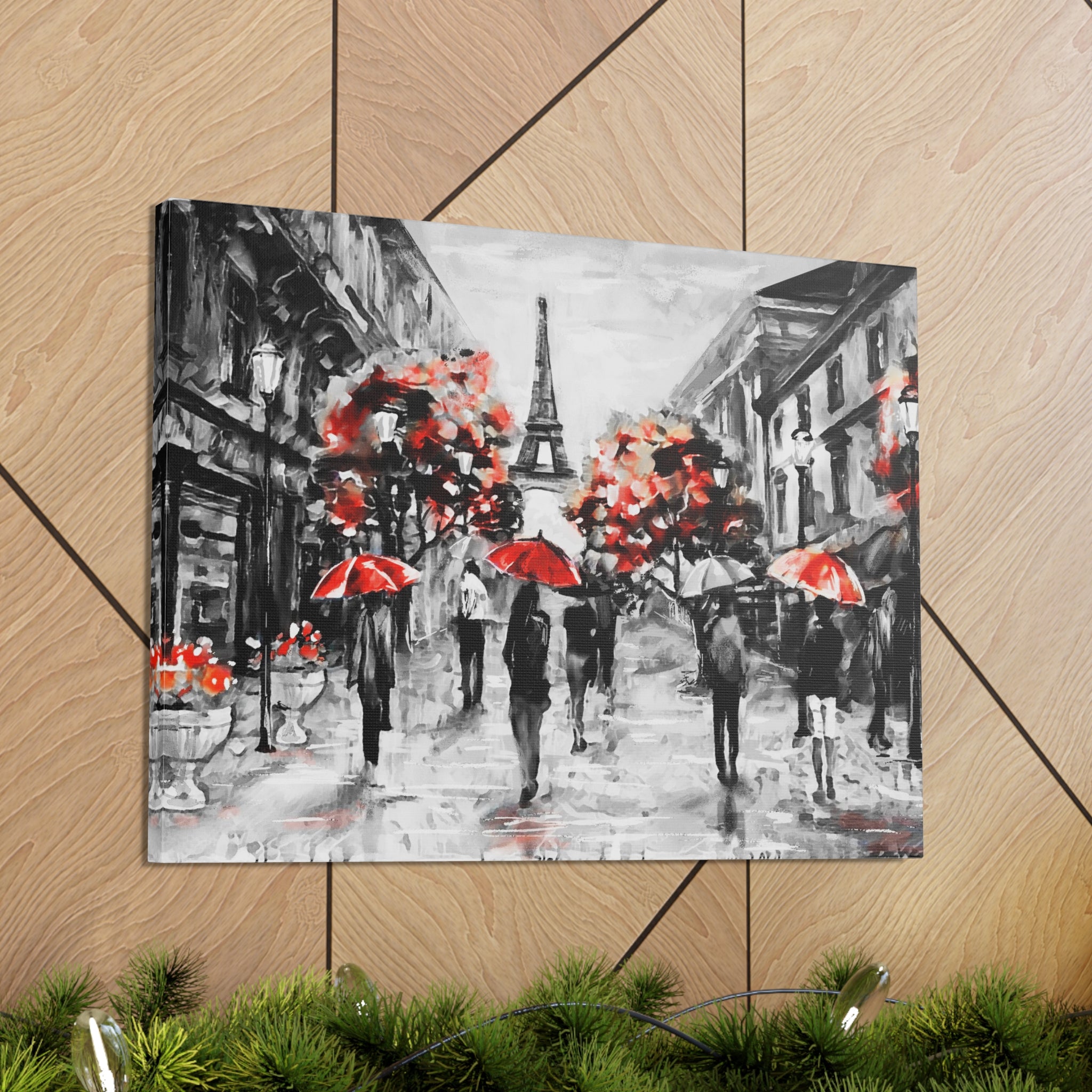 Eiffel Tower Street View Umbrella Paris France Canvas Artwork Breathtaking French City for Home Decor Ready to Hang