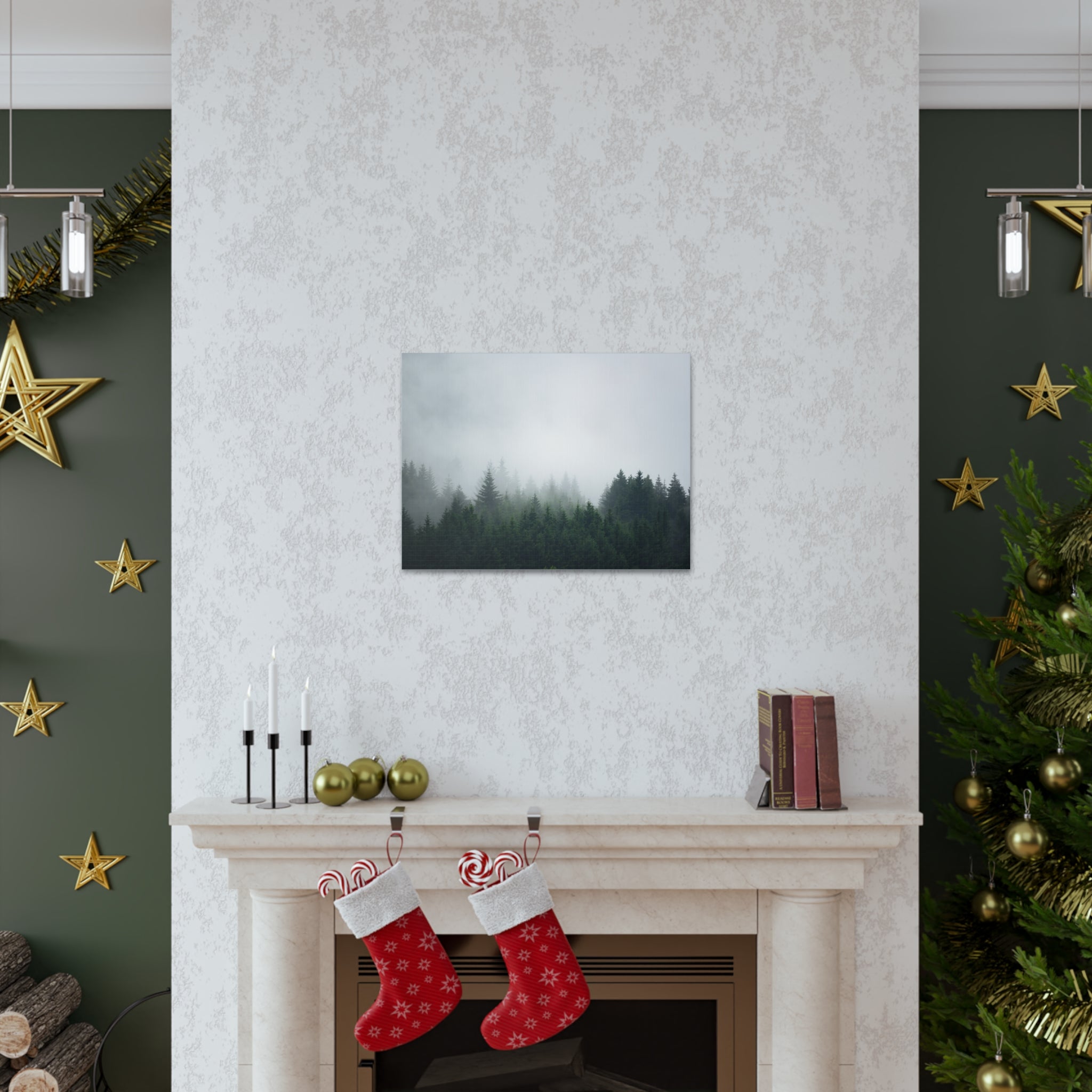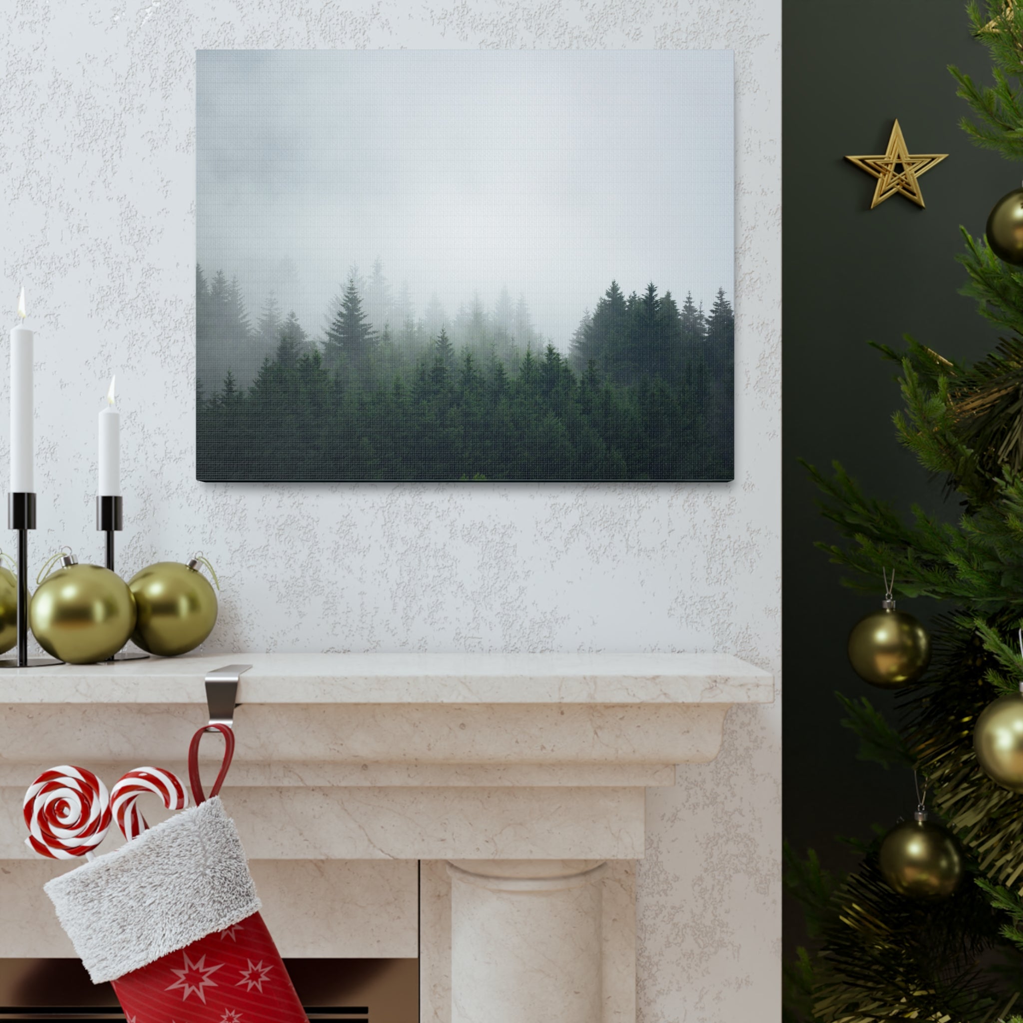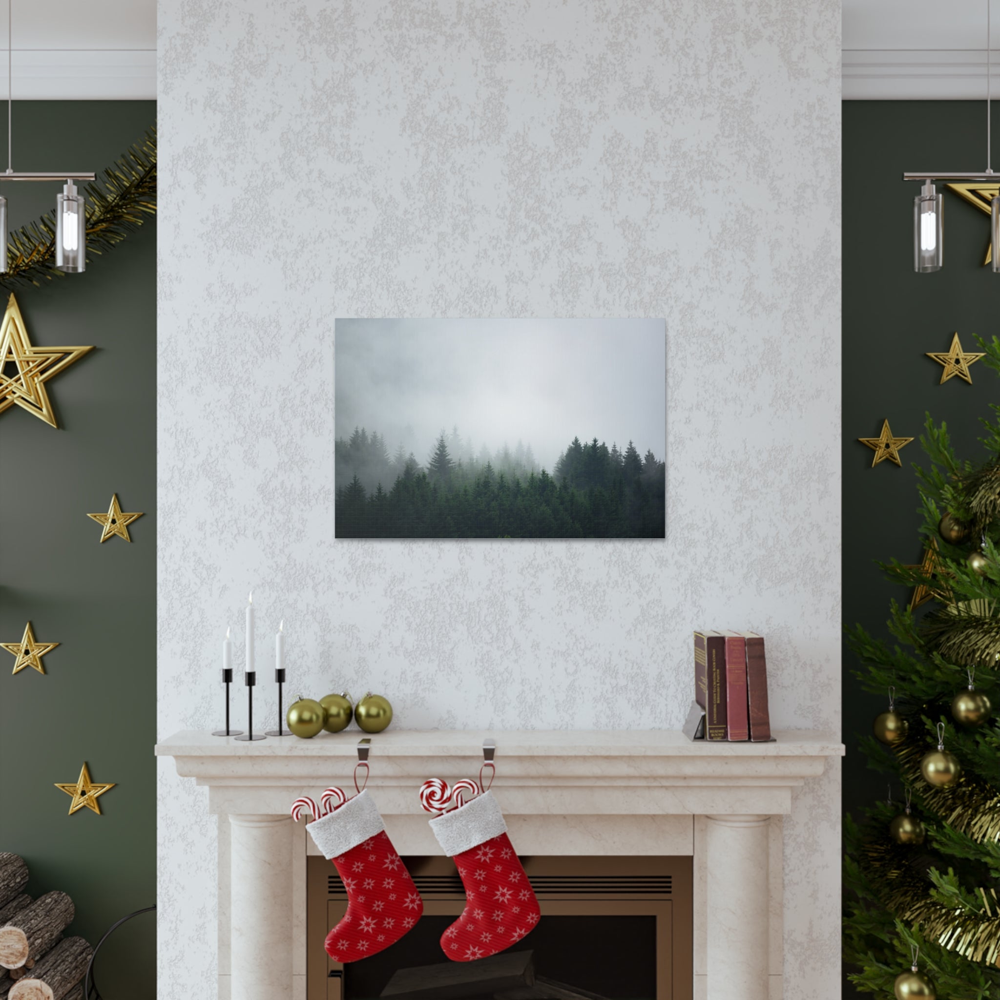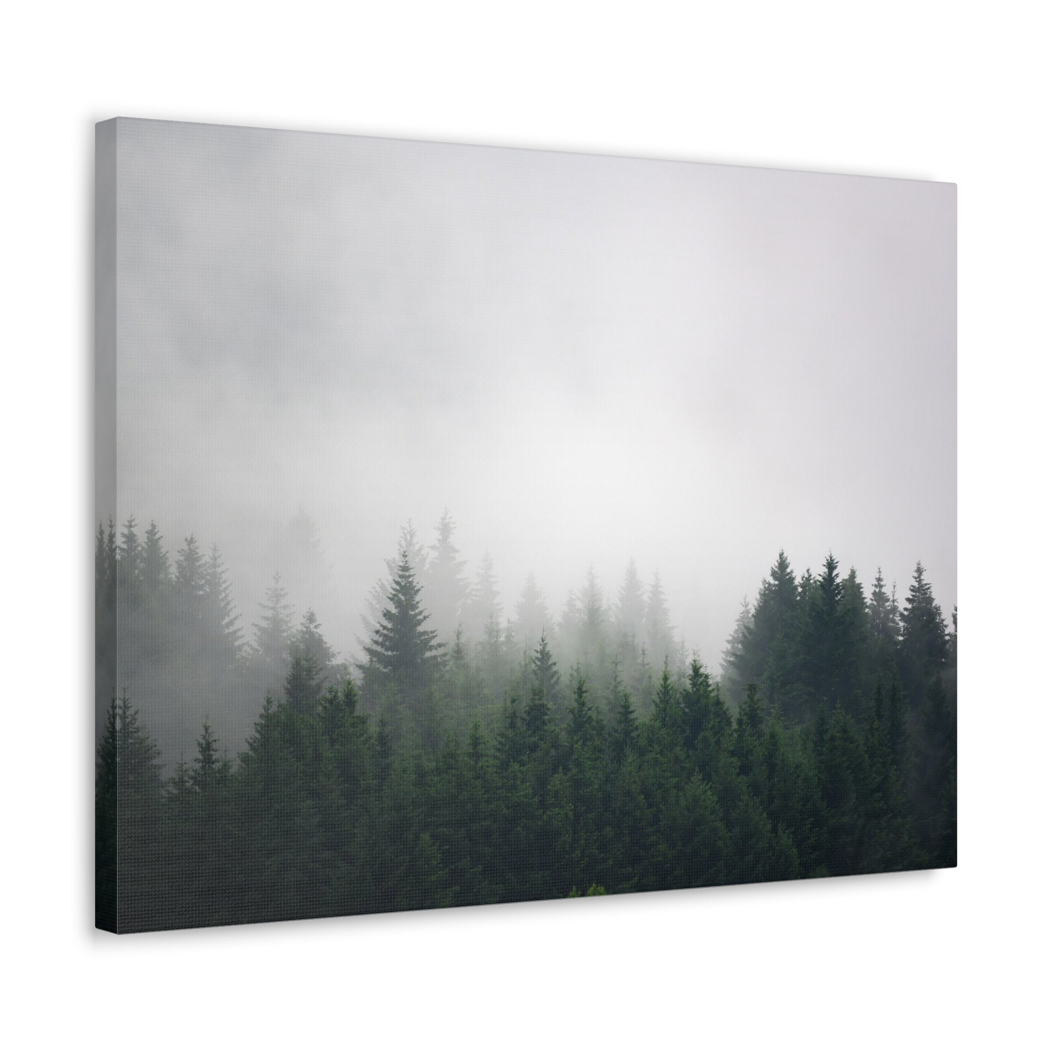 Foggy Dark Forest Nature Wilderness Photography Canvas Wall Art for Home Decor Ready-to-Hang