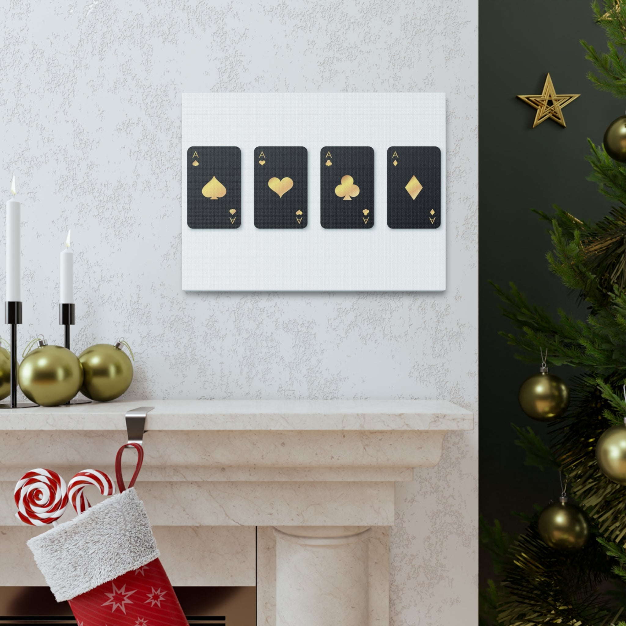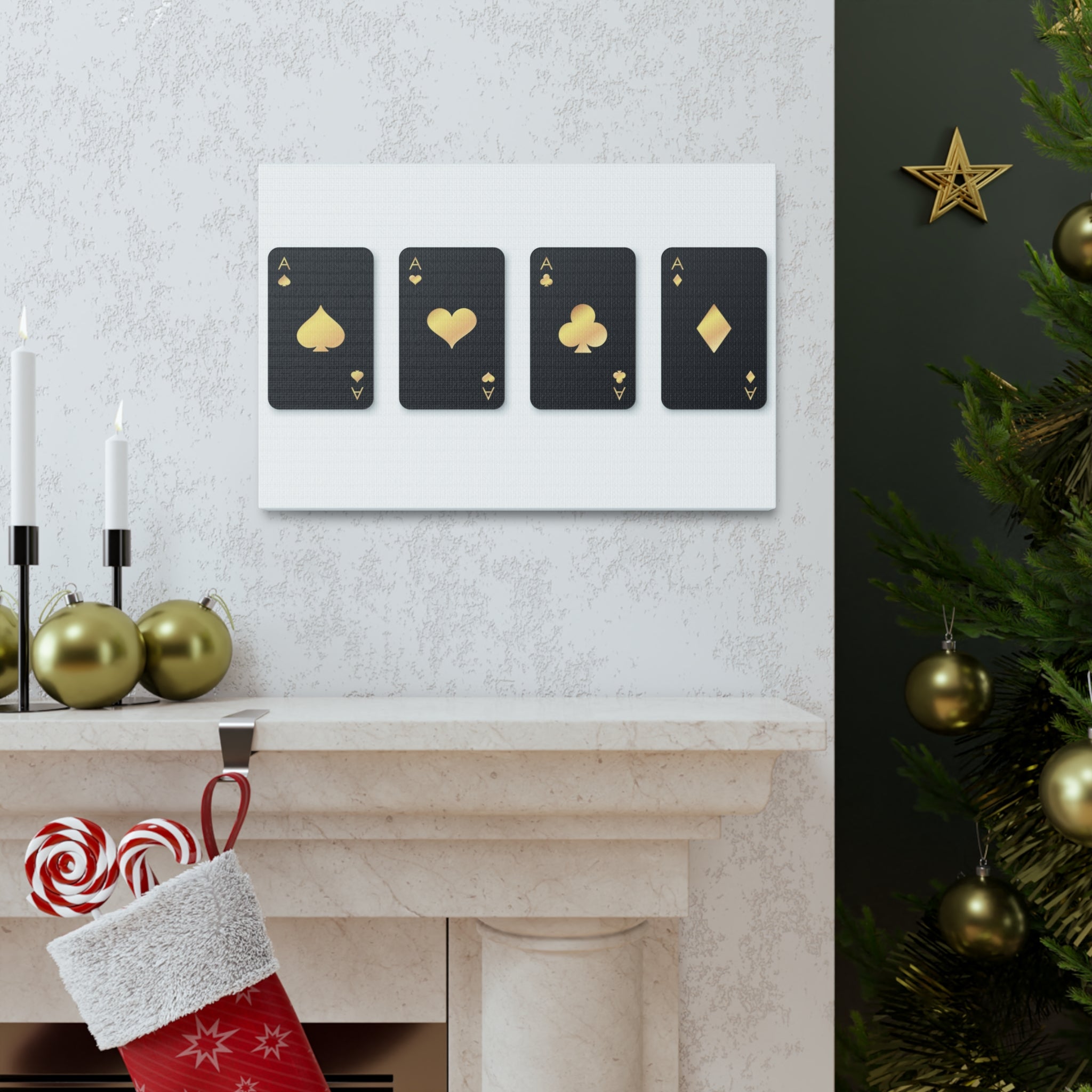 Four Black Aces Card Suits Playing Card Canvas Wall Art for Home Decor Ready-to-Hang