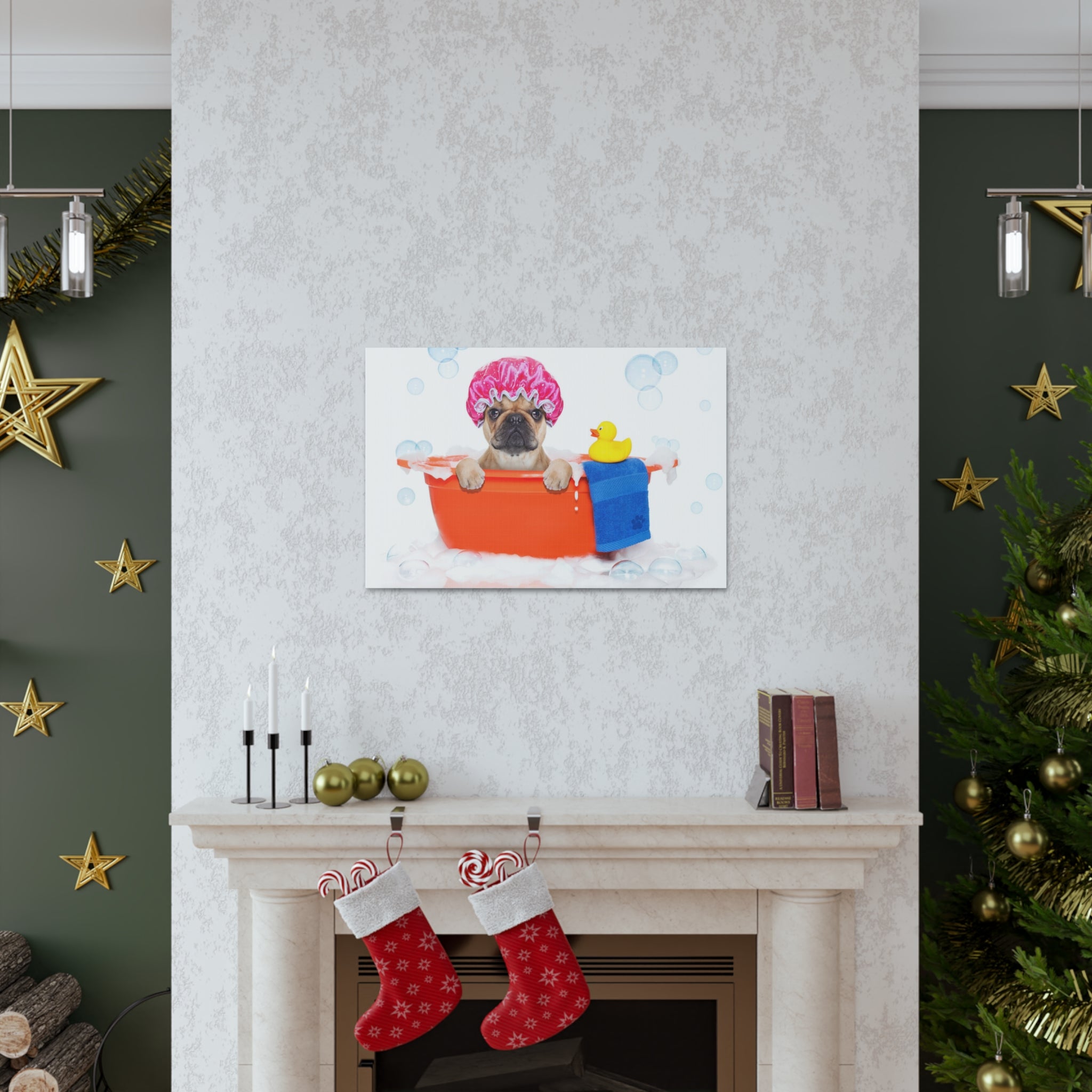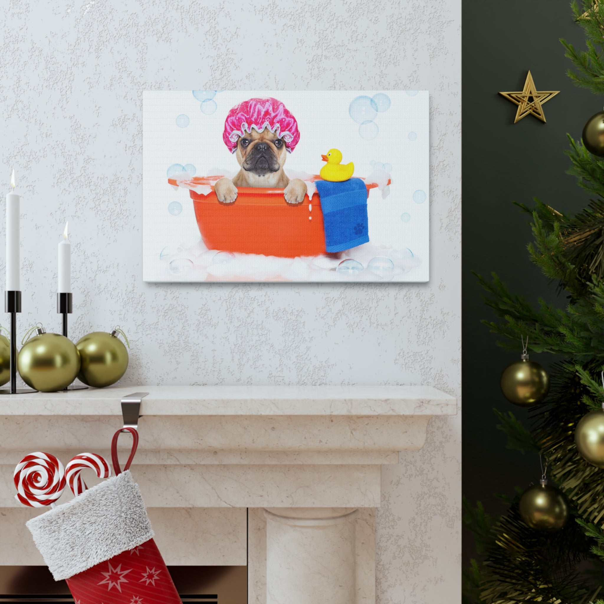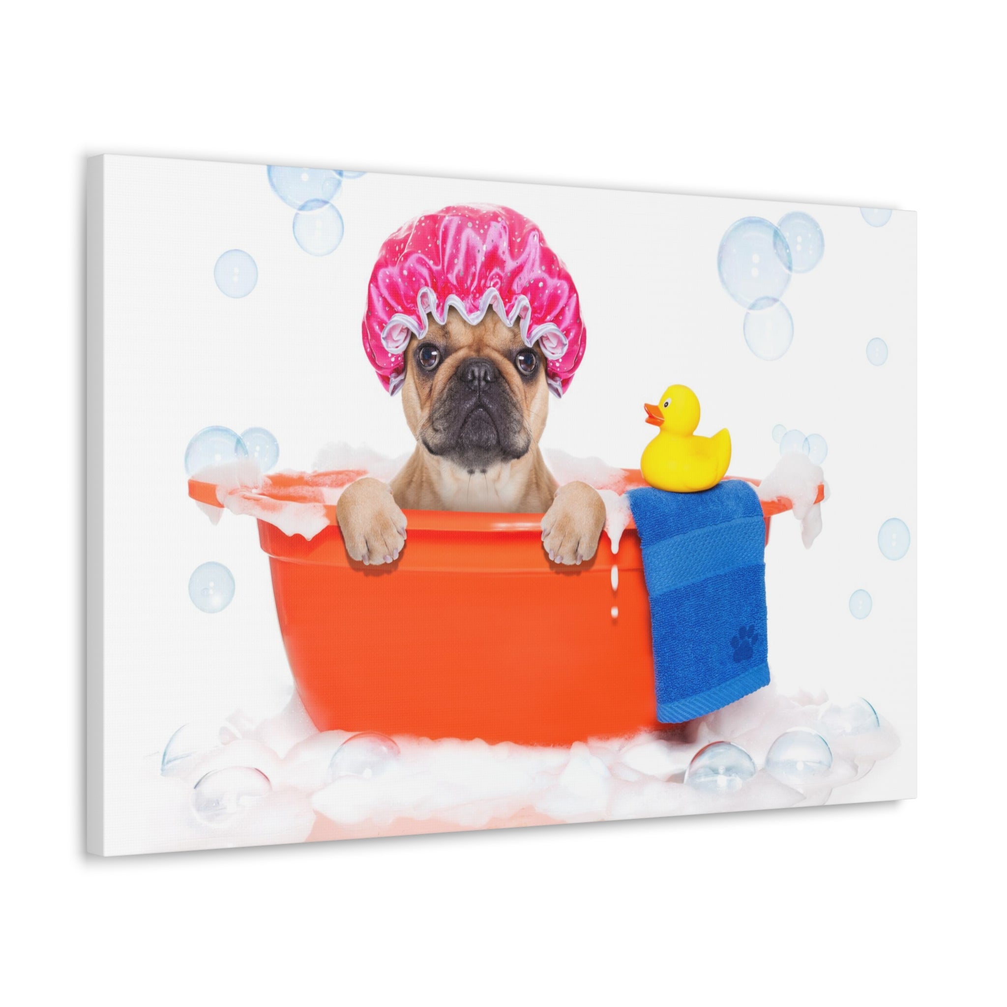 Funny French Bulldog Bathee Canvas Wall Art for Home Decor Ready-to-Hang