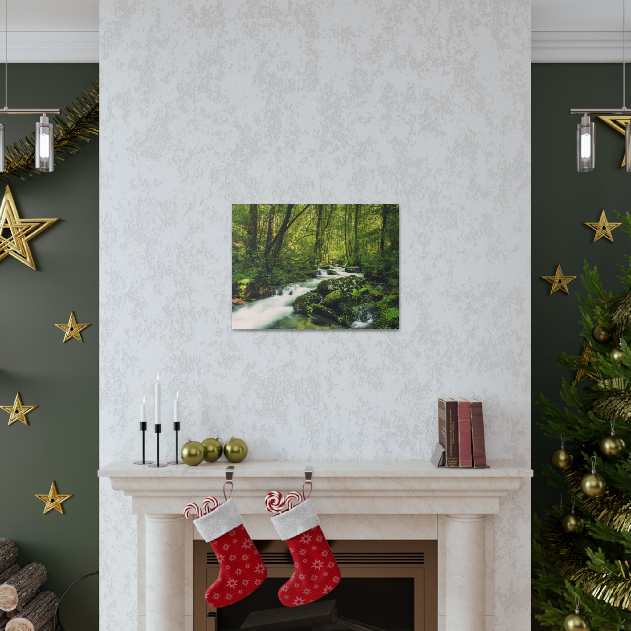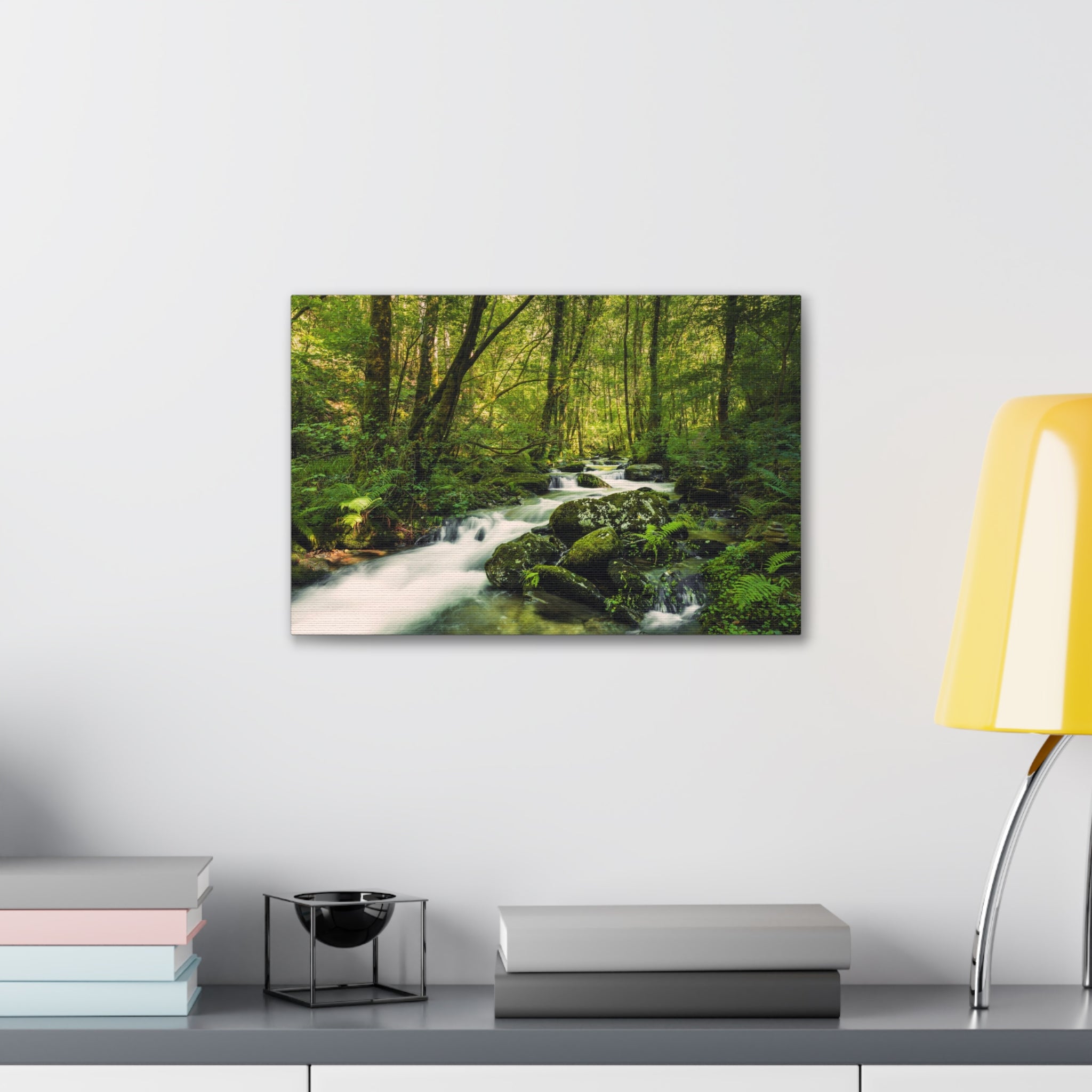 Green Forest River Nature Wilderness Photography Canvas Wall Art for Home Decor Ready-to-Hang