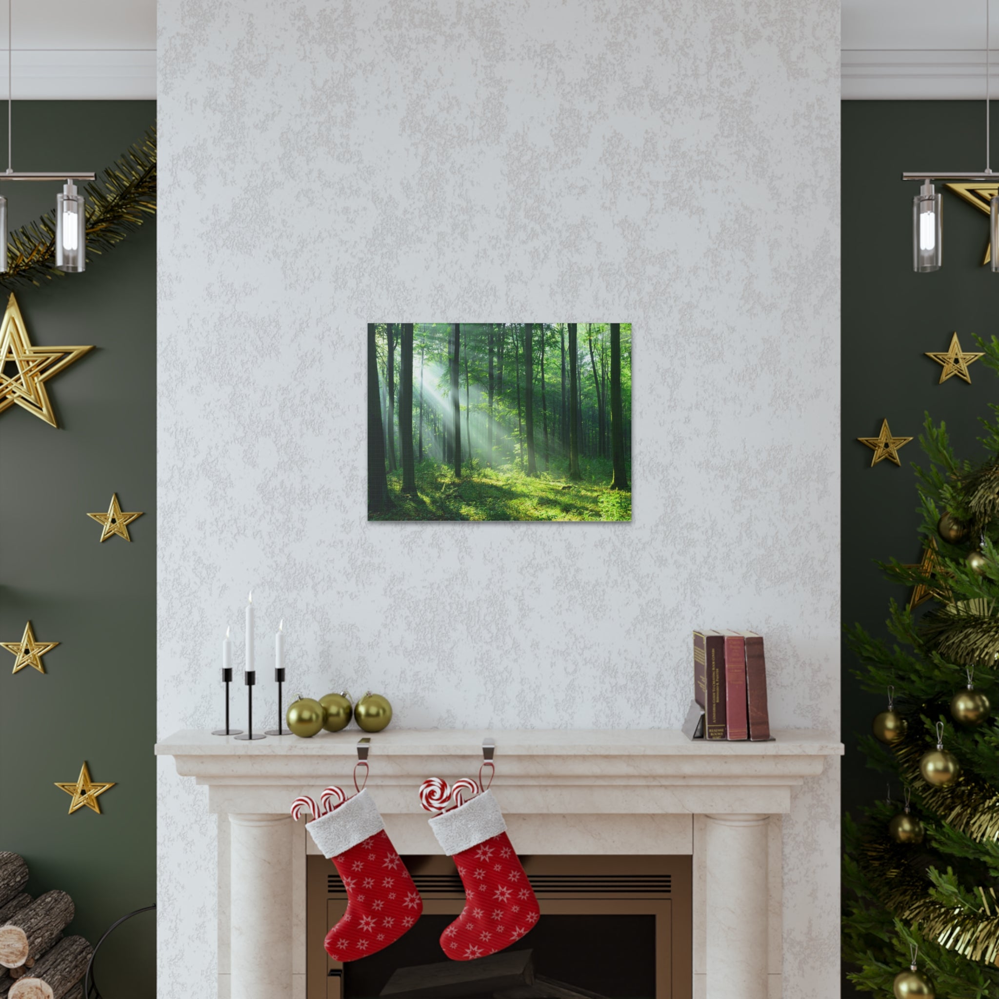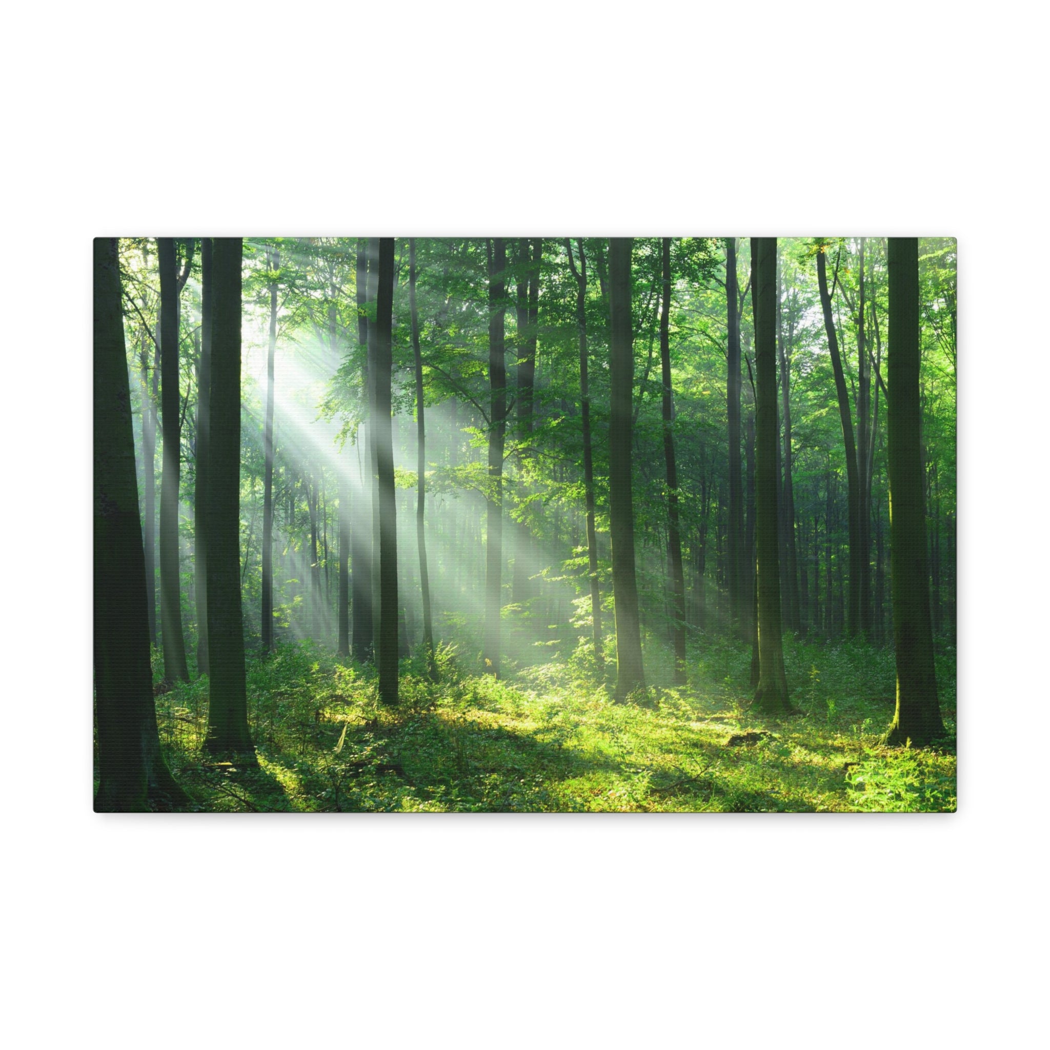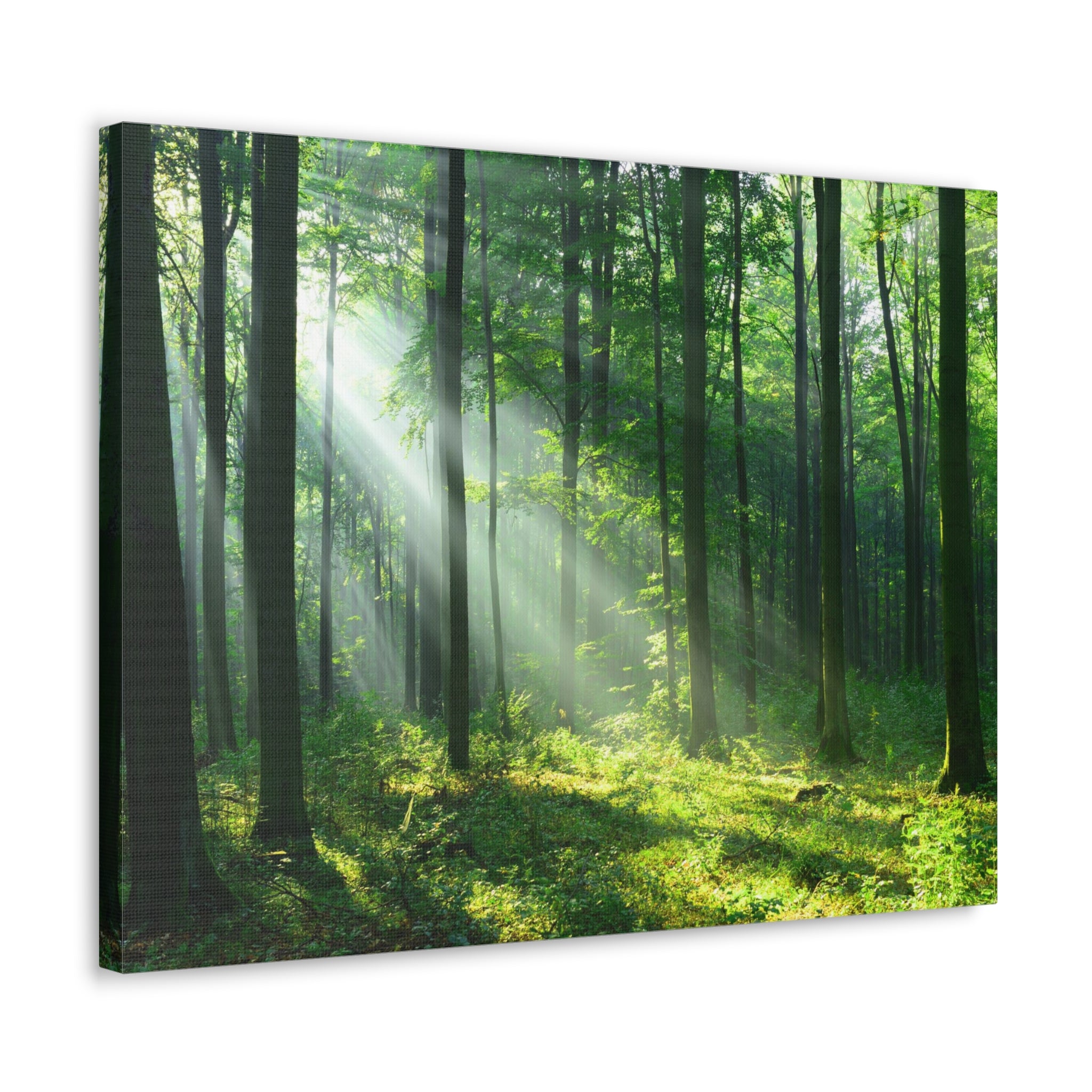 Green Forest Sunlight Nature Wilderness Photography Canvas Wall Art for Home Decor Ready-to-Hang