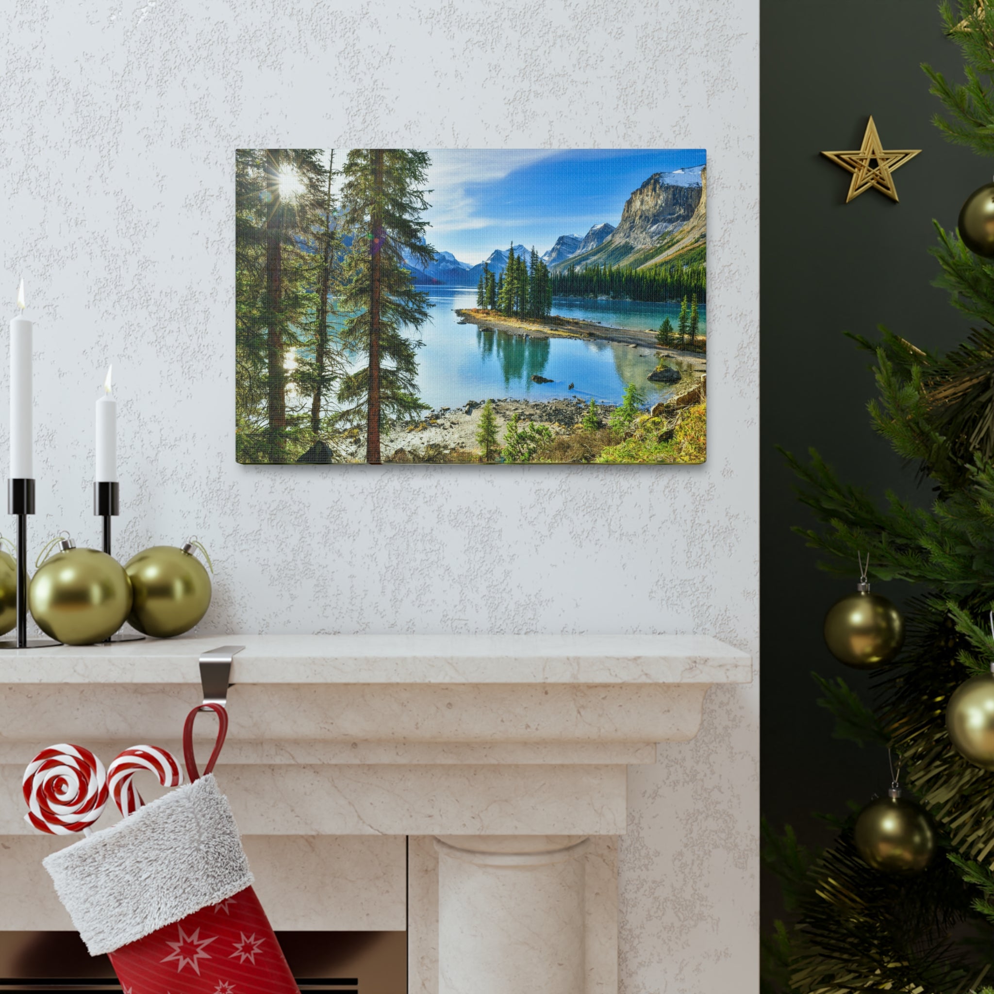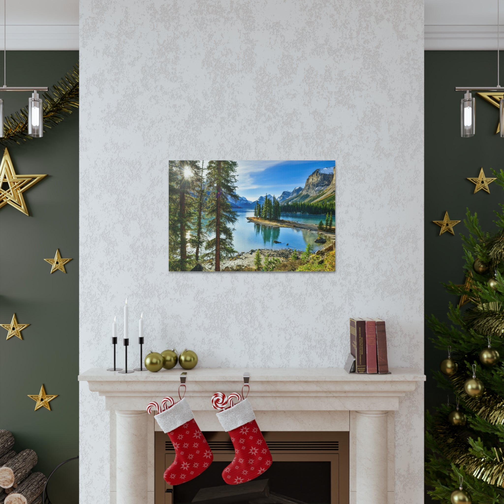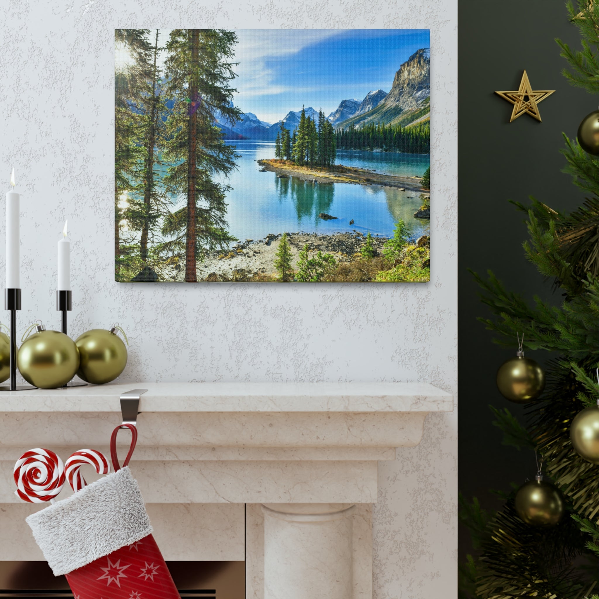 Mountain Lake Island Nature Wilderness Photography Canvas Wall Art for Home Decor Ready-to-Hang