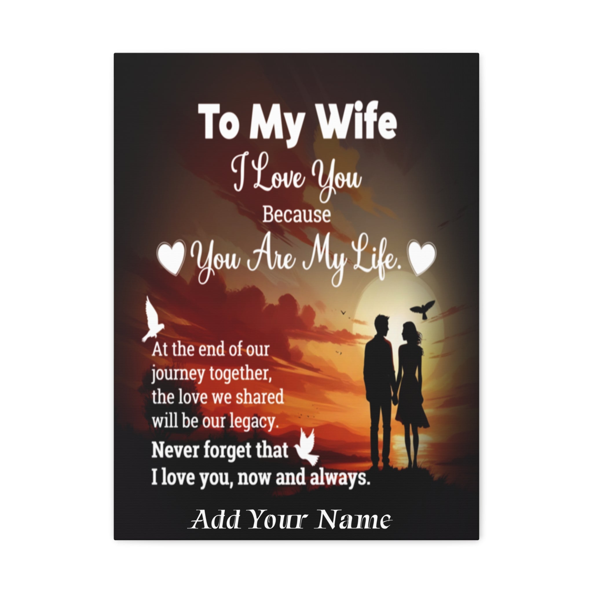 Celebrate the endless love and devotion you share with your wife through this personalized sunset romance canvas print. Featuring a stunning silhouette of a couple against a warm sunset, this artwork is a heartfelt tribute to the journey of love and the legacy you build together. Whether for an anniversary, birthday, Valentine’s Day, or just because, this meaningful and timeless piece is a daily reminder of your unwavering commitment.