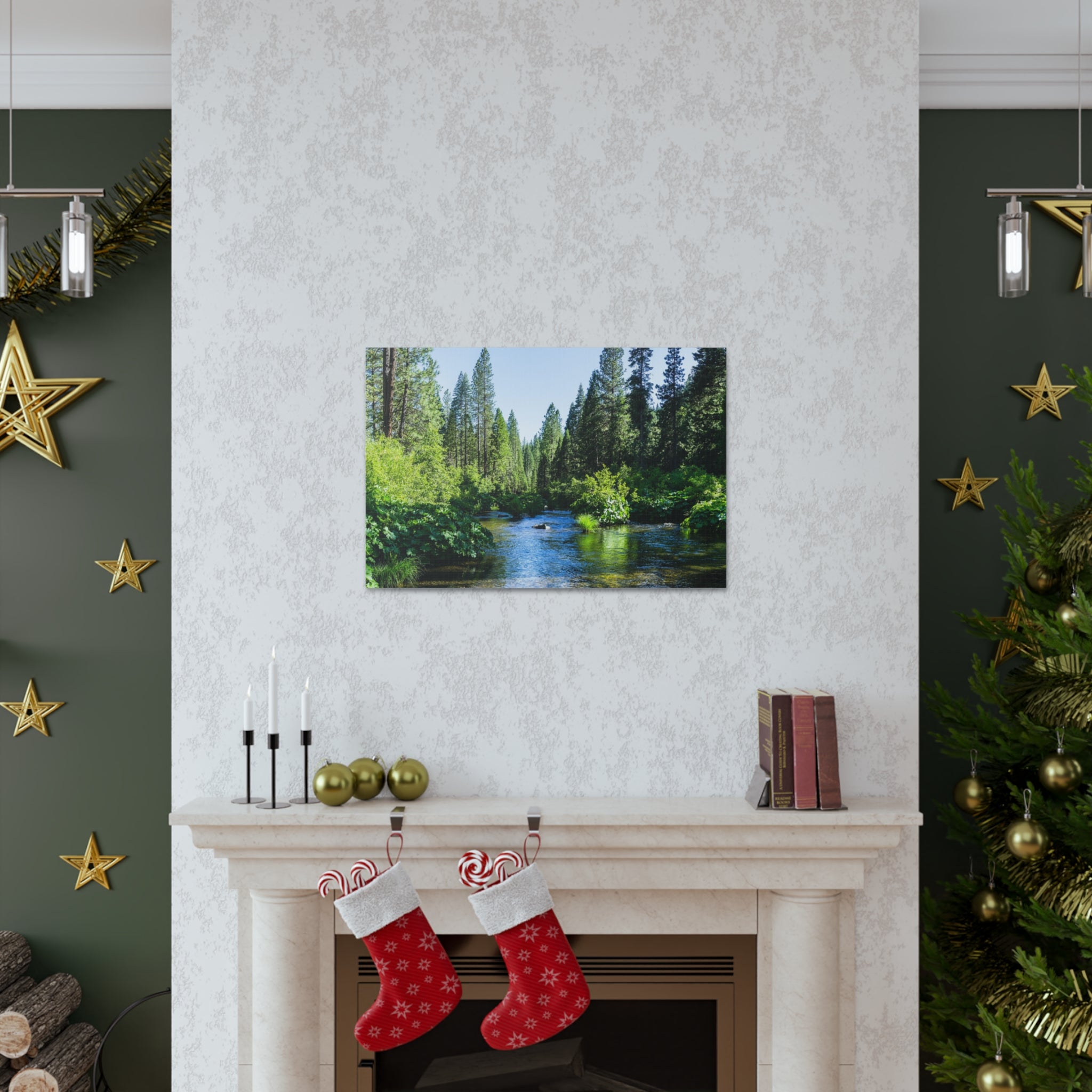 River Through The Green Forest Nature Wilderness Photography Canvas Wall Art for Home Decor Ready-to-Hang