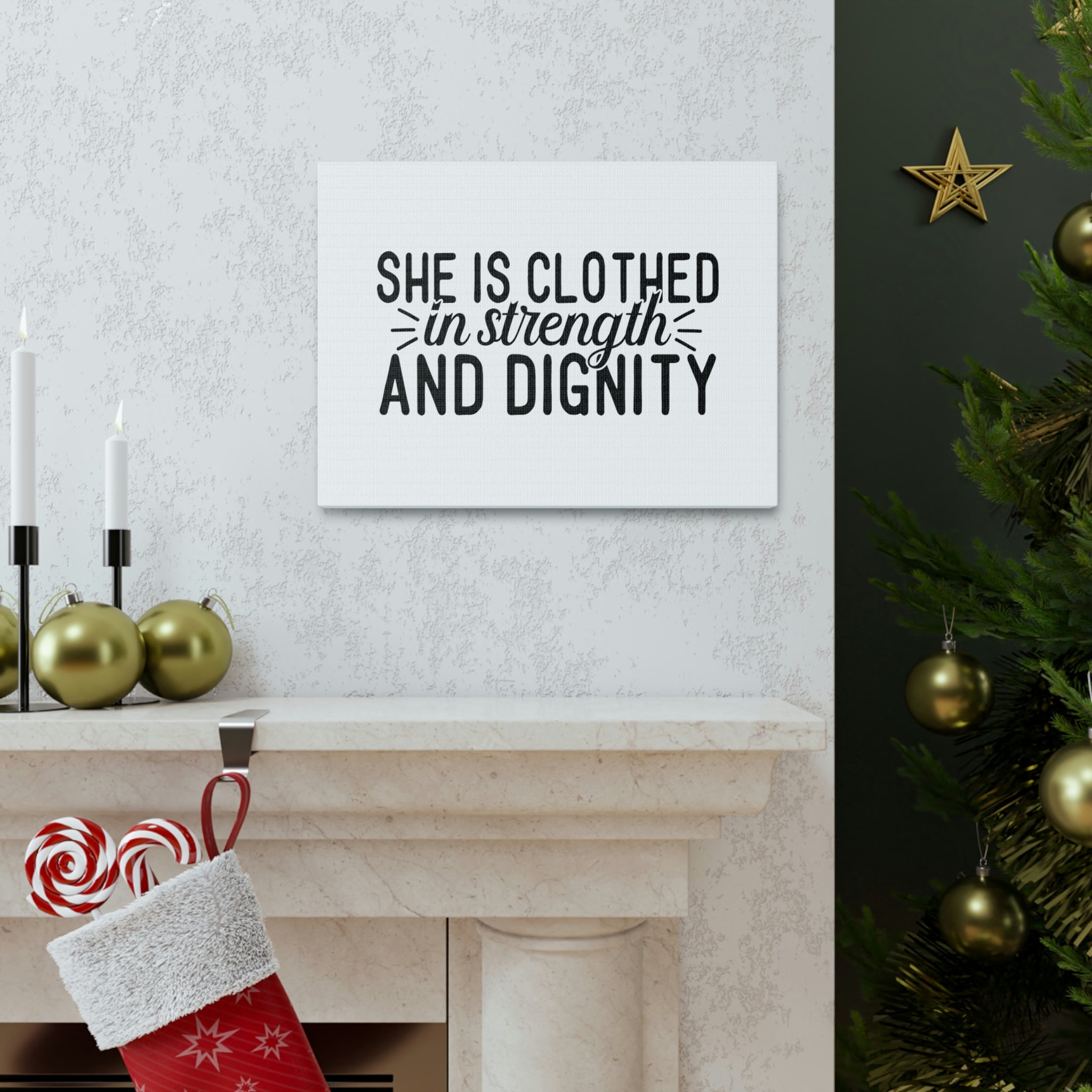 Scripture Walls Proverbs 31:25 Clothed In Strength And Dignity White Bible Verse Canvas Christian Wall Art Ready to Hang Unframed