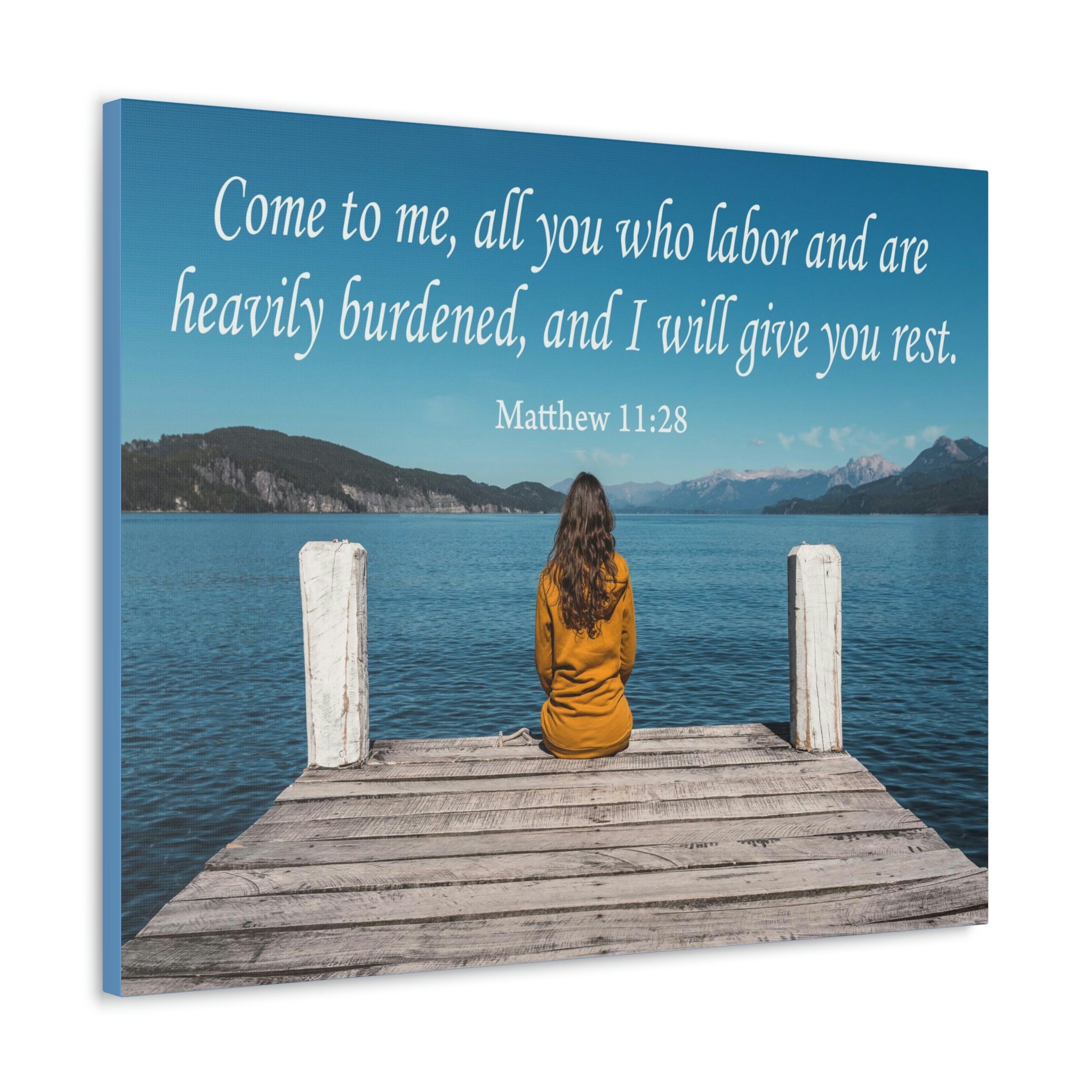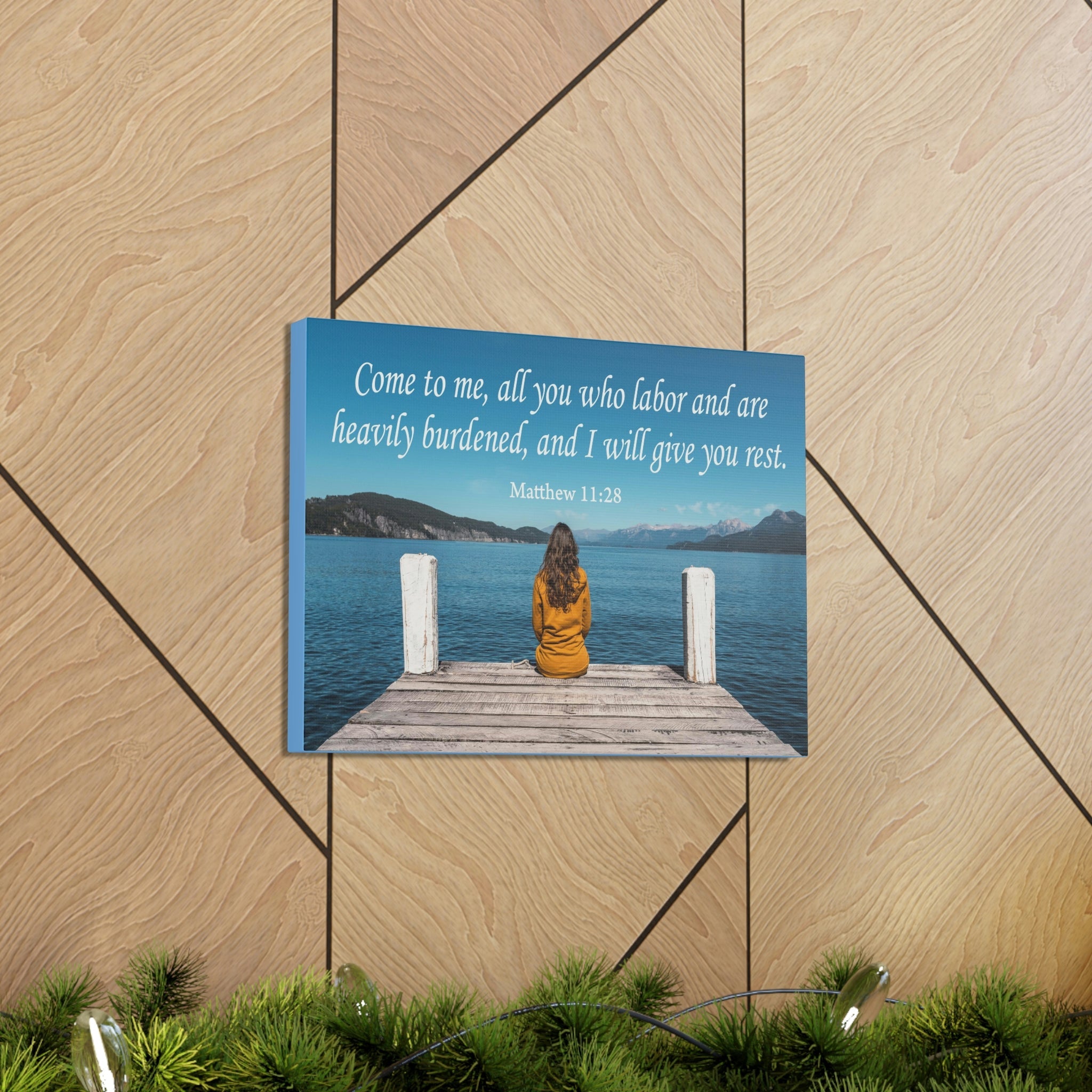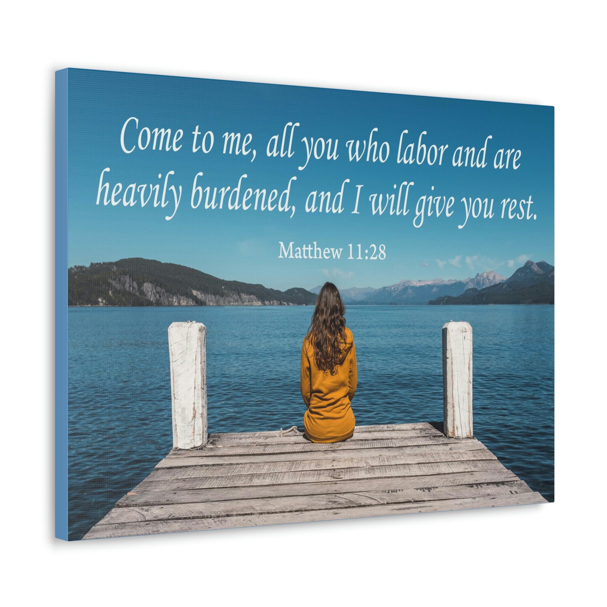 Scripture Walls Come To Me Matthew 11:28 Bible Verse Canvas Christian Wall Art Ready to Hang Unframed