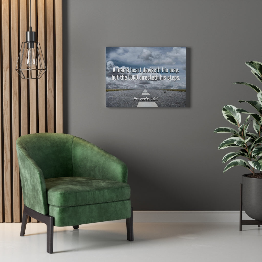 Scripture Walls Proverbs 16:9 Directeth His Steps Bible Verse Canvas Christian Wall Art Ready to Hang Unframed