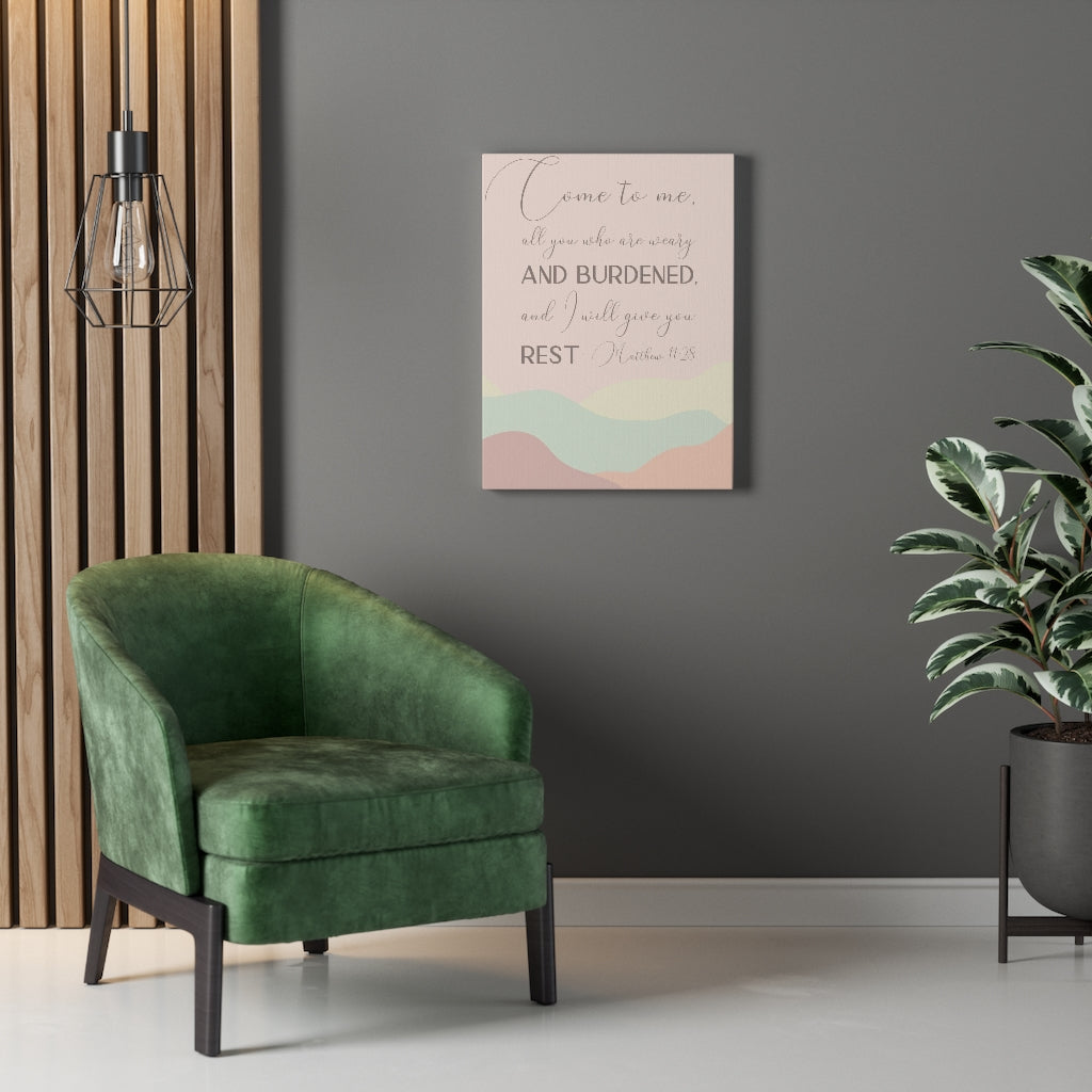 Scripture Walls Come To Me Matthew 11:28 Pink Bible Verse Canvas Christian Wall Art Ready to Hang Unframed