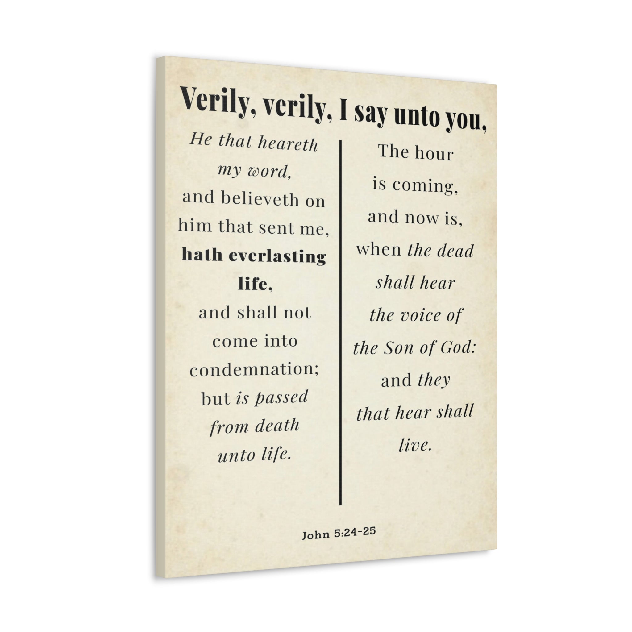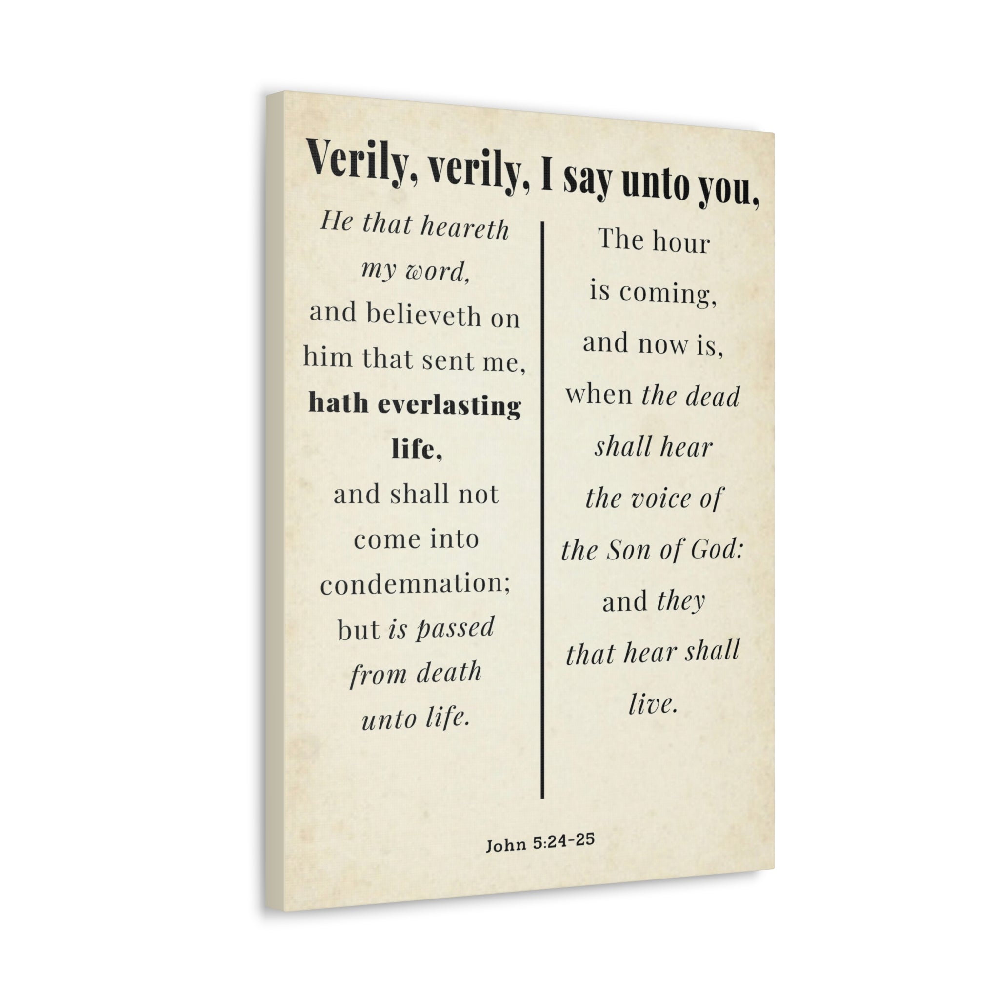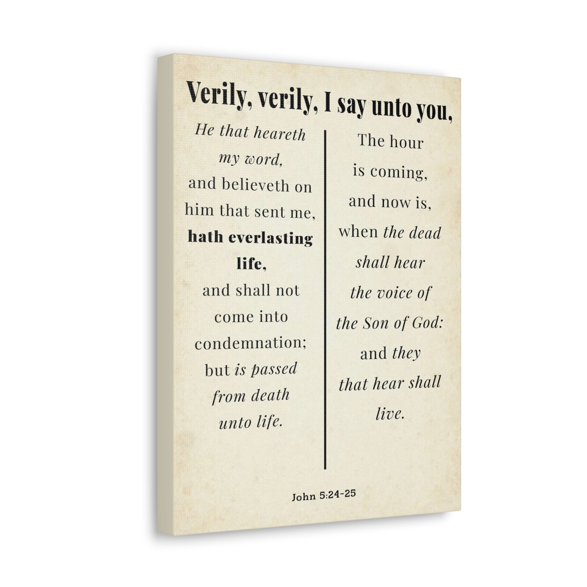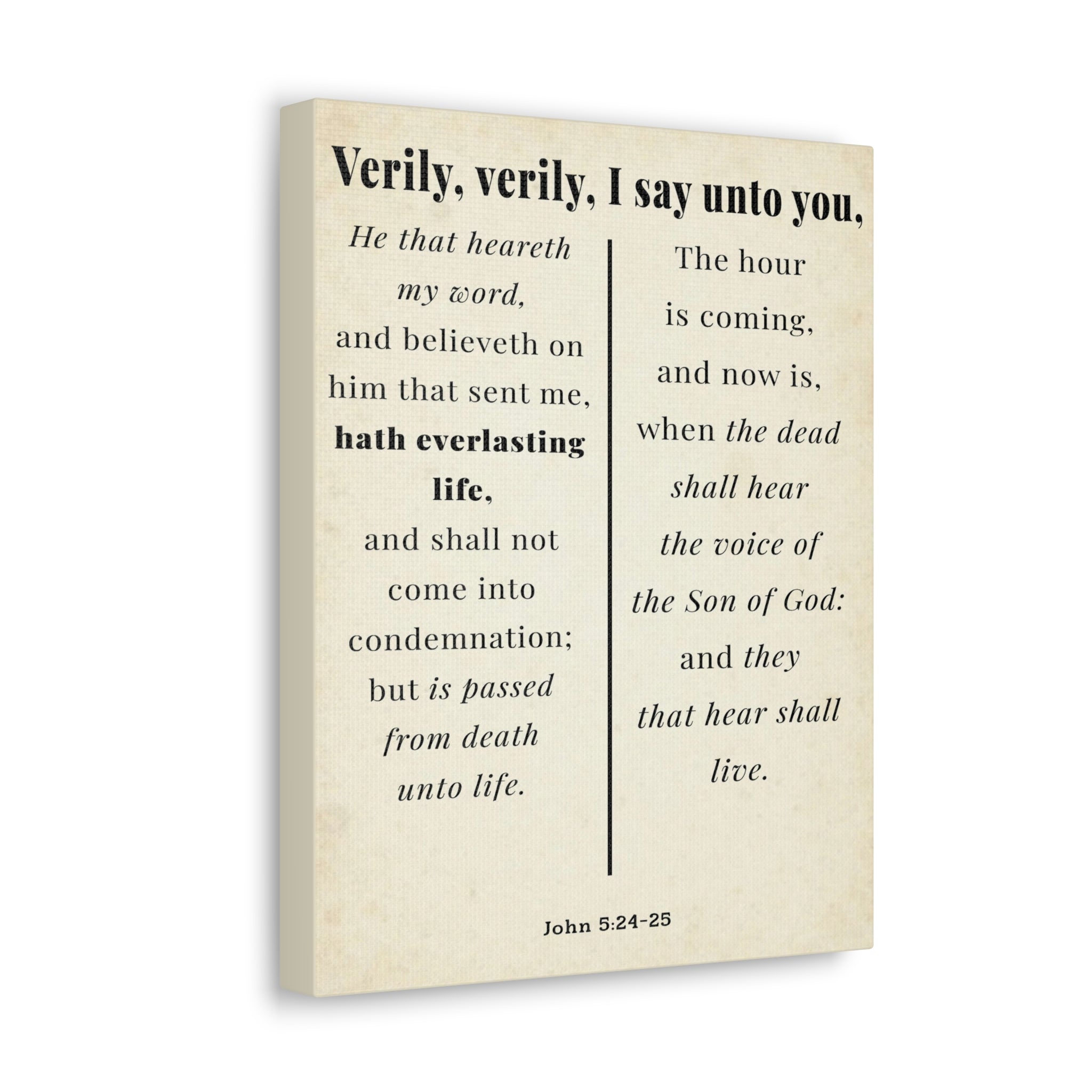 Scripture Walls John 5:24-25 Regeneration and Eternal Life Bible Verse Canvas Christian Wall Art Ready to Hang Unframed
