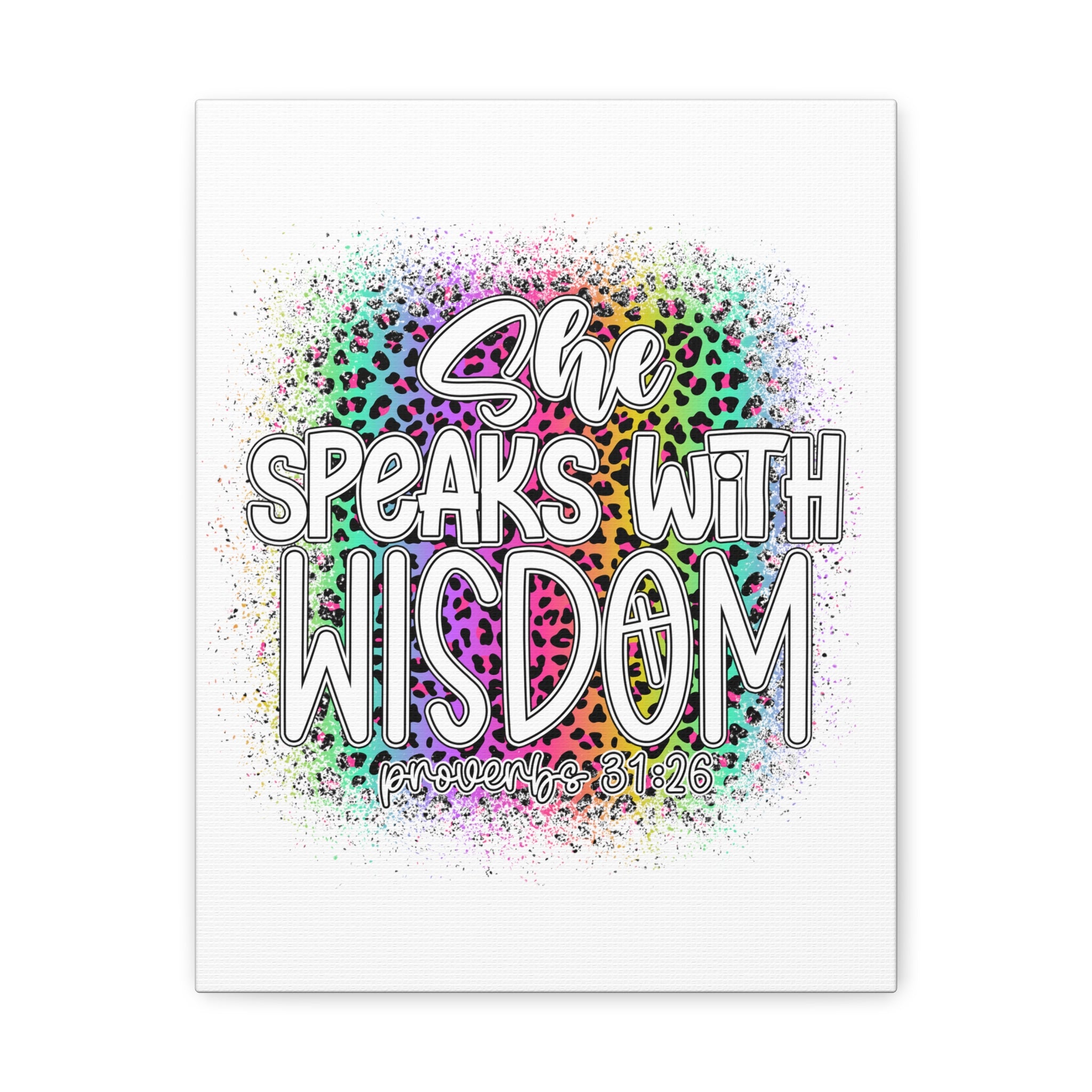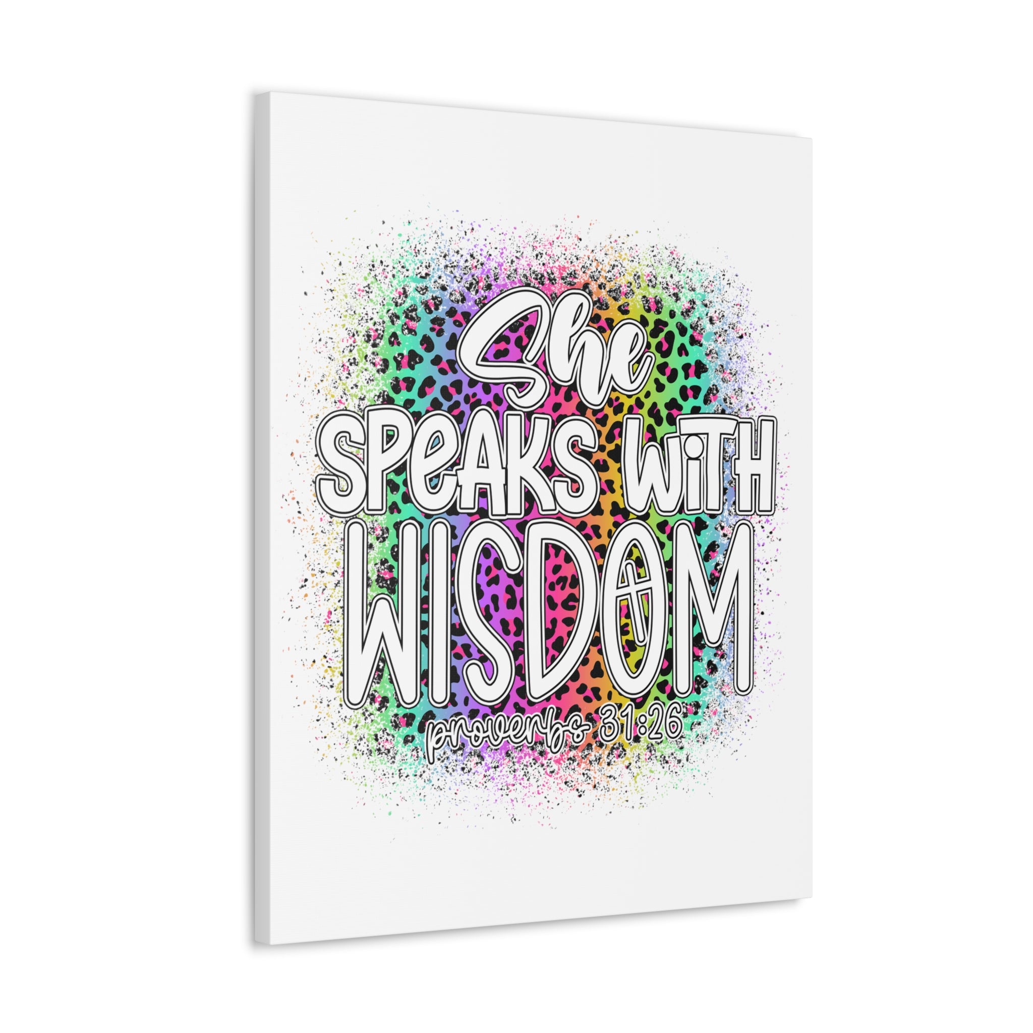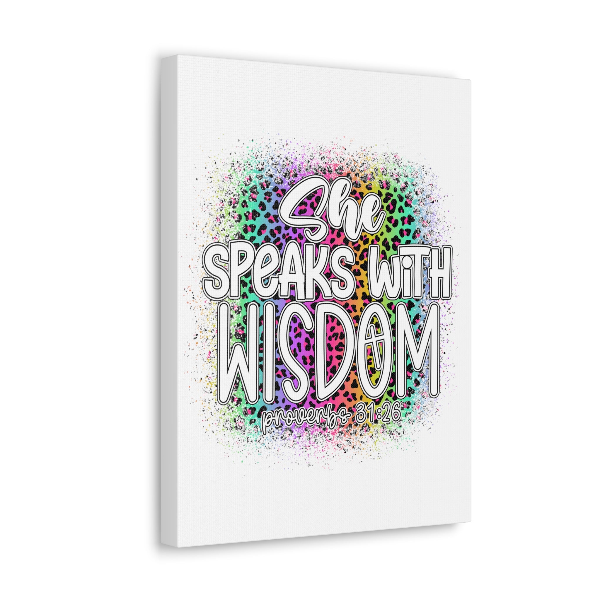 Scripture Walls Proverbs 31:26 She Speaks With Wisdom Colorful Bible Verse Canvas Christian Wall Art Ready to Hang Unframed