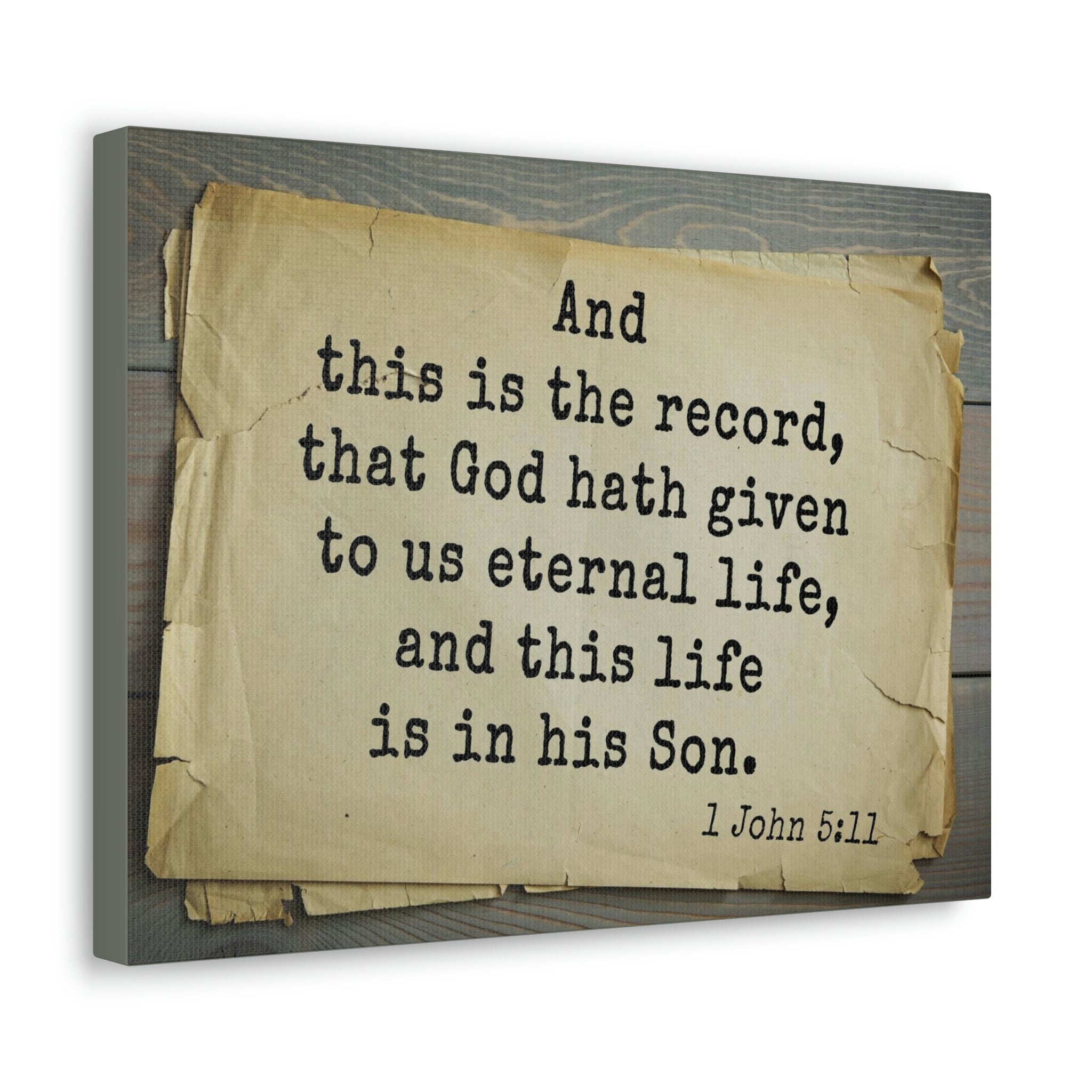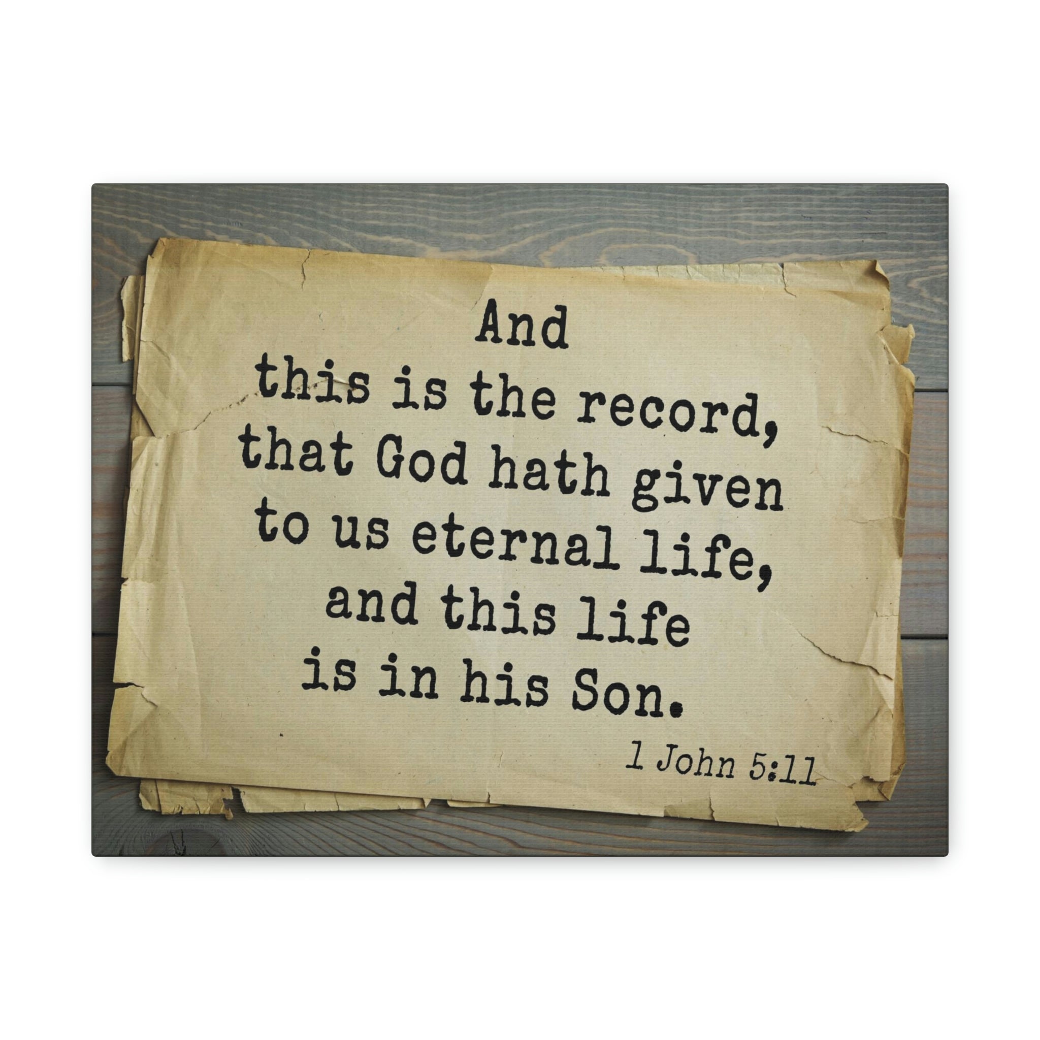 Scripture Walls 1 John 5:11 That God Hath Given Bible Verse Canvas Christian Wall Art Bible Verse Print Ready To Hang Unframed