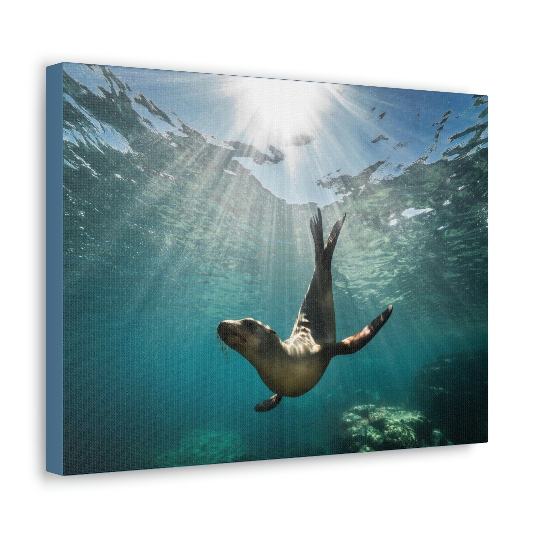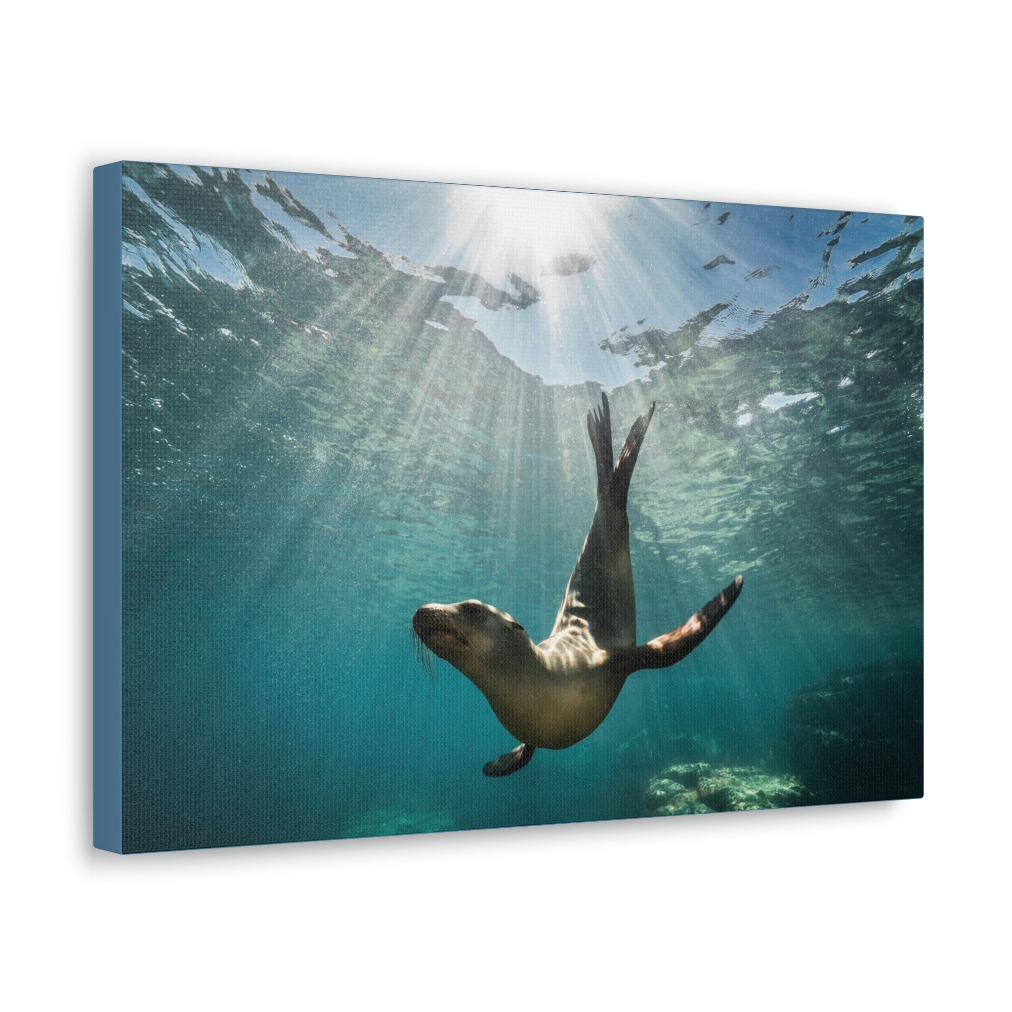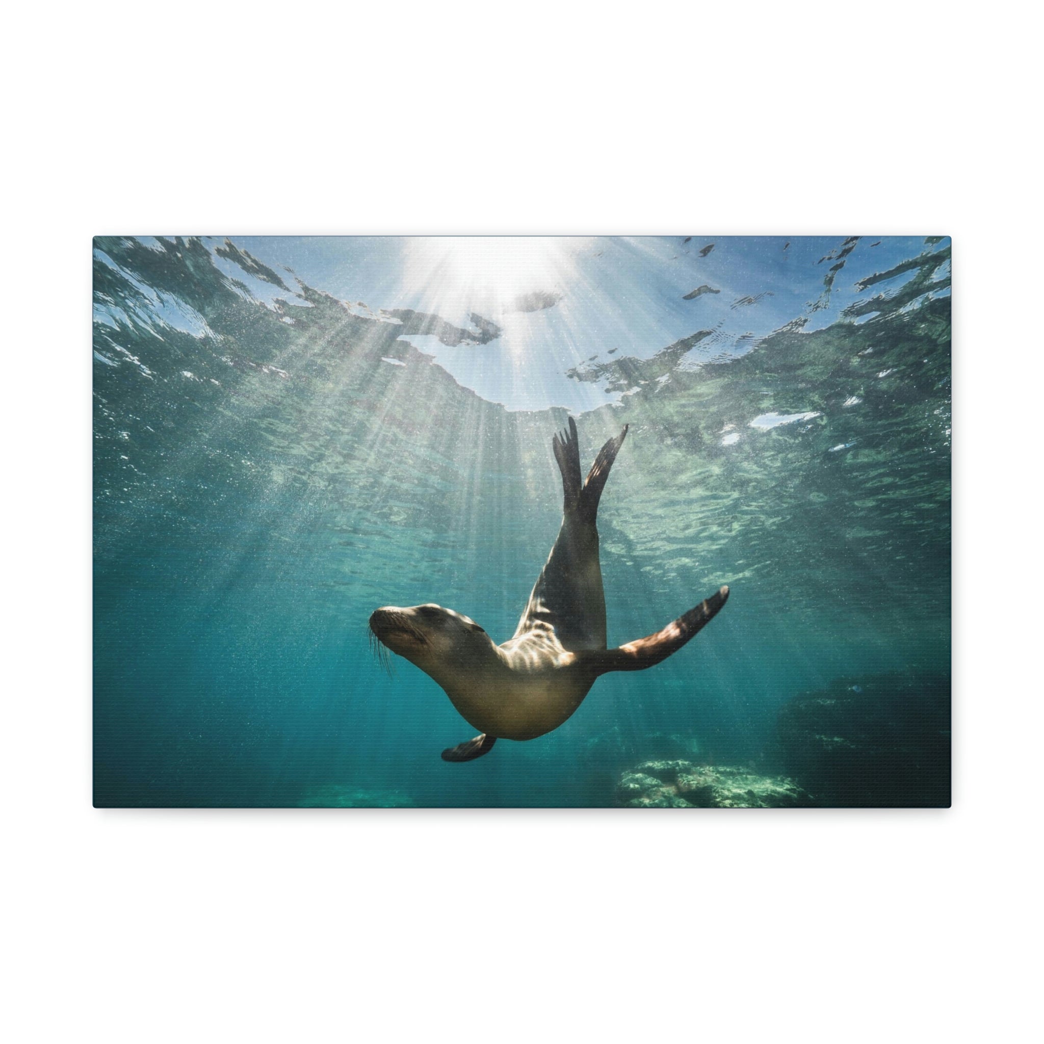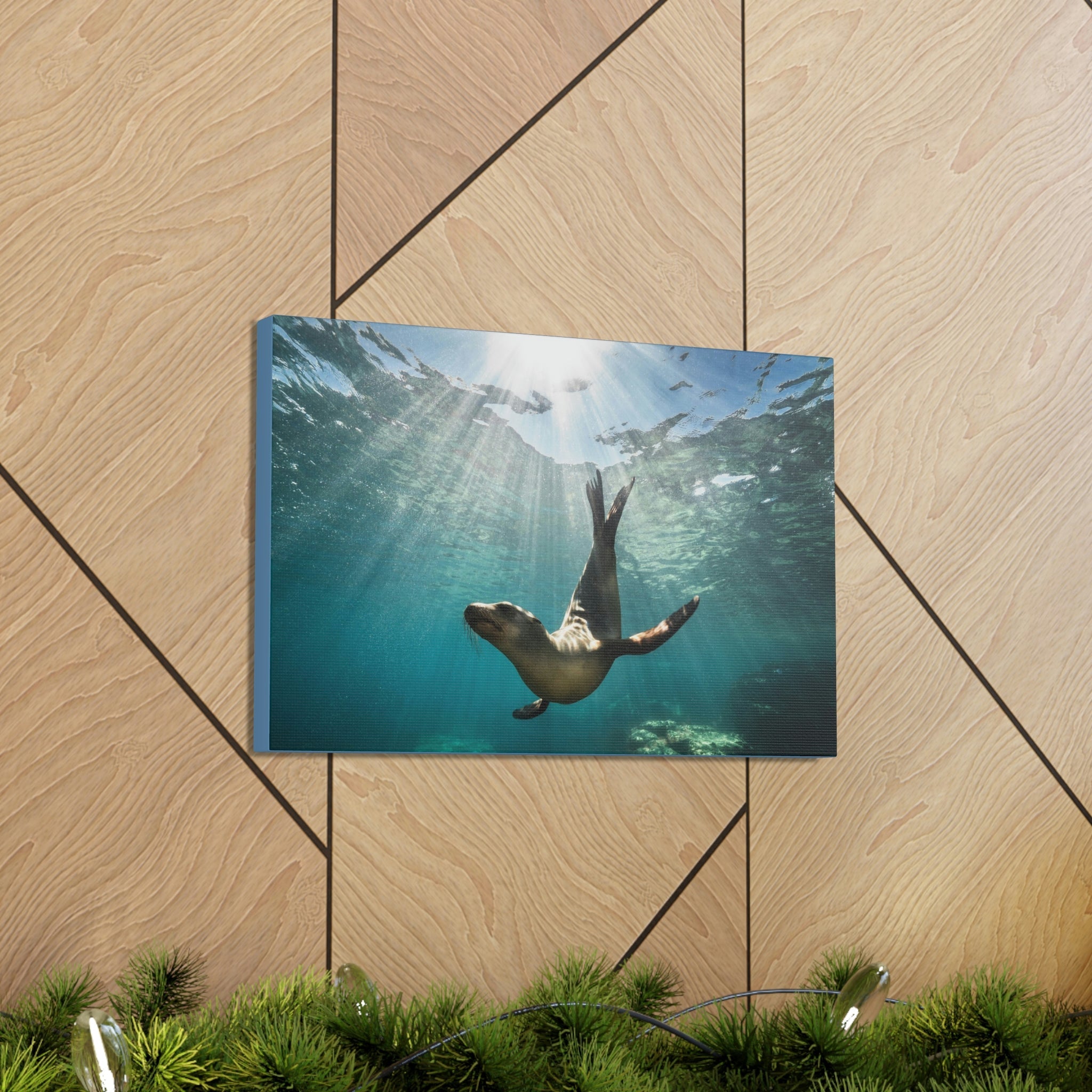 Seal Hunting Seal on Hunt Print Animal Wall Art Wildlife Canvas Prints Wall Art Ready to Hang Unframed