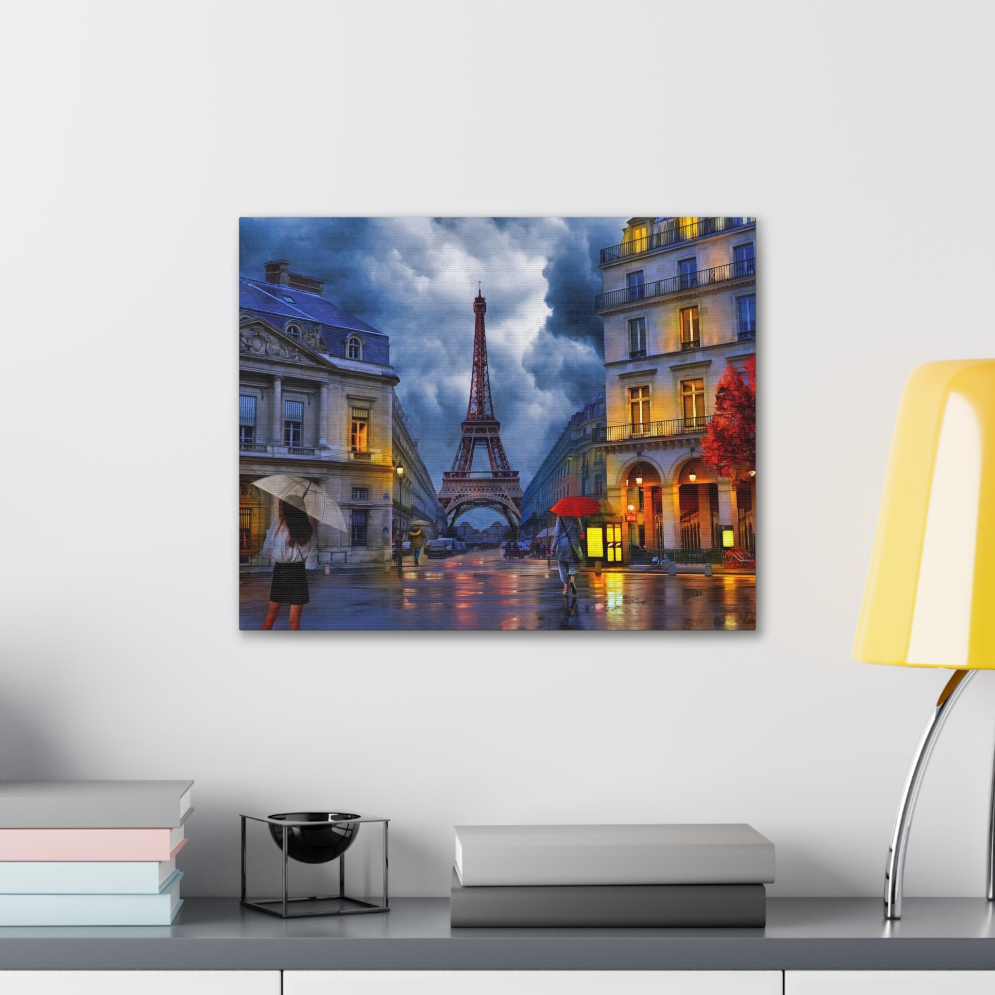 Paris Street View Red Umbrella Eiffel Tower France Canvas Artwork Breathtaking French City for Home Decor Ready to Hang