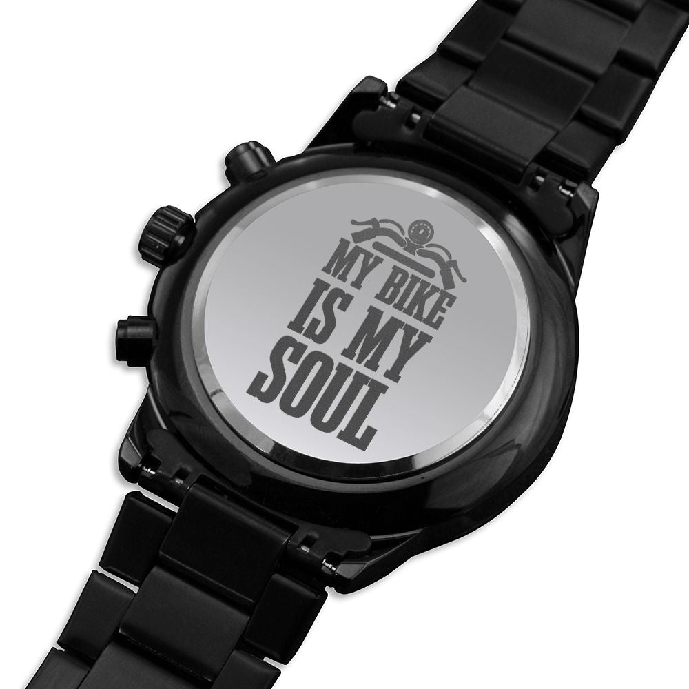 My Bike Engraved Motorcycle Rider Men's Watch Multifunction Stainless Steel W Copper Dial
