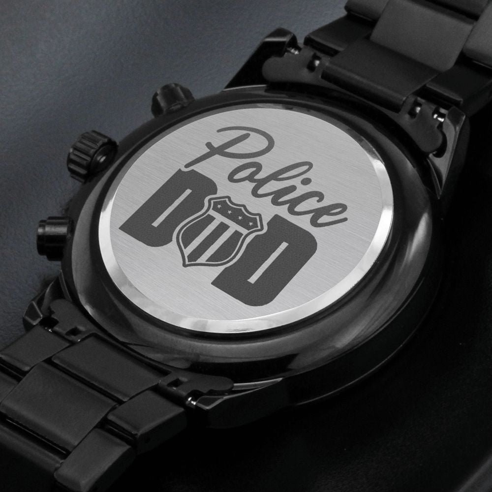 Police Dad Engraved Multifunction Policeman Men's Watch Stainless Steel W Copper Dial