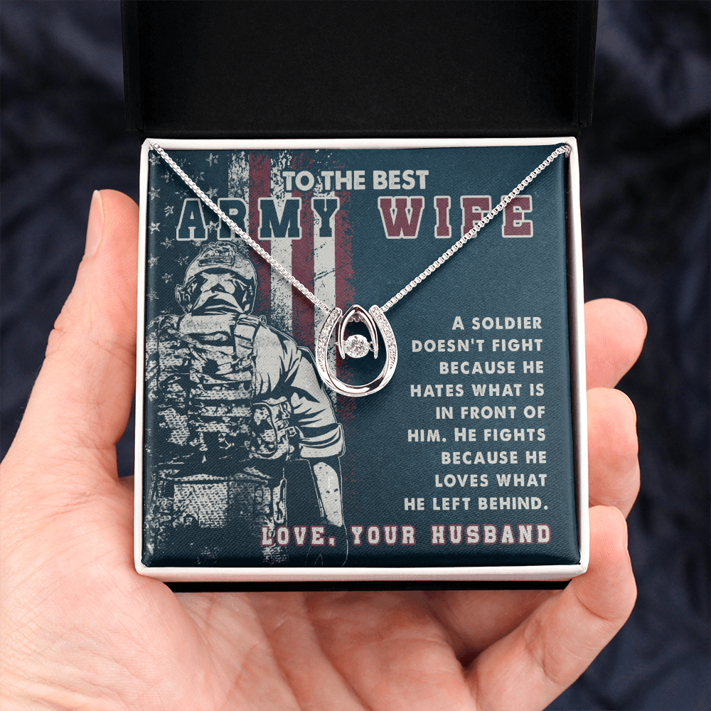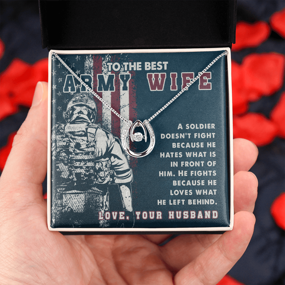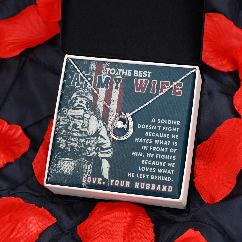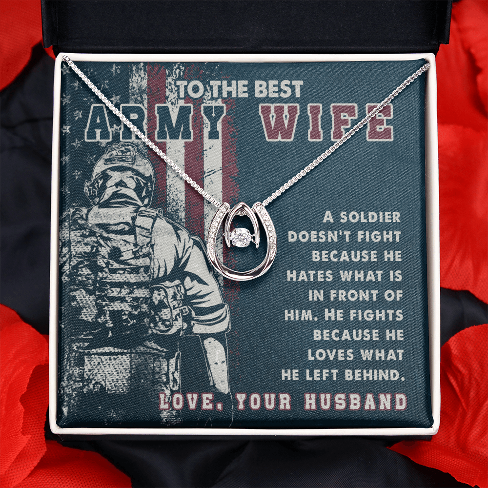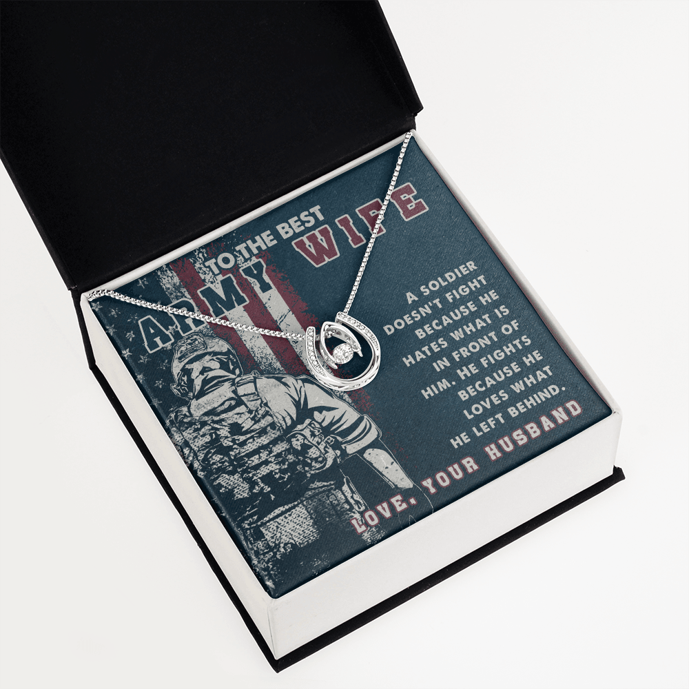 To My Army Wife Left Behind Lucky Horseshoe Necklace Message Card 14k w CZ Crystals