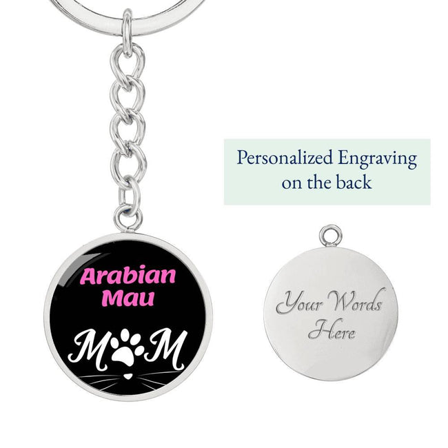 Arabian Mau Cat Mom Keychain Stainless Steel or 18k Gold Circle Pendant