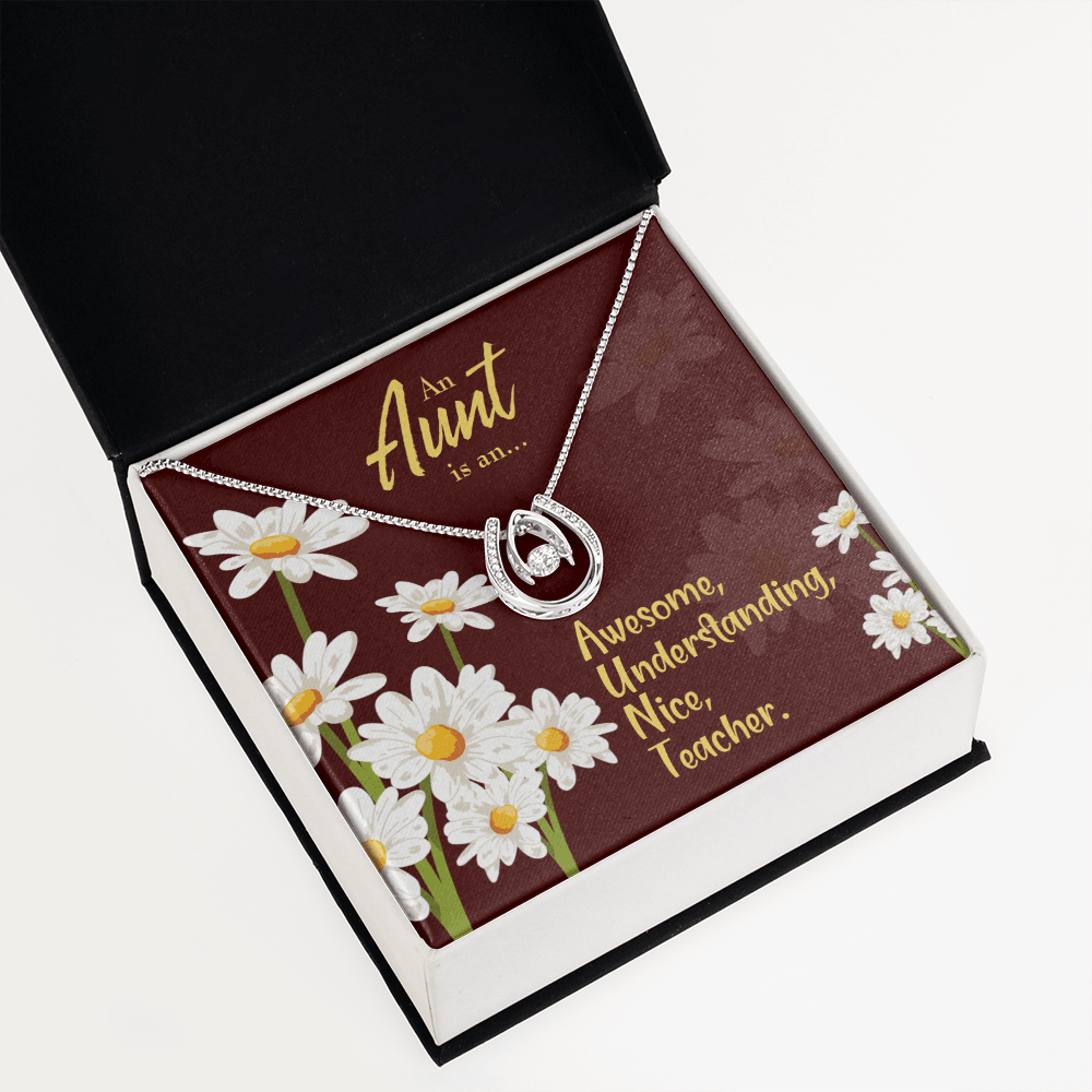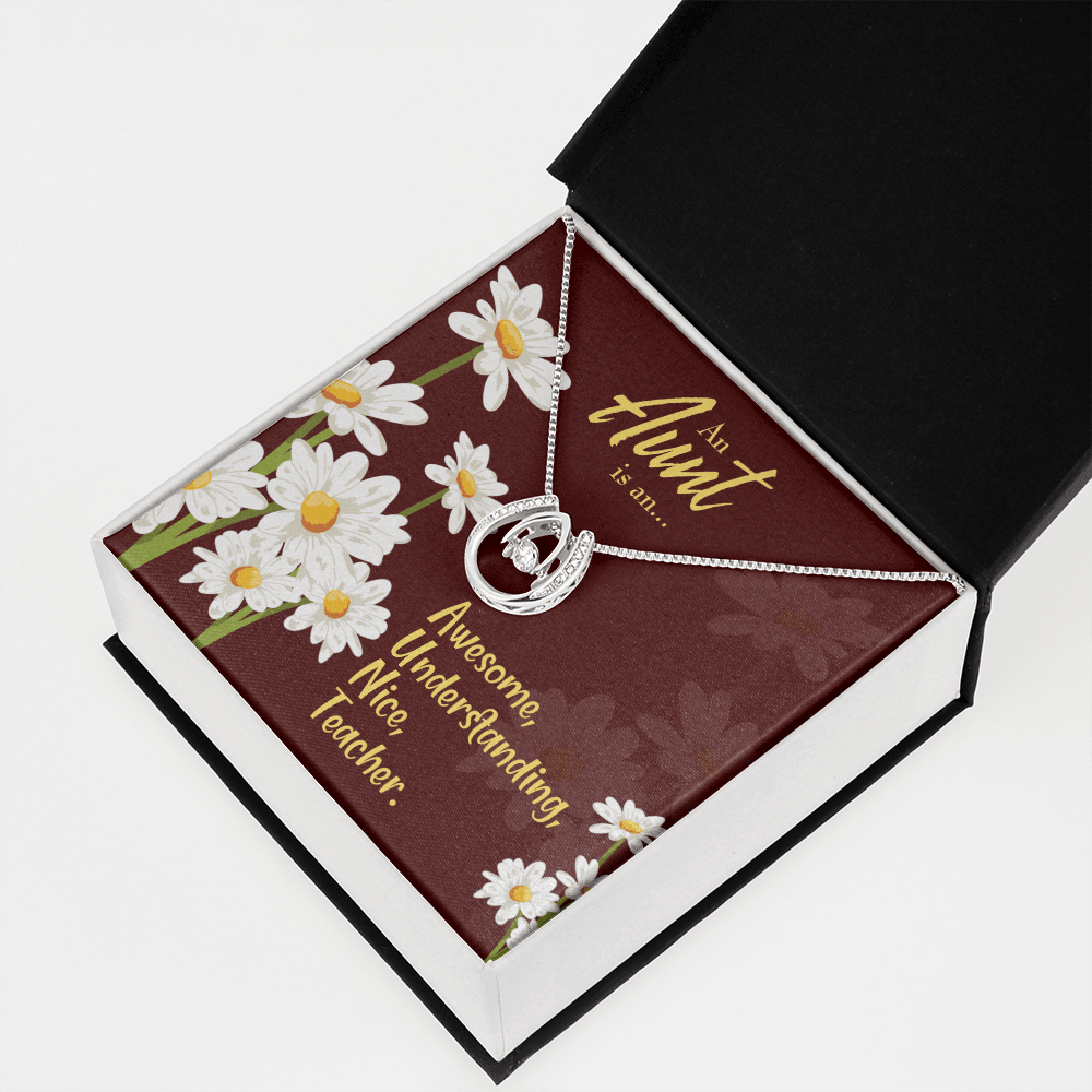 To My Aunt AUNT Definition Lucky Horseshoe Necklace Message Card 14k w CZ Crystals