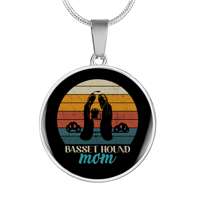 Basset Hound Mom Circle Necklace Stainless Steel or 18k Gold 18-22"