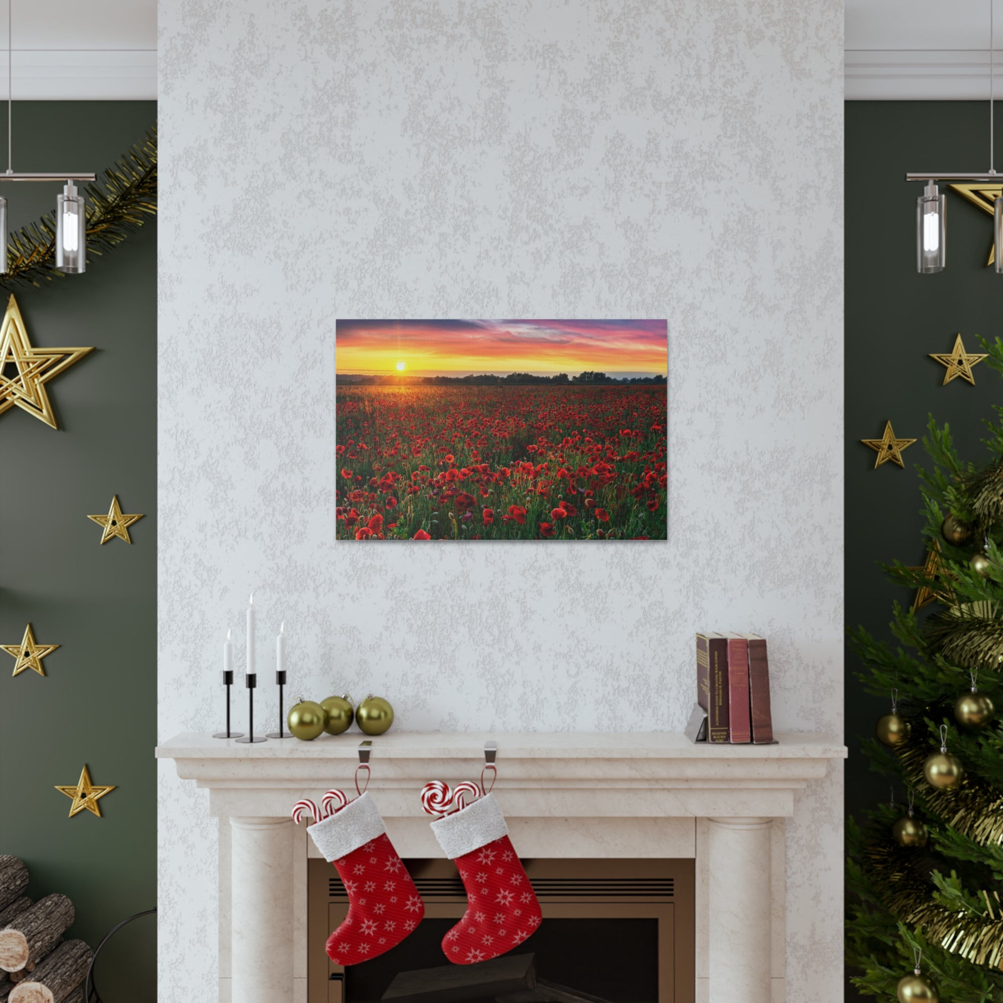 Beautiful Poppy Field During Sunrise Flower Canvas Wall Art for Home Decor Ready-to-Hang