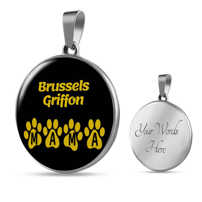 Brussels Griffon Mama Circle Necklace Stainless Steel or 18k Gold 18-22" Dog Owner Lover
