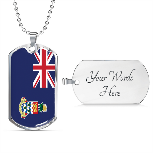 Cayman Island Flag Necklace Stainless Steel or 18k Gold Dog Tag 24" Chain