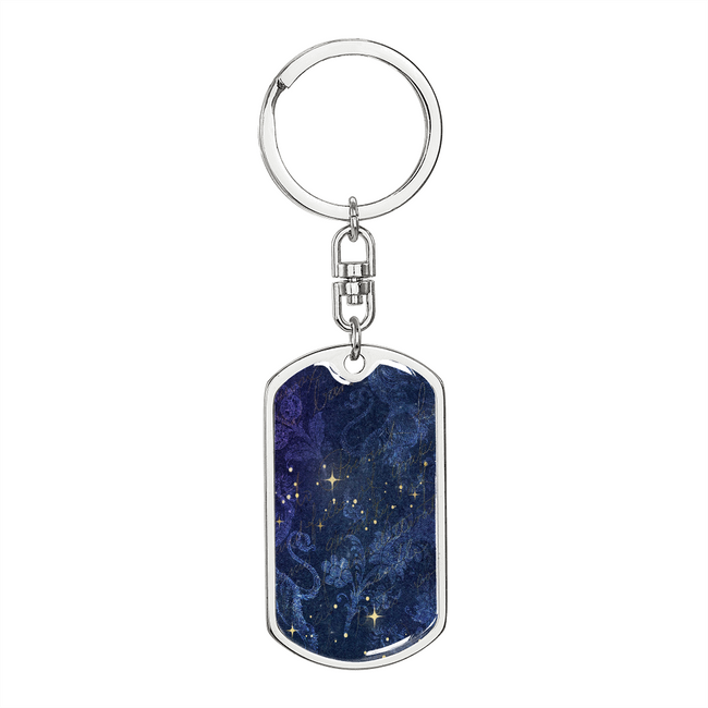 Celestial Blue Galaxy Stainless Steel or 18k Gold Premium Swivel Dog Tag Keychain