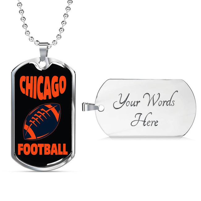 Chicago Fan Necklace Dog Tag Stainless Steel or 18k Gold 24" Chain