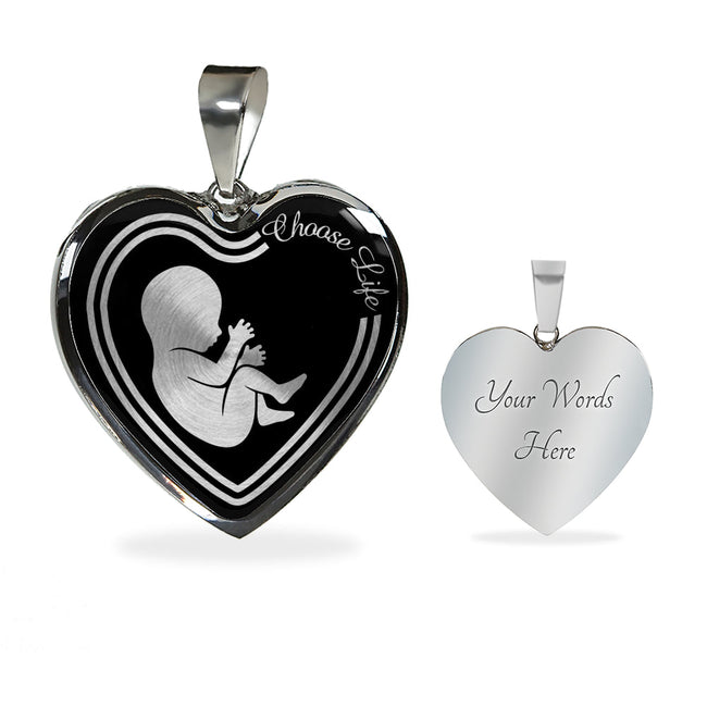 Choose Life Prolife Necklace Stainless Steel or 18k Gold Heart Pendant 18-22"
