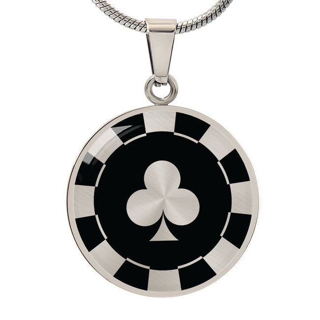 Clubs Poker Chip Gambler Circle Necklace Stainless Steel or 18k Gold 18-22" Chain
