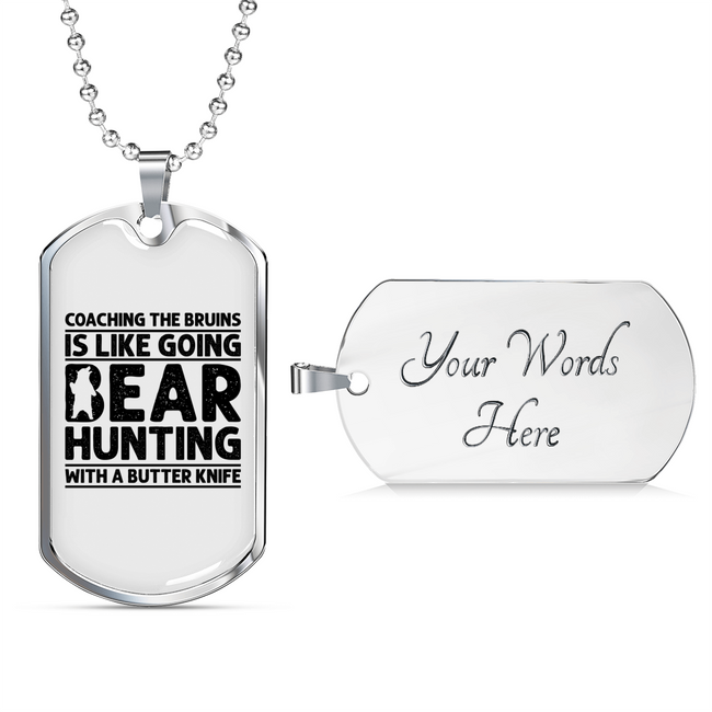 Coaching Bear Hunting Necklace Stainless Steel or 18k Gold Dog Tag 24" Chain