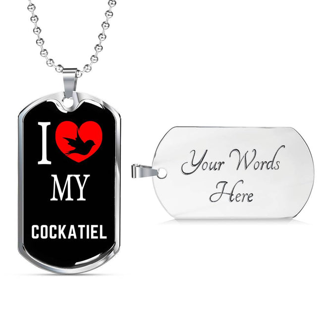 Cockatiel Necklace Stainless Steel or 18k Gold Dog Tag 24" Chain