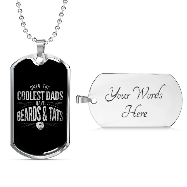 Cool Beard And Tats Dad Dog Tag Stainless Steel or 18k Gold 24" Chain