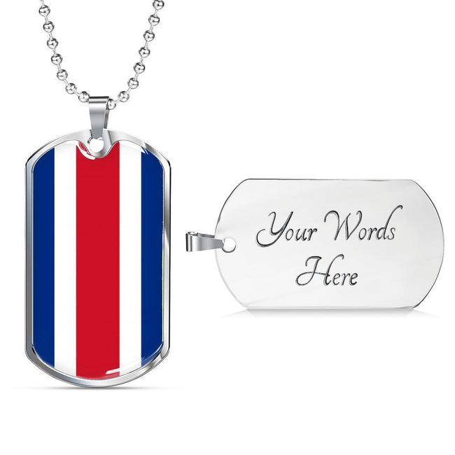 Costa Rica Flag Necklace Stainless Steel or 18k Gold Dog Tag 24"