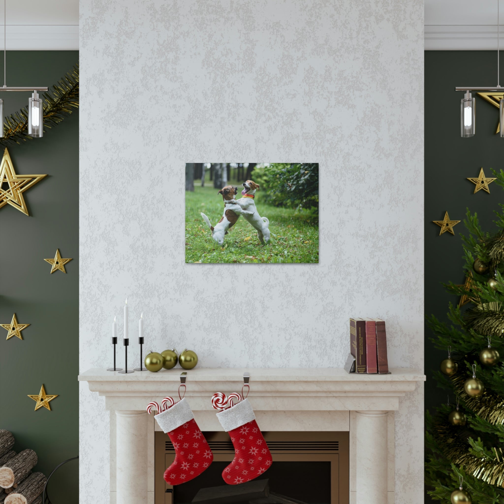 Couple of Dog Playing on a Park Print Animal Wall Art Wildlife Canvas Prints Wall Art Ready to Hang Unframed
