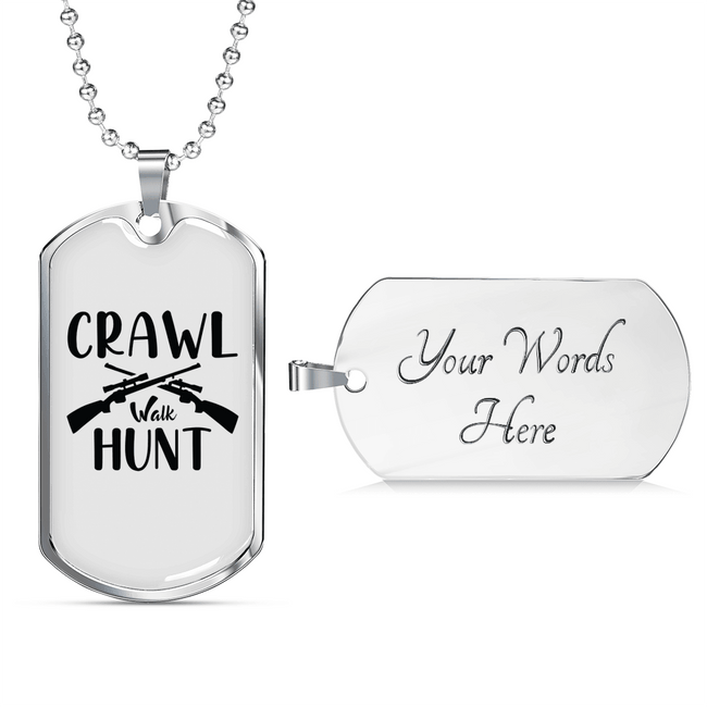Crawl Walk Hunt Necklace Stainless Steel or 18k Gold Dog Tag 24" Chain